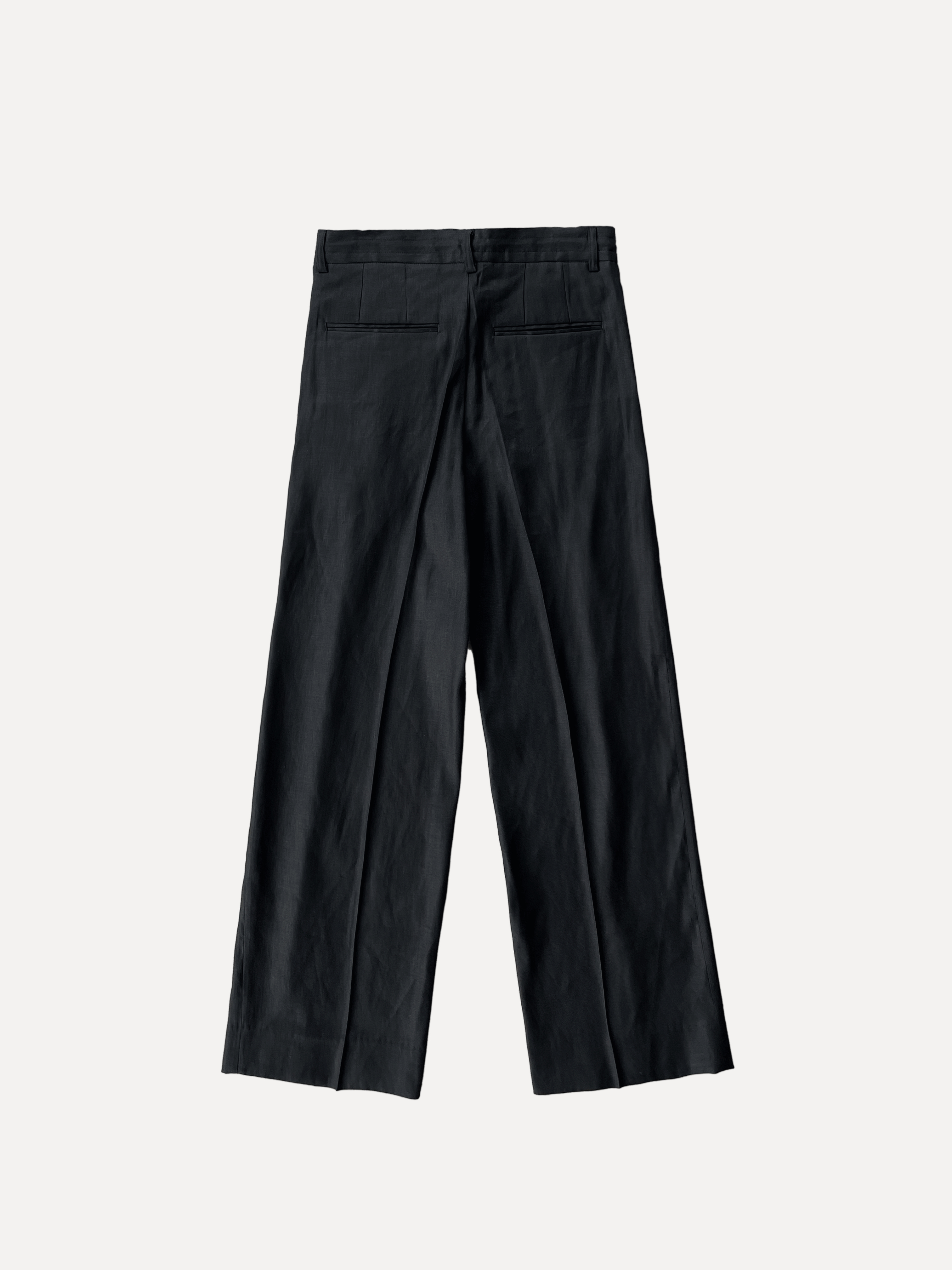 와이드 핏 슬랙스 허리 드로우 스트링 인버티드 플리츠 YKK 社의 지퍼 사용 고급스러운 광택감과 매트한 색감이 멋스러운 린넨 와이드 팬츠입니다. 전면 맞대어 있는 턱이 있어 자연스럽게 와이드한 실루엣을 연출해줍니다. 허리 사이즈 조절이 가능한 캐주얼한 디테일이 차분한 소재감과 어우러져 이지한 룩으로 착용됩니다. SS시즌 일상과 여행에 함께 하기 좋은 에센셜한 아이템입니다. |