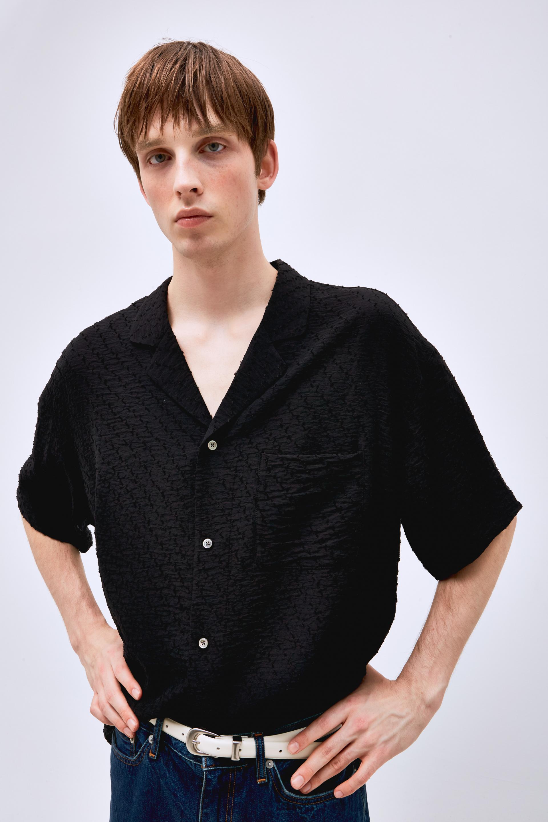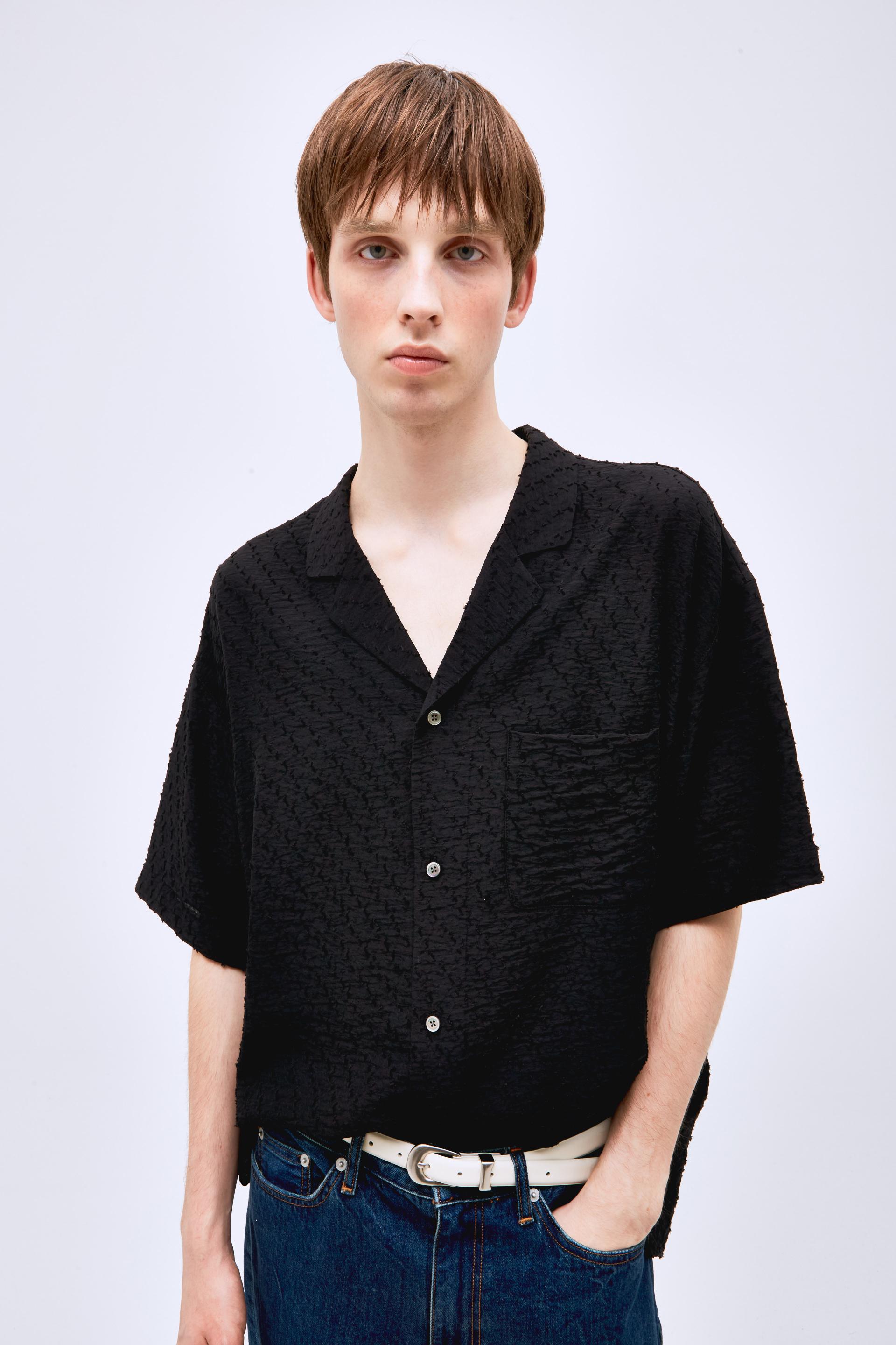 수공예적인 요소를 지닌 빈티지한 소재감이 멋스러운 루즈 핏 컨버터블 칼라 셔츠입니다.
