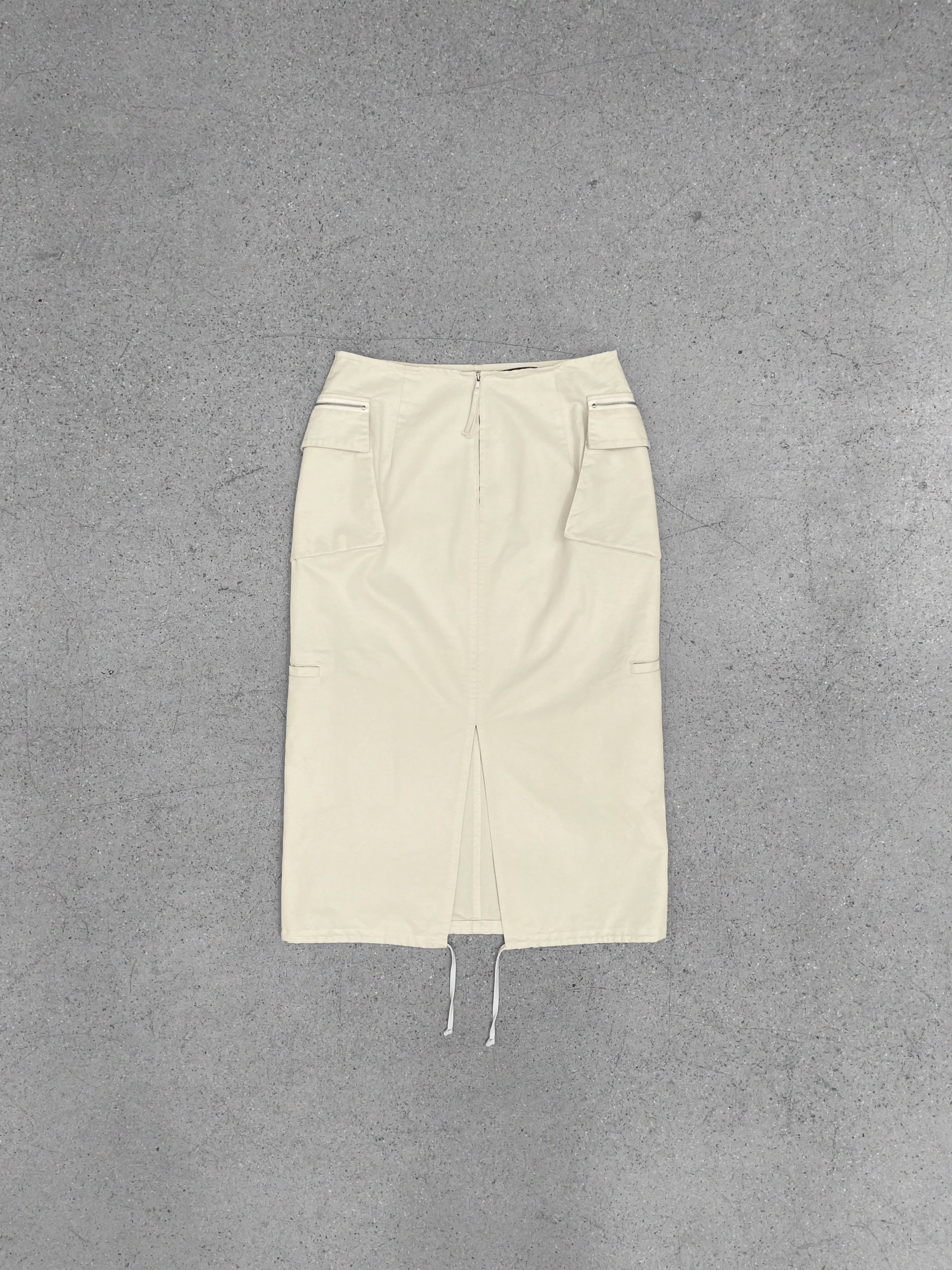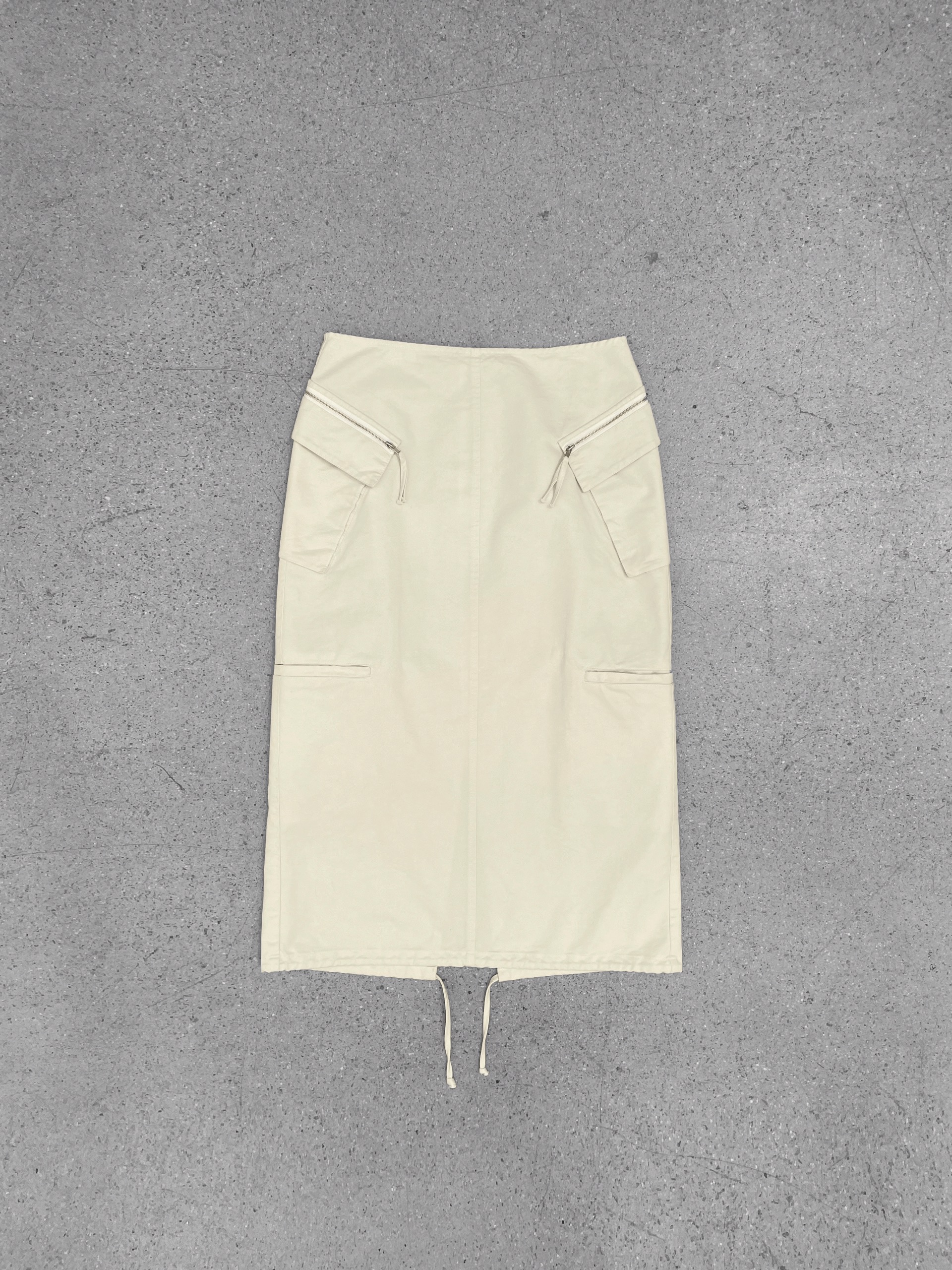 H라인 실루엣 맥시 기장 6 포켓(사선 아웃 포켓,플랩 포켓,웰트 포켓) 지퍼 플라이 밑단 스트링 디테일 뒷 트임 멀티 포켓 디테일과 맥시한 기장이 어우러져 유틸리티 무드를 느낄 수 있는 스커트 입니다. 전체적으로 여유있는 핏으로 착용되며, 뒷면 중앙 지퍼로 오픈-클로징 됩니다. 옆선에 대칭으로 자리잡은 사선 플랩 포켓은 뚜껑과 안쪽 입체 포켓이 모두 사용 가능하며, 중간에 위치한 웰트 포켓 또한 사용가능합니다. 활동성을 고려하여 뒷 중심에 길게 트여있는 사선 슬릿을 추가하였으며, 밑단에 스트링 디테일이 있어 원하는 실루엣으로 연출할 수 있습니다. 로우라이즈로 착용하여 맥시한 기장감을 살려 쿨한 무드로 스타일링하기 좋은 제품입니다. |