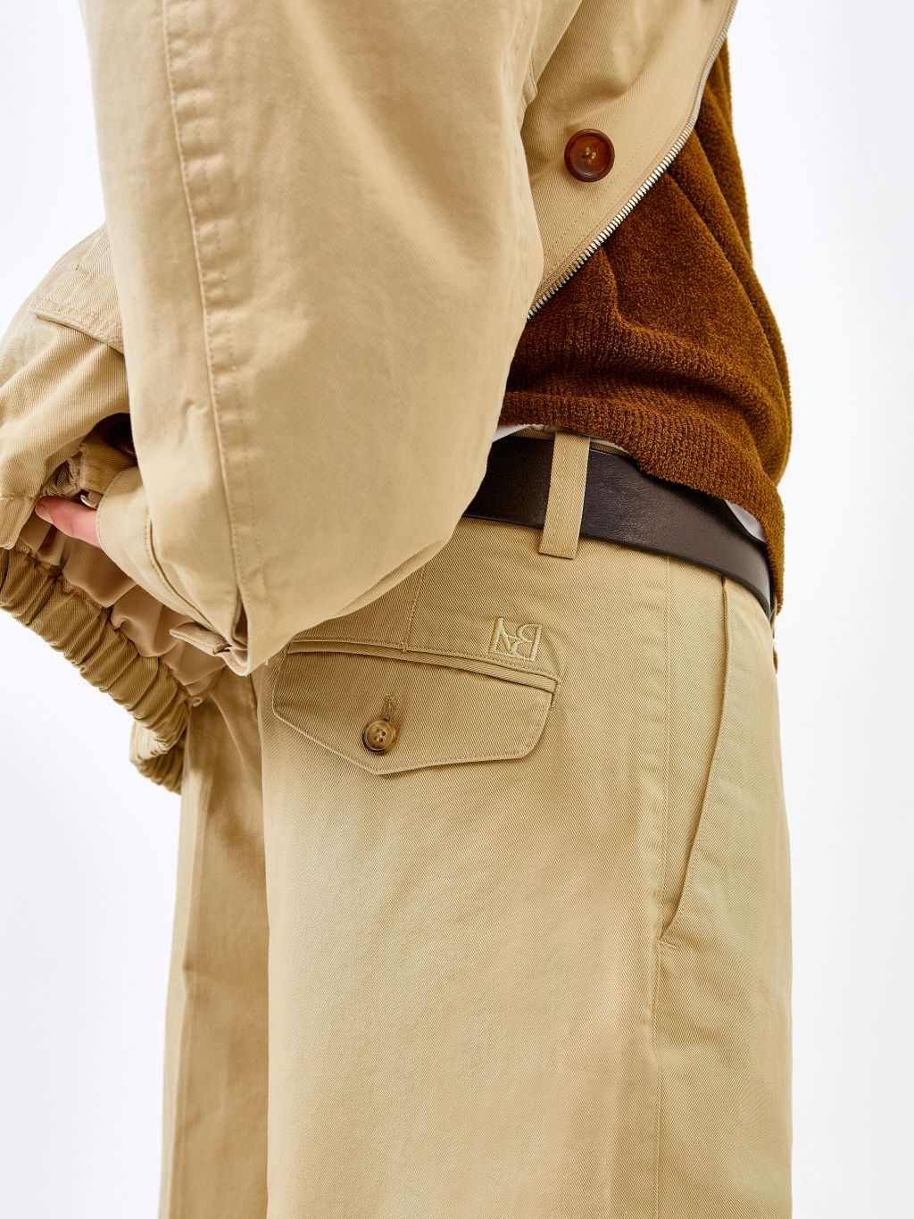 Cotton 100 굵직한 트윌감이 돋보이는 코튼 소재를 사용하였으며, 바이오 워싱 공정을 통해 유연한 텍스쳐로 변모하였습니다. 입을수록 길들여지는 워크팬츠의 러프한 흔적을 엿볼 수 있습니다. CARE · 드라이 크리닝을 권장합니다. |