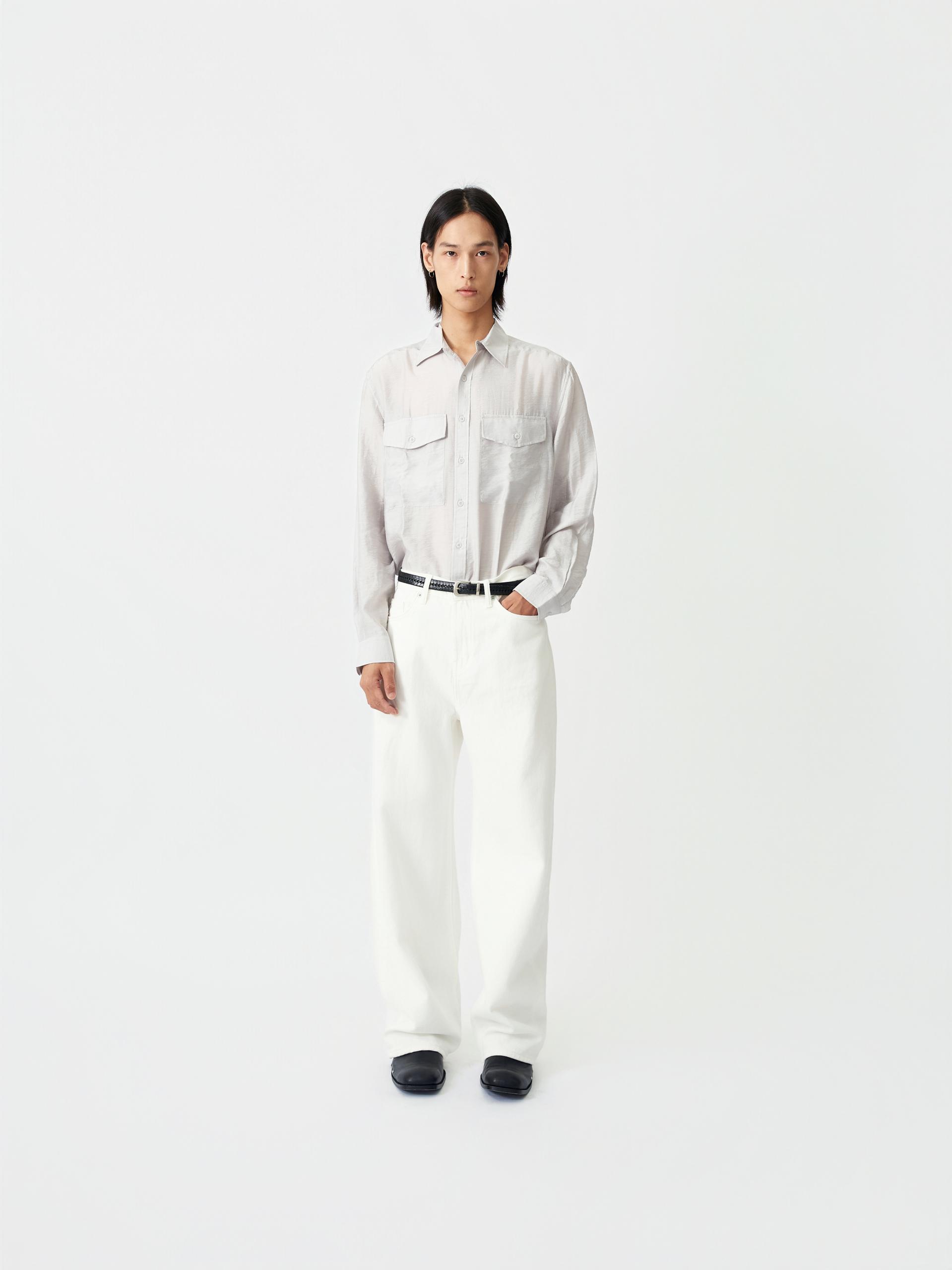LABEL 로고가 각인된 고정식 켄톤 LB 엠블럼 베지터블 소가죽 엠보 패치 시계주머니에 위치한 LB 엠블럼 음각된 리벳 중앙지퍼 안쪽 시접 바인딩 처리 30수 트윌 코튼 라이닝 YKK 社의 지퍼 사용 코아사 봉사 퓨어한 화이트 컬러감이 돋보이는 와이드 핏 진 입니다. 편안한 착용감과 균형감있는 실루엣을 우선으로 고려하여 패턴 개발된 와이드 핏 진입니다. 발등에 자연스럽게 주름지는 기장감으로 제작되어 착용시 롱한 프로포션으로 연출해줍니다. 와이드한 핏을 잘 구현해줄 수 있는 아메리칸 얀(링사)이 사용된 데님을 사용하였으며, 오래도록 착용하여도 변형이 적은 우수한 내구성을 자랑합니다. 실버톤의 하드웨어와 베지터블 소가죽 엠보 패치가 가미되어 완성도를 높였습니다. |
