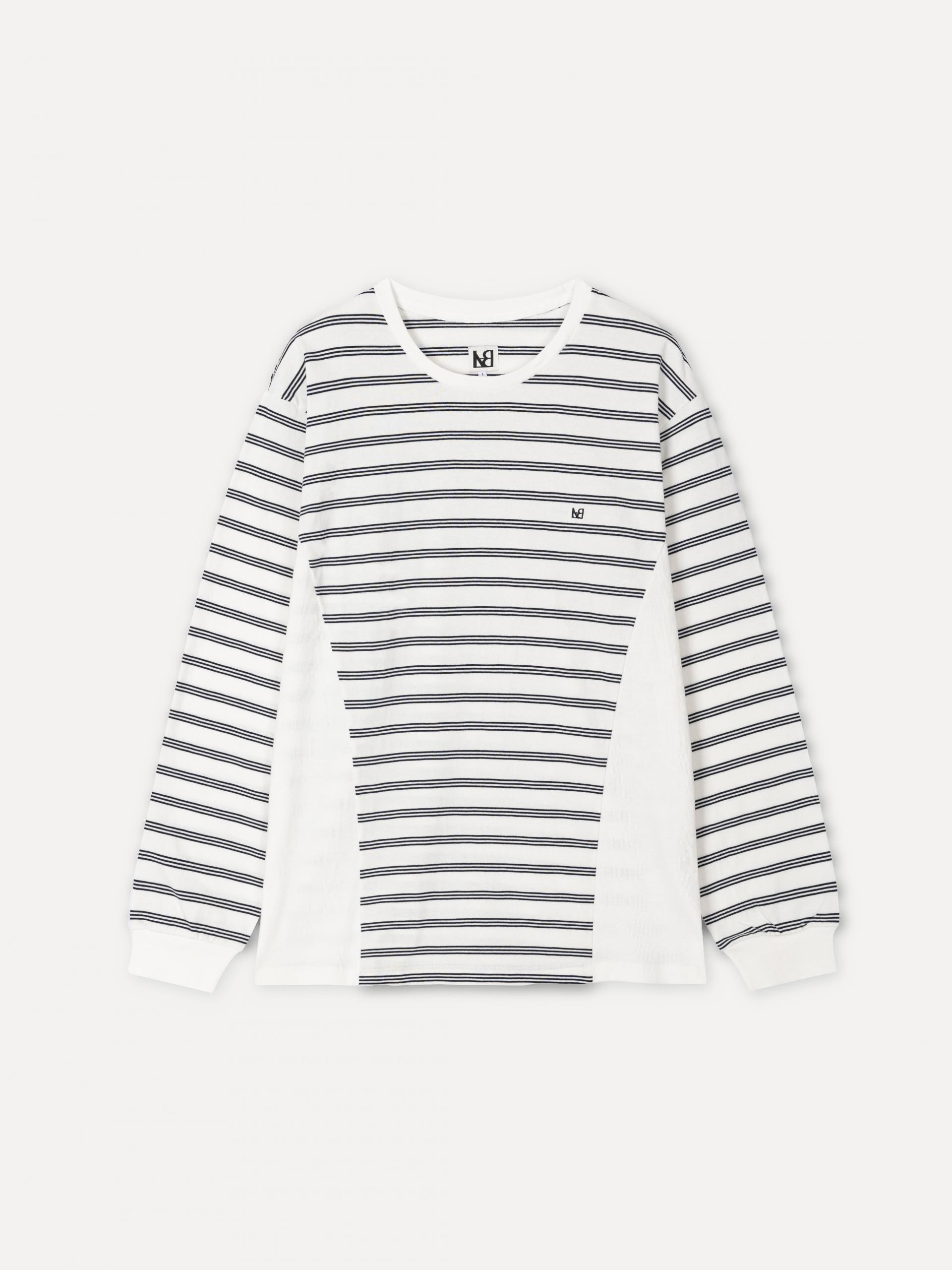 루즈핏 코튼 롱슬리브 탑 스트라이프&솔리드 리브 배색 뒷면 라운드 요크 디테일 네크라인과 이어지는 숄더라인 바인딩 처리 손등에 편안하게 떨어지는 리브 마감 전면 엠블럼 자수 드롭 숄더 스트라이프&솔리드 배색이 스포티한 무드를 자아내는 루즈핏 롱슬리브 탑입니다. 베이직한 디자인과 여유로운 핏으로 단독 착용 및 레이어드용 이너로도 활용하기 좋은 제품입니다. 착용 빈도에 따른 내구성을 높이기 위해 착용시 변형이 일어나는 네크와 숄더라인에 바인딩 처리 되었습니다. 소맷단은 리브로 마감하여 착용시 자연스럽게 손목에 내려앉은 볼륨감을 살렸습니다. 심플한 외관에 간결한 스트라이프 패턴 조합은 단독 착용으로도 포인트가 되어주는 아이템입니다. |