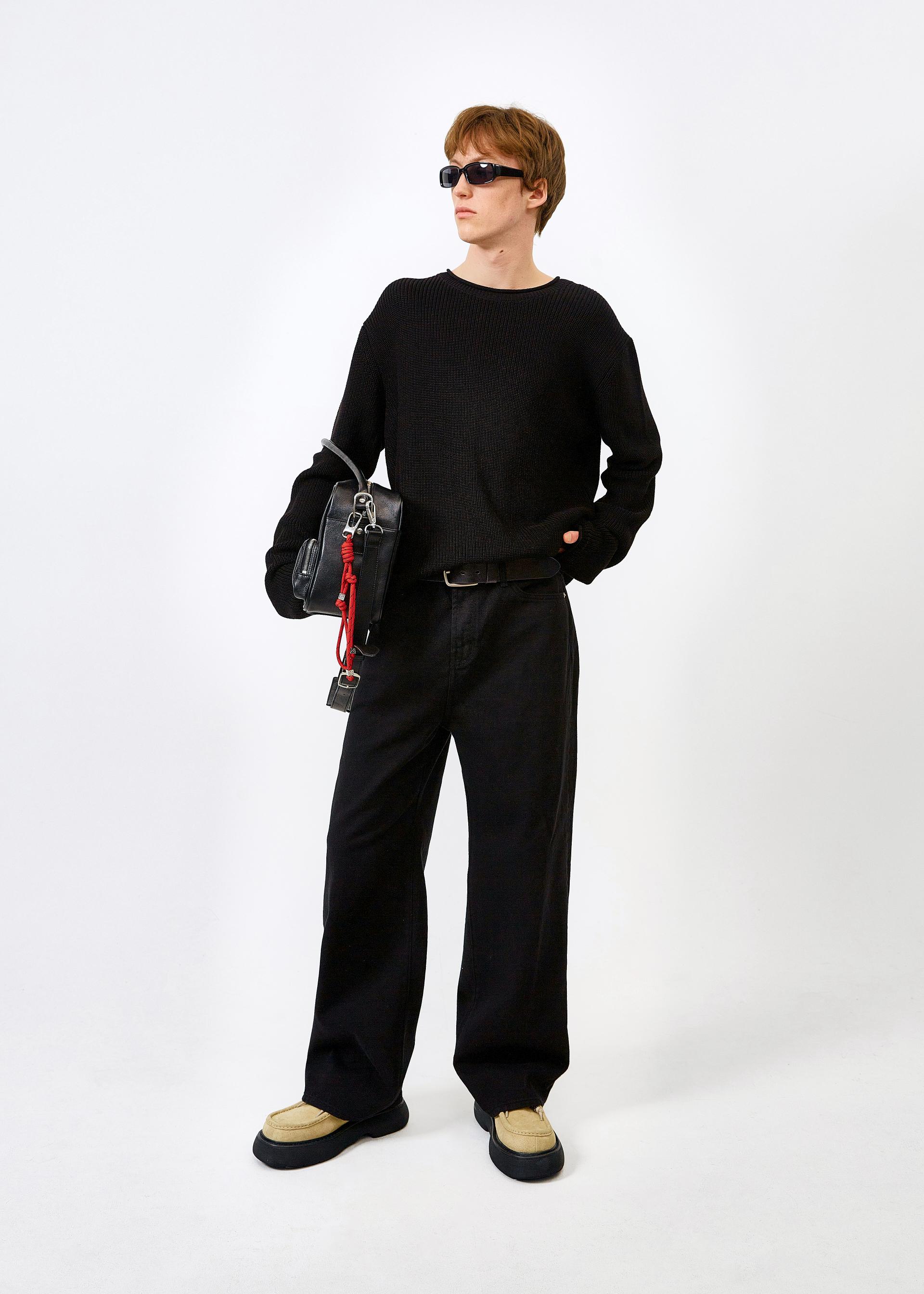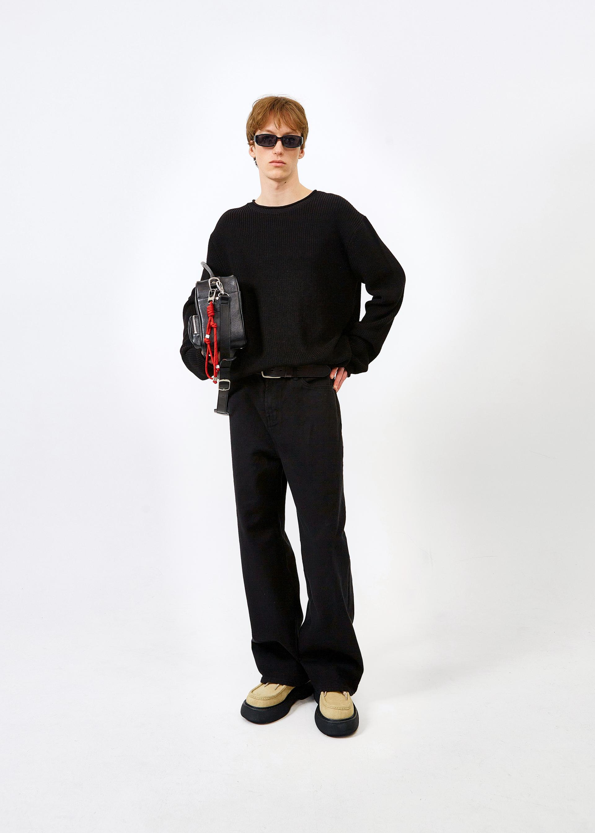 루즈핏 크루넥 스웨터 네크라인, 소맷단, 밑단 롤업 디테일 부드러운 감촉과 러프한 마감처리가 돋보이는 루즈핏 피마 코튼 스웨터입니다. 전체적으로 여유있는 사이즈로 제작되었으며, 네크라인과 소맷단,밑단에 자리한 롤업 디테일이 특징으로 은은한 포인트가 되어 줍니다. 원사의 합수를 높혀 볼드한 편직감이 적당한 무게감을 주며, SS 시즌과 어울리는 클린한 외관을 지녔습니다. 퓨어한 제트 블랙 컬러로 제작되어 단독 착용으로도 모던한 무드를 자아내는 아이템입니다. |