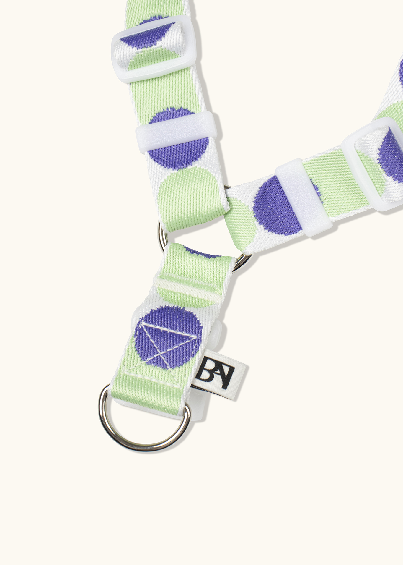 가벼운 무게와 손쉬운 착용으로 반려견의 열정적 산책과 반려인의 편이성을 고안한 Y형 하네스와 멀티 리드줄 세트 고강도 고밀도의 튼튼한 웨빙 사용 가슴둘레에 맞춰 쉽고 편한 길이 조절이 가능한 조리개 구성 반려견의 편안한 착용감과 반려인의 편이한 착용을 위한 곡선형 버클 하네스와 멀티 리드줄을 이어주는 360도 회전이 가능한 튼튼한 가위형 후크 리드줄 풉백과 키링 탈착이 자유로운 D형 고리 안심하고 사용할 수 있도록 접합부 모두 견고한 보강 스티치 처리 반려견과 어디든 함께할 수 있도록 쉽고 편한 길이 조절이 가능한 멀티 리드줄 · 차량 헤드레스트에 안전벨트로 착용 가능 · 핸즈프리를 위한 허리/크로스 착용 사이즈 · 반려견의 활동성을 높이기 위한 핸들 고정 사이즈 · 기둥에 간편한 도그파킹 가능 반려견의 모색에 경쾌함을 더할 도트 배색이 돋보이는 4가지 컬러 레인지 |