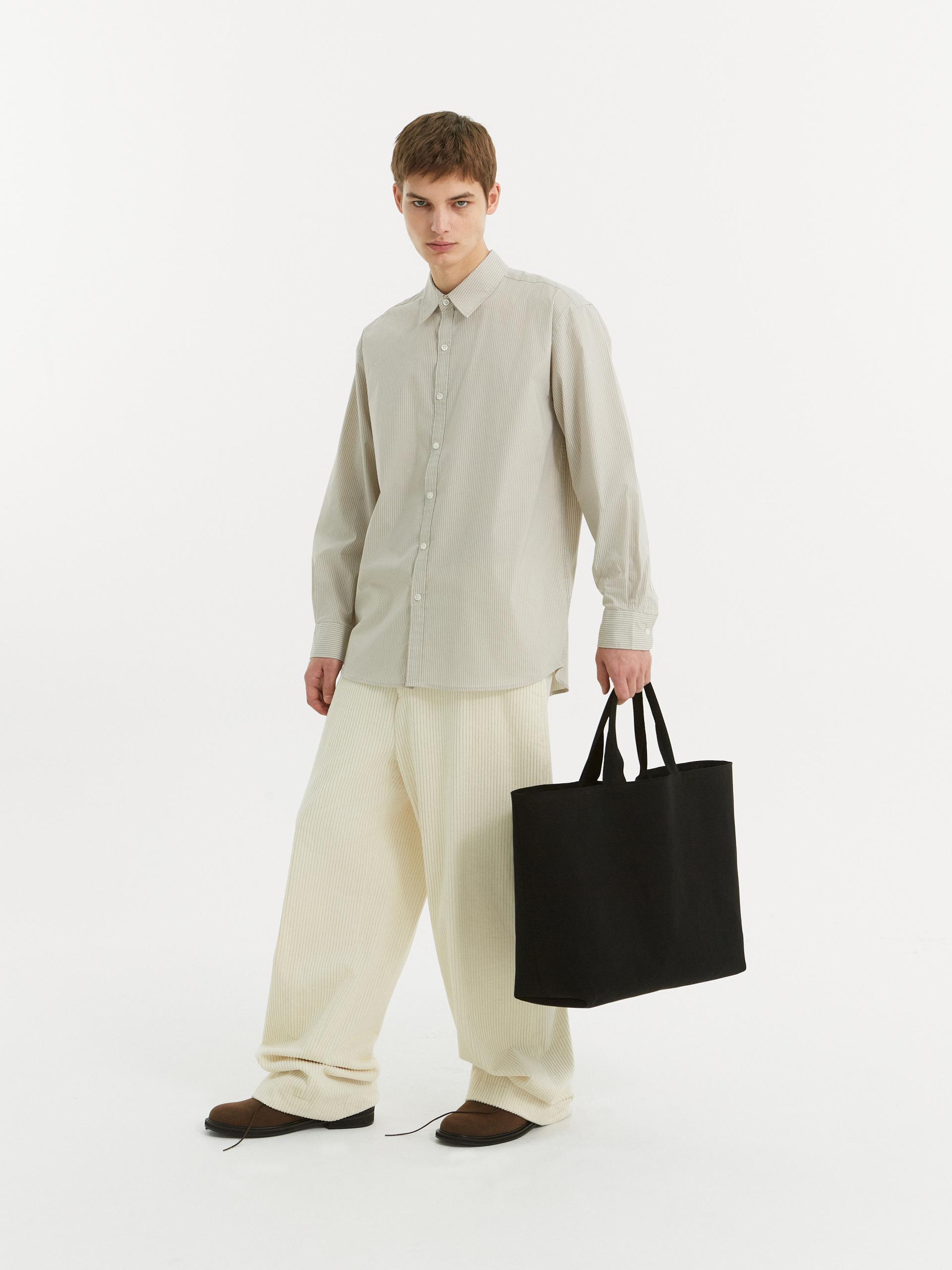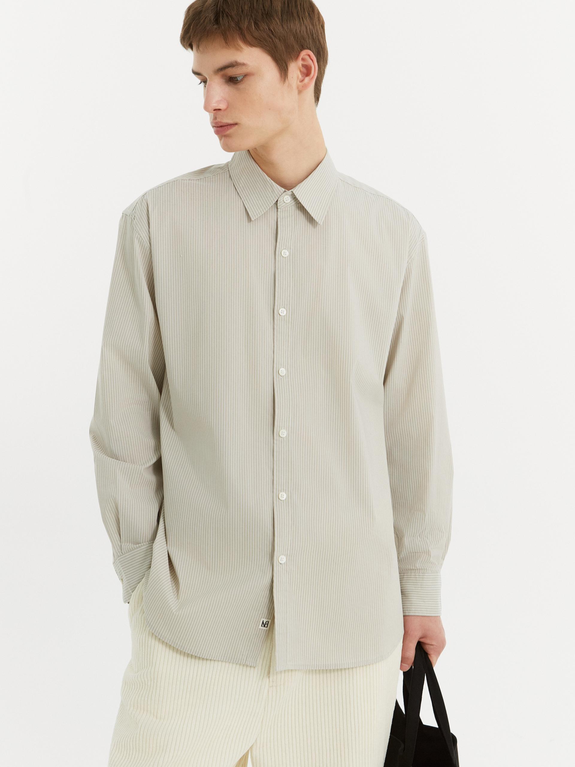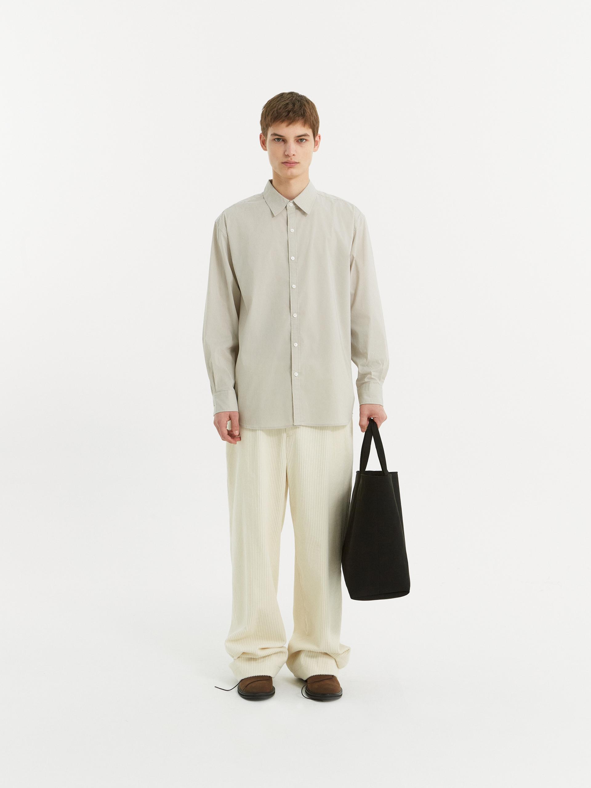 레귤러 핏 셔츠 LABEL 로고 음각 천연 자개단추 사용 단작 하단 사각 라벨 디테일 곁에 두고 오래, 자주 입을 수 있도록 셔츠가 지닌 에센셜한 디테일을 간결하게 담았습니다. 베이직한 디자인으로 시즌 리스로 착용하기 좋은 제품입니다. 정사이즈 핏으로 착용되는 제품이나 평소 착용하던 사이즈보다 업해서 오버사이즈 핏으로 연출하시거나, 다운사이즈하여 슬림핏으로 착용하여 레이어드용 셔츠로도 활용하기 좋은 에센셜한 아이템입니다. 전면 단작 아래 위치한 직조 자수라벨이 포인트 되며, LABEL 로고가 음각된 천연 자개단추로 클로징 됩니다. |