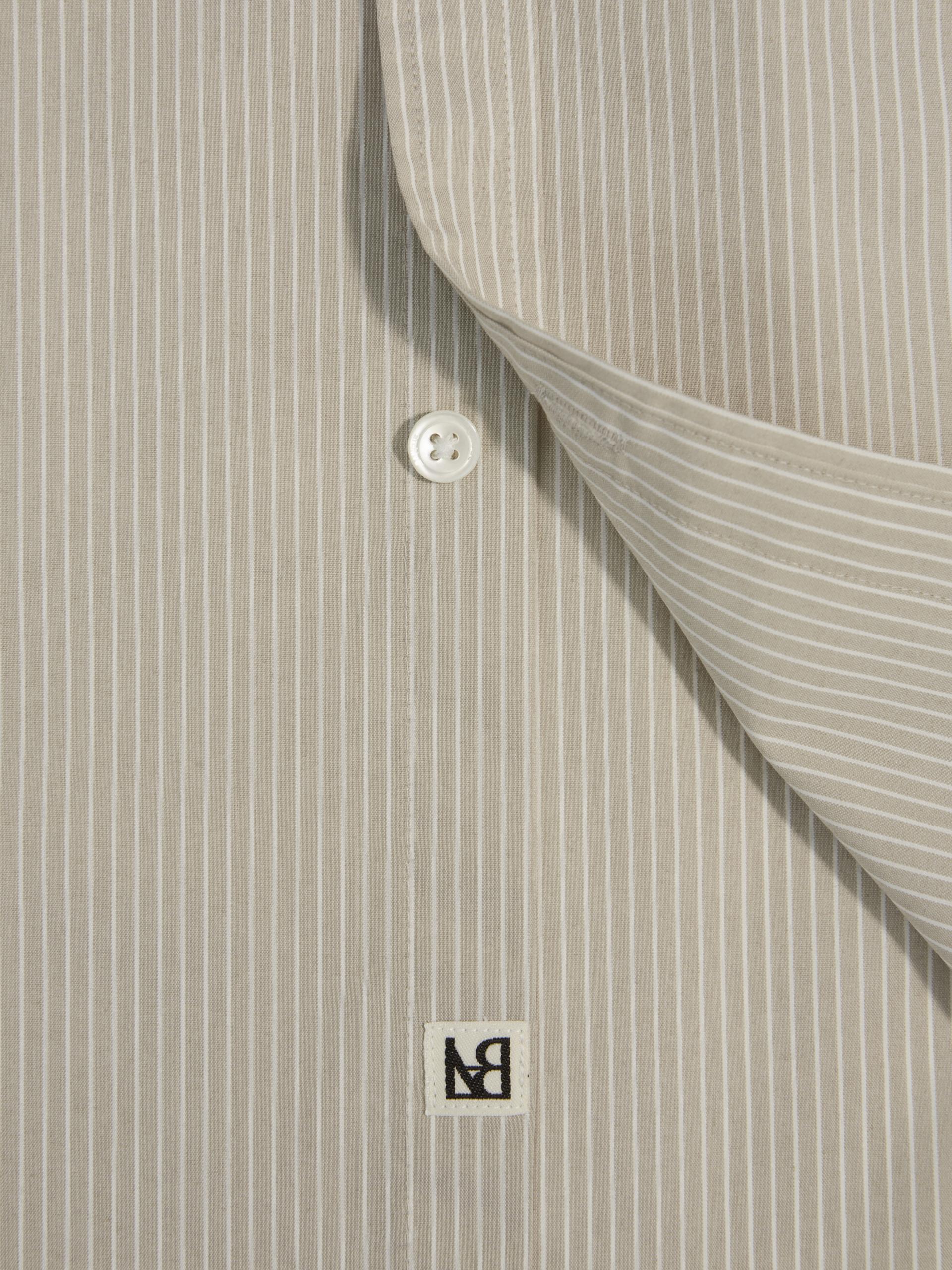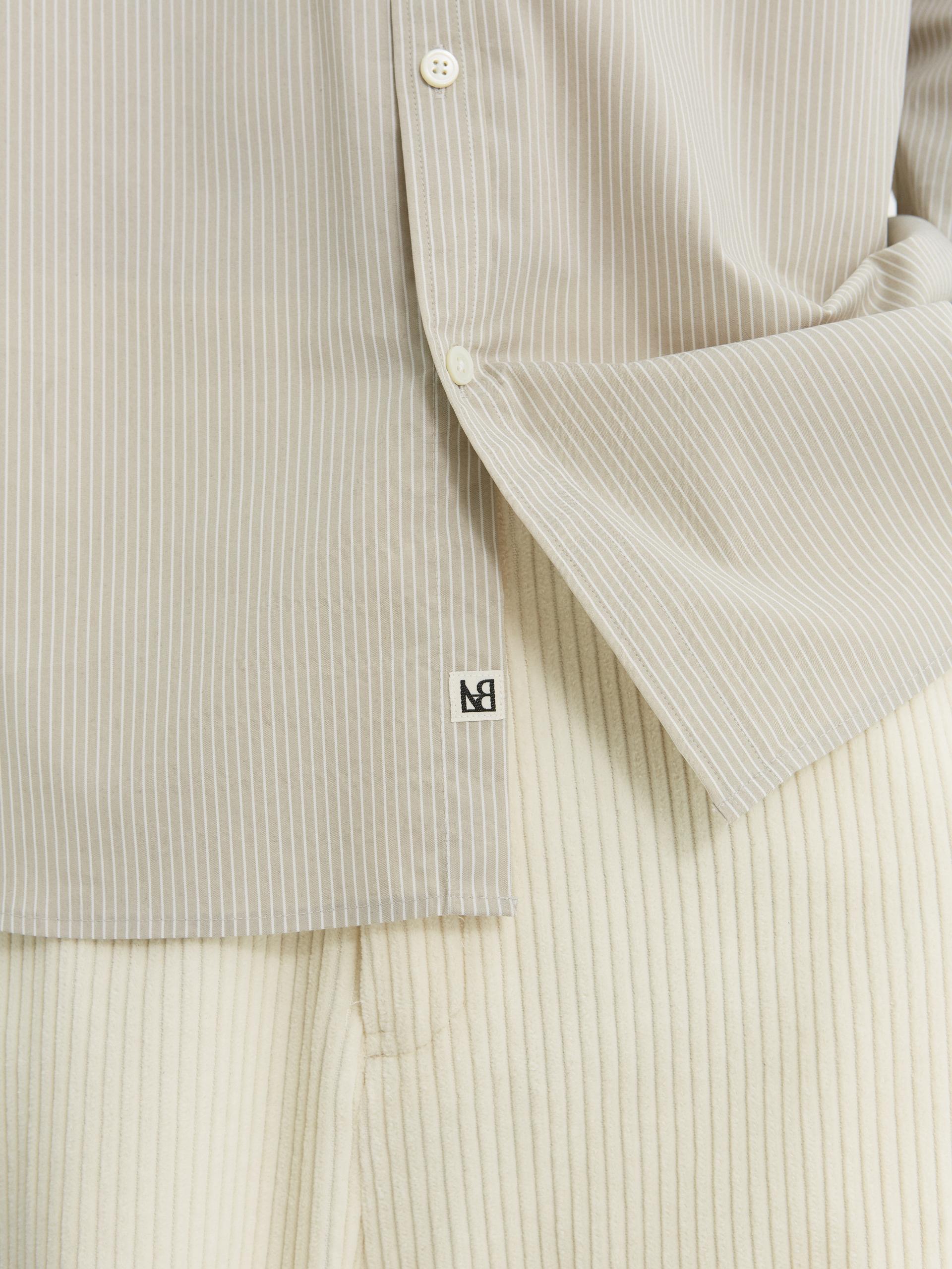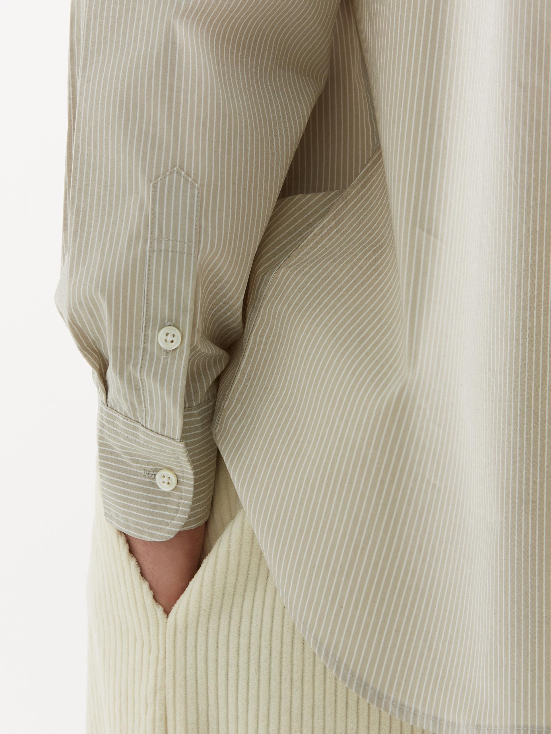 레귤러 핏 셔츠 LABEL 로고 음각 천연 자개단추 사용 단작 하단 사각 라벨 디테일 곁에 두고 오래, 자주 입을 수 있도록 셔츠가 지닌 에센셜한 디테일을 간결하게 담았습니다. 베이직한 디자인으로 시즌 리스로 착용하기 좋은 제품입니다. 정사이즈 핏으로 착용되는 제품이나 평소 착용하던 사이즈보다 업해서 오버사이즈 핏으로 연출하시거나, 다운사이즈하여 슬림핏으로 착용하여 레이어드용 셔츠로도 활용하기 좋은 에센셜한 아이템입니다. 전면 단작 아래 위치한 직조 자수라벨이 포인트 되며, LABEL 로고가 음각된 천연 자개단추로 클로징 됩니다. |