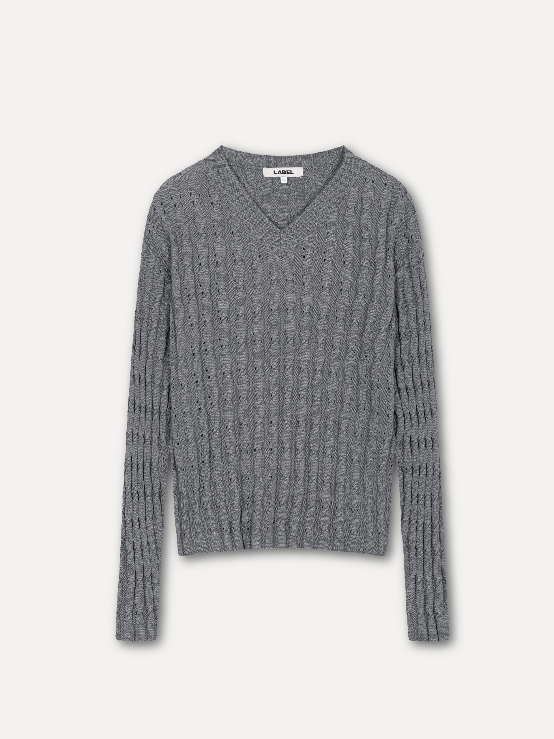 루즈핏 케이블 니트 시즈널한 케이블 조직감 립 조직 네크 라인 시즈널한 케이블 조직감이 특징인 브이넥 니트 입니다. 루즈핏으로 착용되며, 빈티지한 감각을 엿볼 수 있는 케이블 조직감으로 단독 착용으로도 포인트가 되어줄 아이템 입니다. 두 가지 다른 매력의 그레이 컬러로 구성되었으며, 바디에 닿는 쾌적한 터치가 기분 좋은 착용감을 선사합니다. |