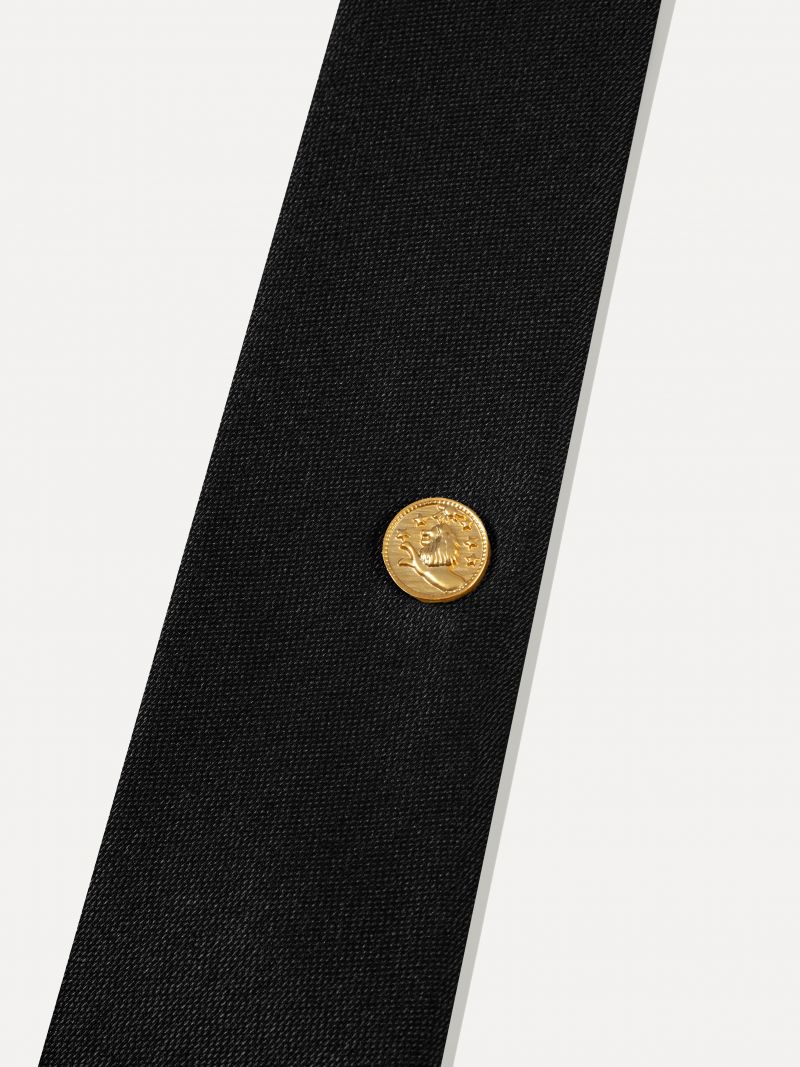 슬림한 라인의 타이 14K 골드 플레이트 하드웨어 안쪽 고정이 가능한 루프 형태감을 유지해주는 탄탄한 두께감의 심지 사용 섬세한 조직감과 매트한 광택감으로 고급스러운 외관을 지닌 슬림 타이 입니다. 자체 개발한 14K 골드 도금된 원형 브로치 장식이 고정되어 있어 은은한 포인트가 되어줍니다. 캐주얼 웨어와 포멀 웨어에 모두 어울리는 제품으로 다양한 스타일에 활용해 보시기 바랍니다. |