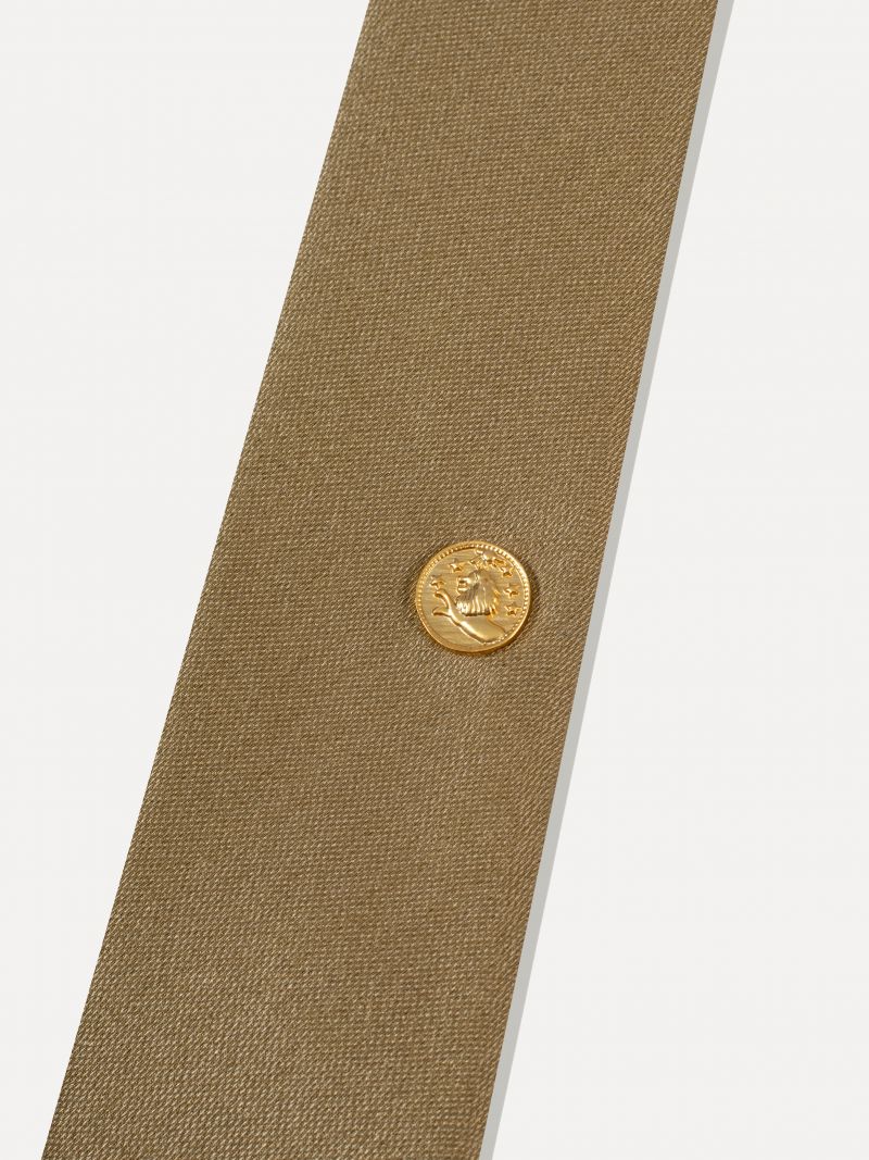 슬림한 라인의 타이 14K 골드 플레이트 하드웨어 안쪽 고정이 가능한 루프 형태감을 유지해주는 탄탄한 두께감의 심지 사용 섬세한 조직감과 매트한 광택감으로 고급스러운 외관을 지닌 슬림 타이 입니다. 자체 개발한 14K 골드 도금된 원형 브로치 장식이 고정되어 있어 은은한 포인트가 되어줍니다. 캐주얼 웨어와 포멀 웨어에 모두 어울리는 제품으로 다양한 스타일에 활용해 보시기 바랍니다. |