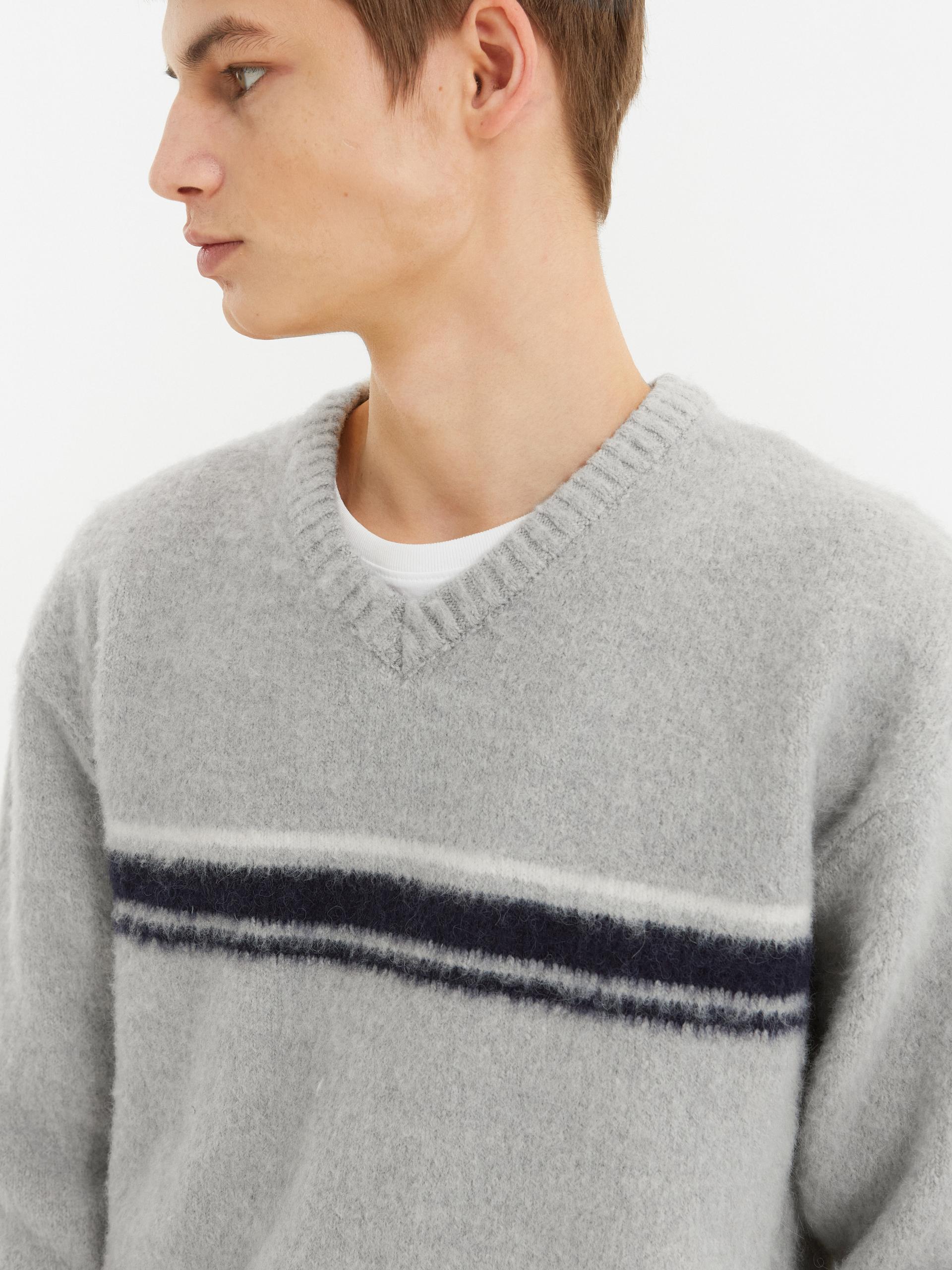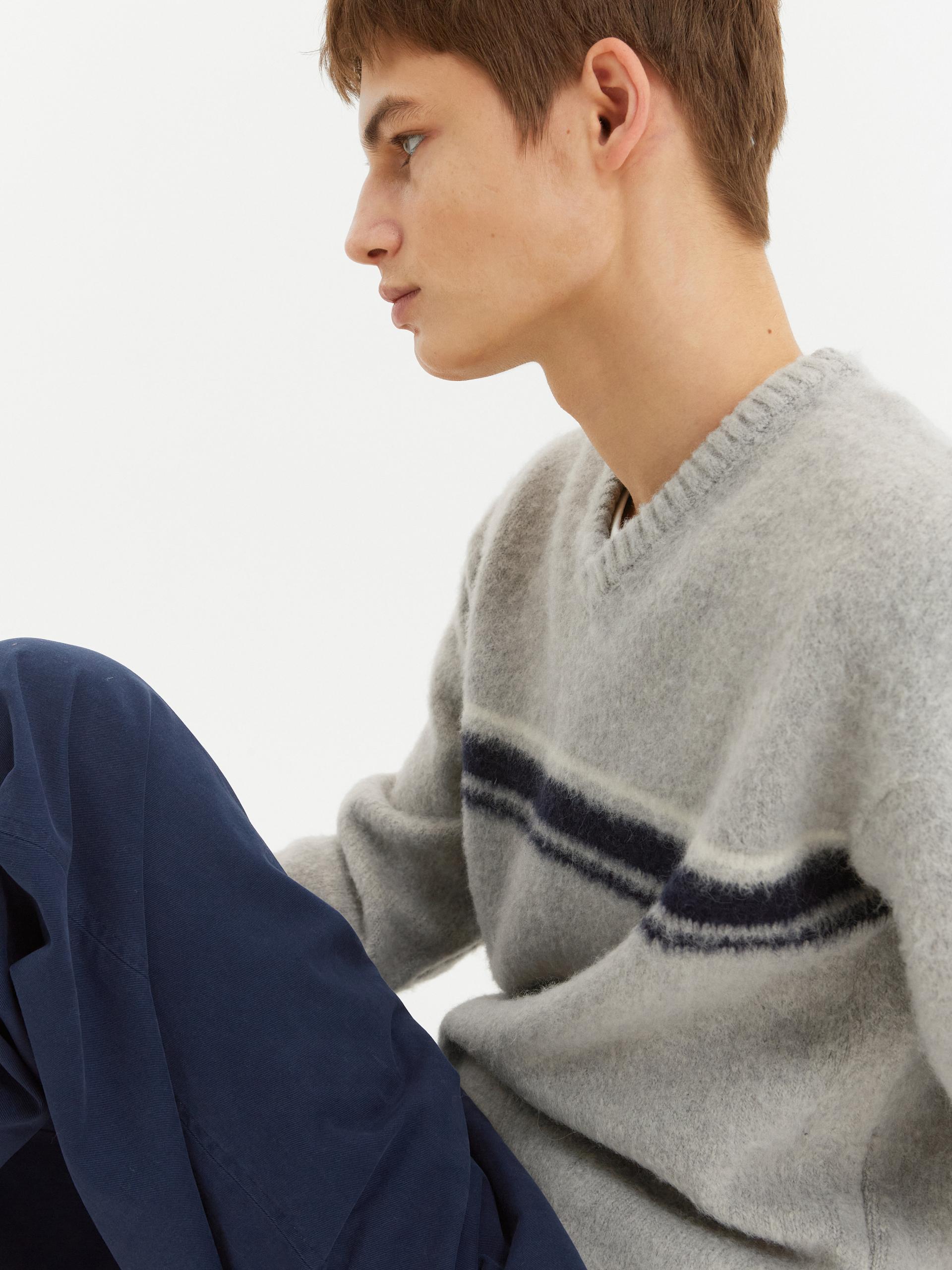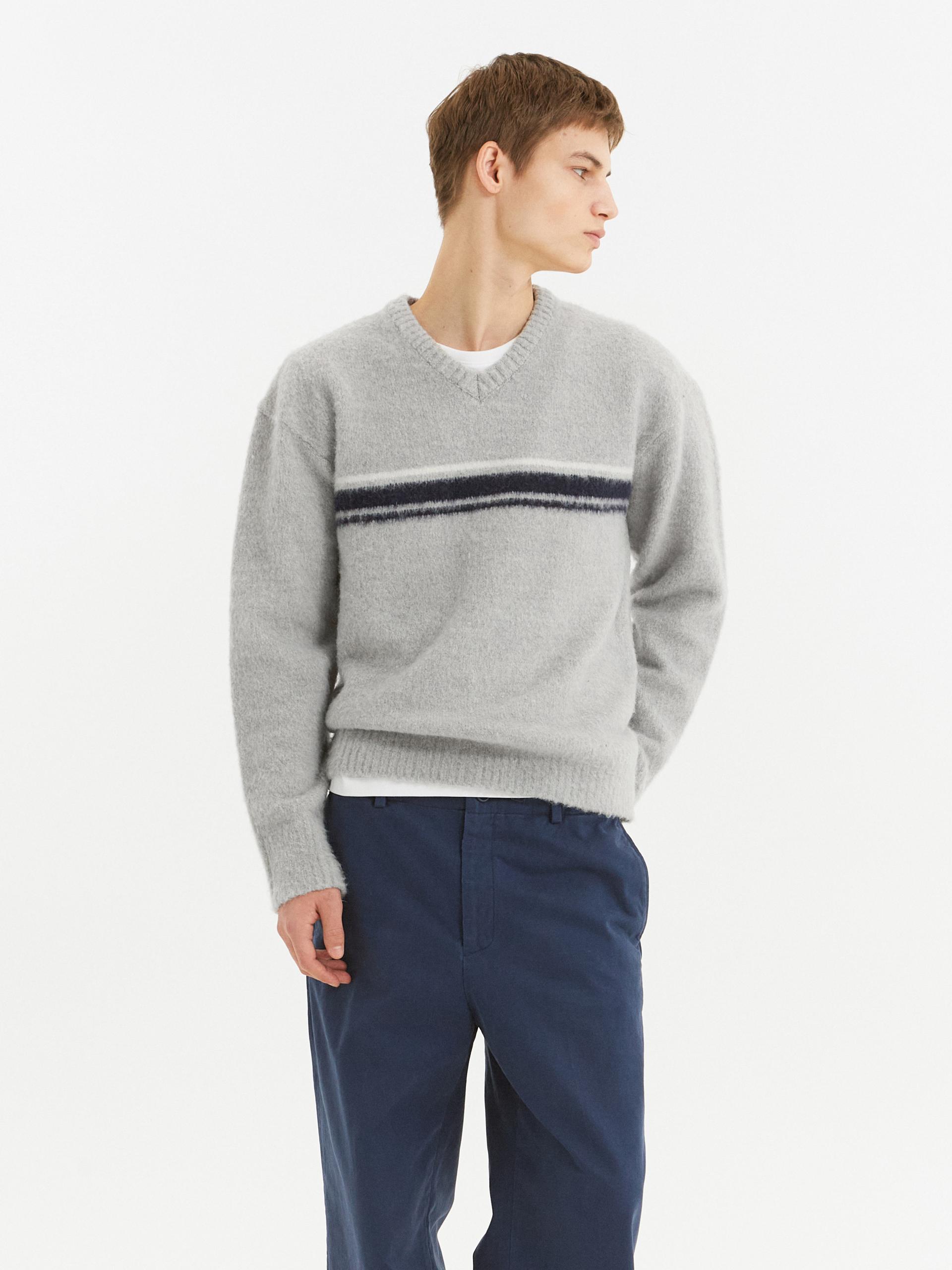 루즈핏 브이넥 스웨터 브러쉬드 가공 배색 스트라이프 디테일 간결한 배색 스트라이프 패턴이 돋보이는 코지한 감각의 브이넥 스웨터 입니다. 소재 표면 브러쉬드 텍스쳐 가공을 거쳐 헤어리한 질감이 특징이며, 불규칙한 원사 굵기로인해 나타나는 러프한 짜임이 시각적인 매력을 더합니다. 풍부한 계절감을 느낄 수 있는 시즈널한 컬러로 구성되었습니다. |