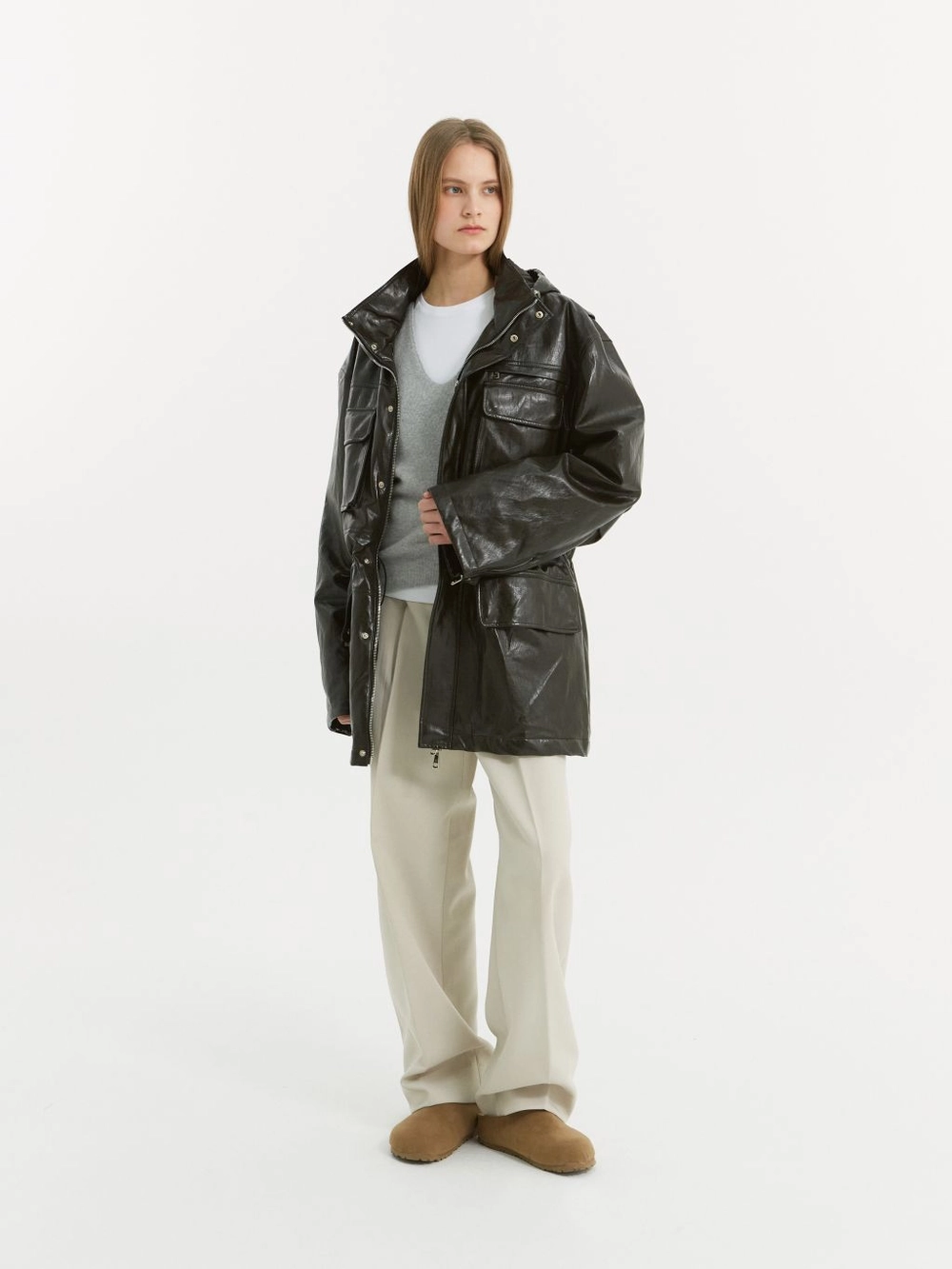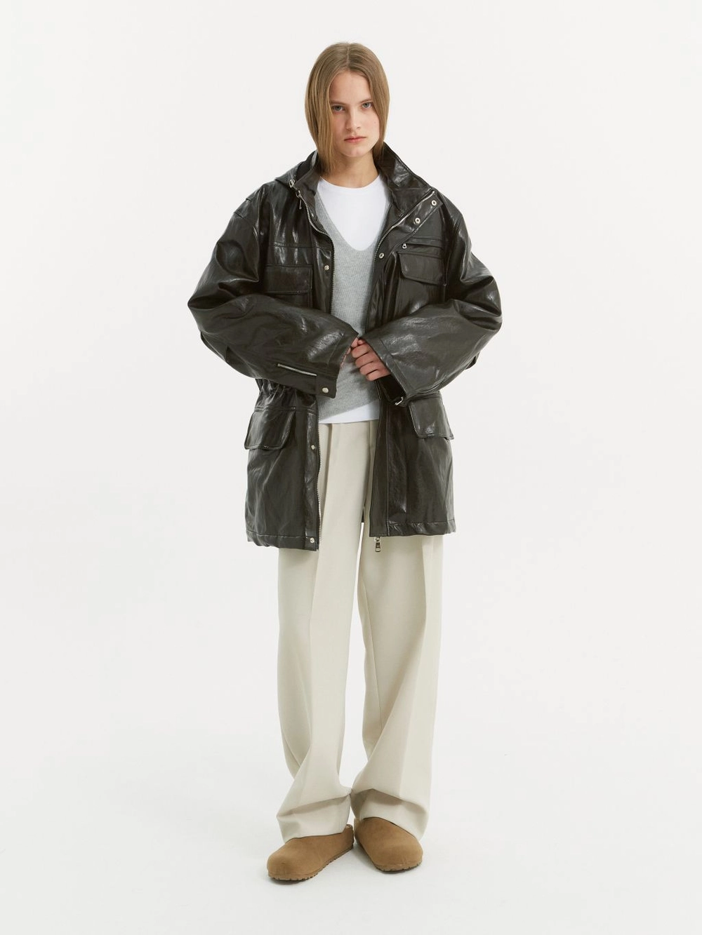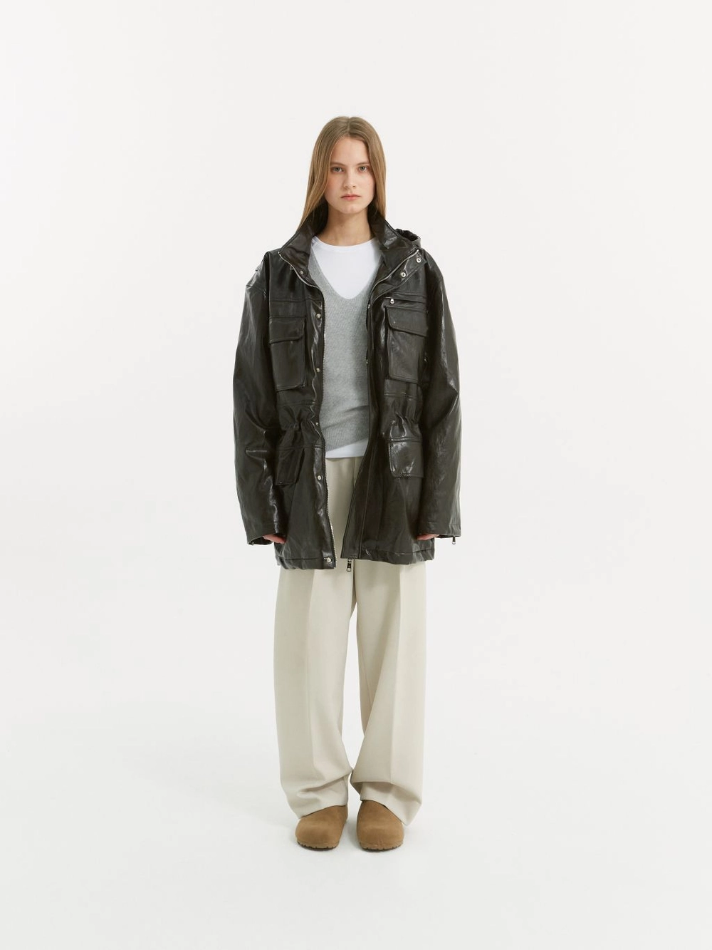Polyester 100 트윌 텍스쳐가 돋보이는 고중량의 단단하며 힘이 있는 소재를 사용하였습니다. CARE· 드라이클리닝을 권장합니다. |