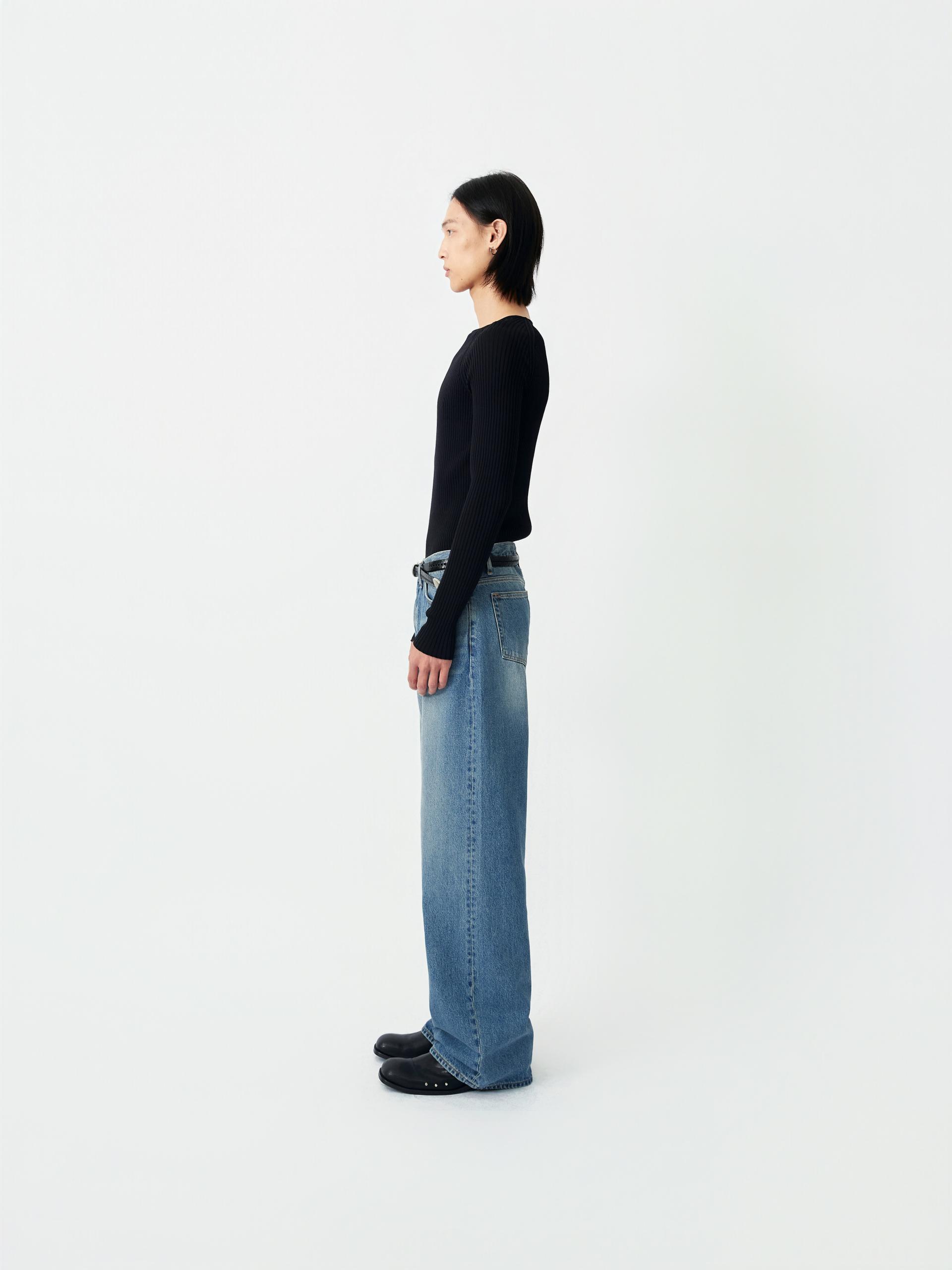 LABEL 로고가 각인된 고정식 켄톤 LB 엠블럼 베지터블 소가죽 엠보 패치 시계주머니에 위치한 LB 엠블럼 음각된 리벳 중앙지퍼 안쪽 시접 바인딩 처리 30수 트윌 코튼 라이닝 YKK 社의 지퍼 사용 코아사 봉사 클래식한 마일드톤의 블루 컬러가 매력적인 와이드 핏 진 입니다. 편안한 착용감과 균형감있는 실루엣을 우선으로 고려하여 패턴 개발된 와이드 핏 진입니다. 발등에 자연스럽게 주름지는 기장감으로 제작되어 착용시 롱한 프로포션으로 연출해줍니다. 와이드한 핏을 잘 구현해줄 수 있는 아메리칸 얀(링사)이 사용된 데님을 사용하였으며, 오래도록 착용하여도 변형이 적은 우수한 내구성을 자랑합니다. 실버톤의 하드웨어와 베지터블 소가죽 엠보 패치가 가미되어 완성도를 높였습니다. |