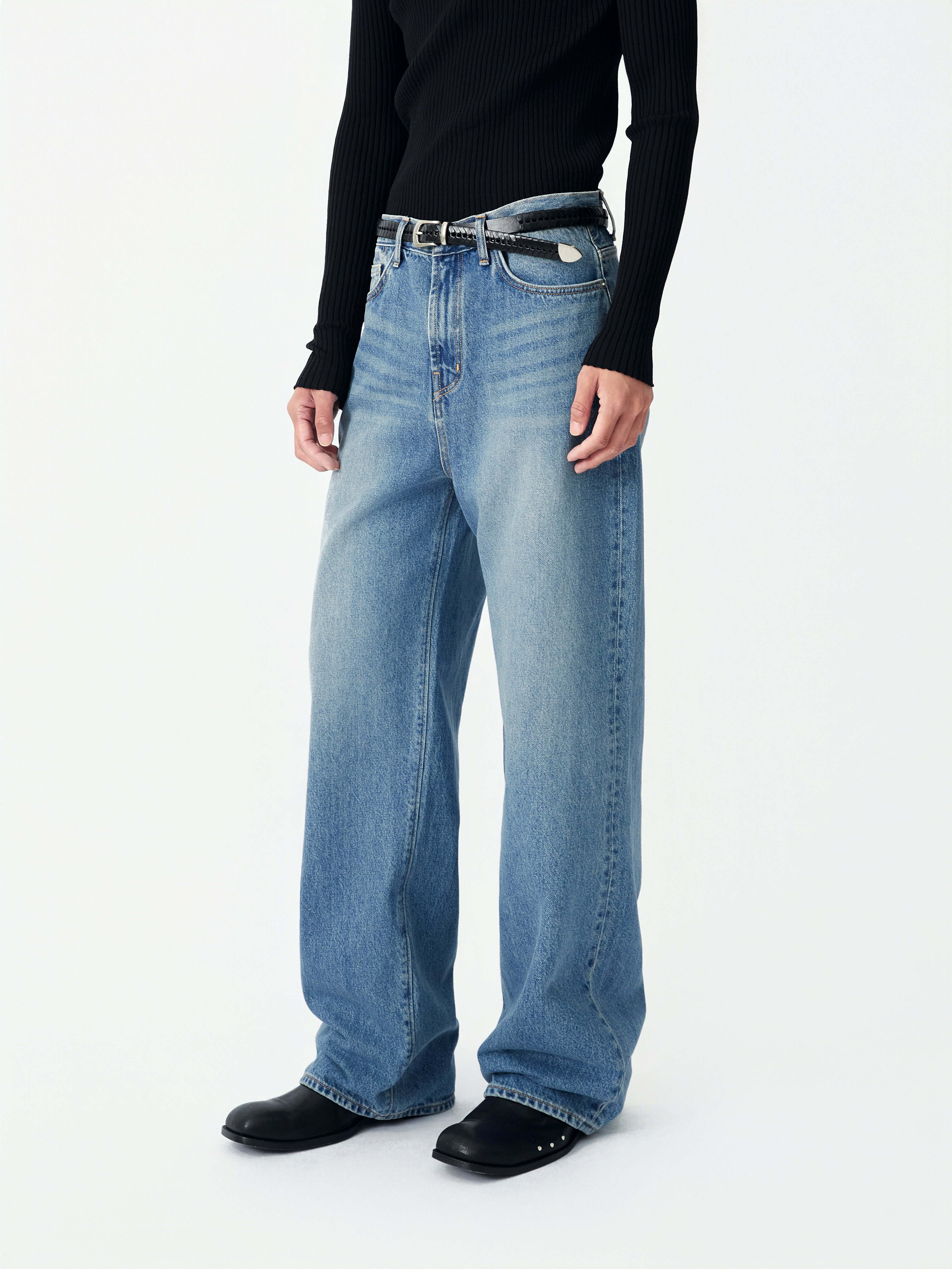 LABEL 로고가 각인된 고정식 켄톤 LB 엠블럼 베지터블 소가죽 엠보 패치 시계주머니에 위치한 LB 엠블럼 음각된 리벳 중앙지퍼 안쪽 시접 바인딩 처리 30수 트윌 코튼 라이닝 YKK 社의 지퍼 사용 코아사 봉사 라이트 블루톤의 빈티지한 색감이 깃든 매력적인 와이드 핏 진 입니다. 편안한 착용감과 균형감있는 실루엣을 우선으로 고려하여 패턴 개발된 와이드 핏 진입니다. 발등에 자연스럽게 주름지는 기장감으로 제작되어 착용시 롱한 프로포션으로 연출해줍니다. 와이드한 핏을 잘 구현해줄 수 있는 아메리칸 얀(링사)이 사용된 데님을 사용하였으며, 오래도록 착용하여도 변형이 적은 우수한 내구성을 자랑합니다. 실버톤의 하드웨어와 베지터블 소가죽 엠보 패치가 가미되어 완성도를 높였습니다. |