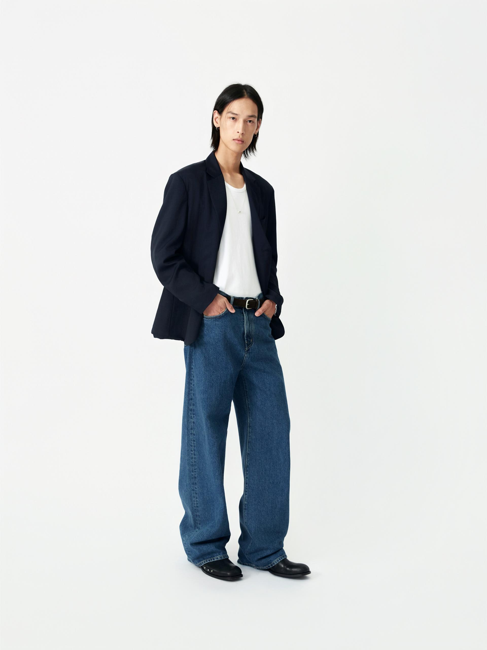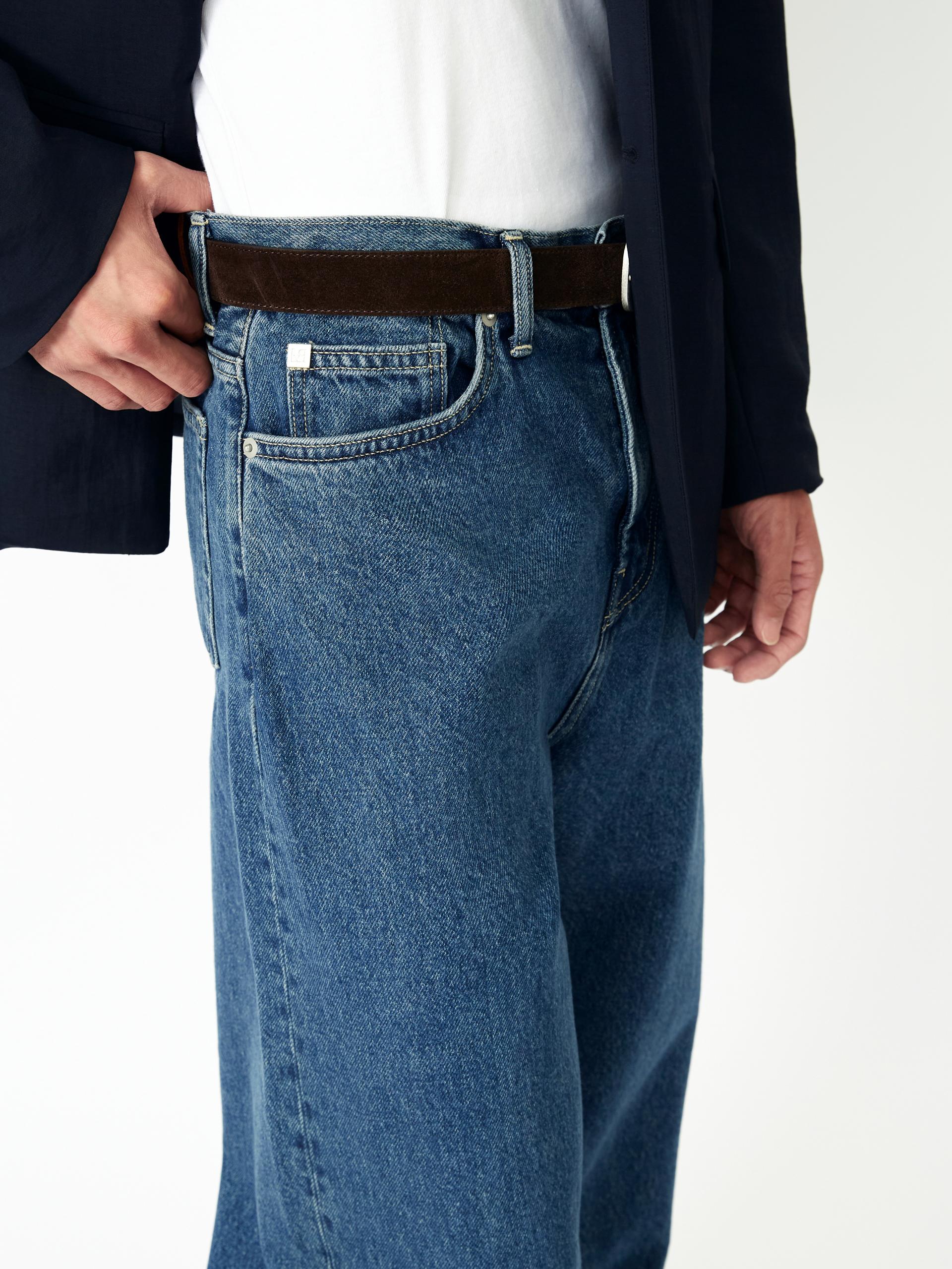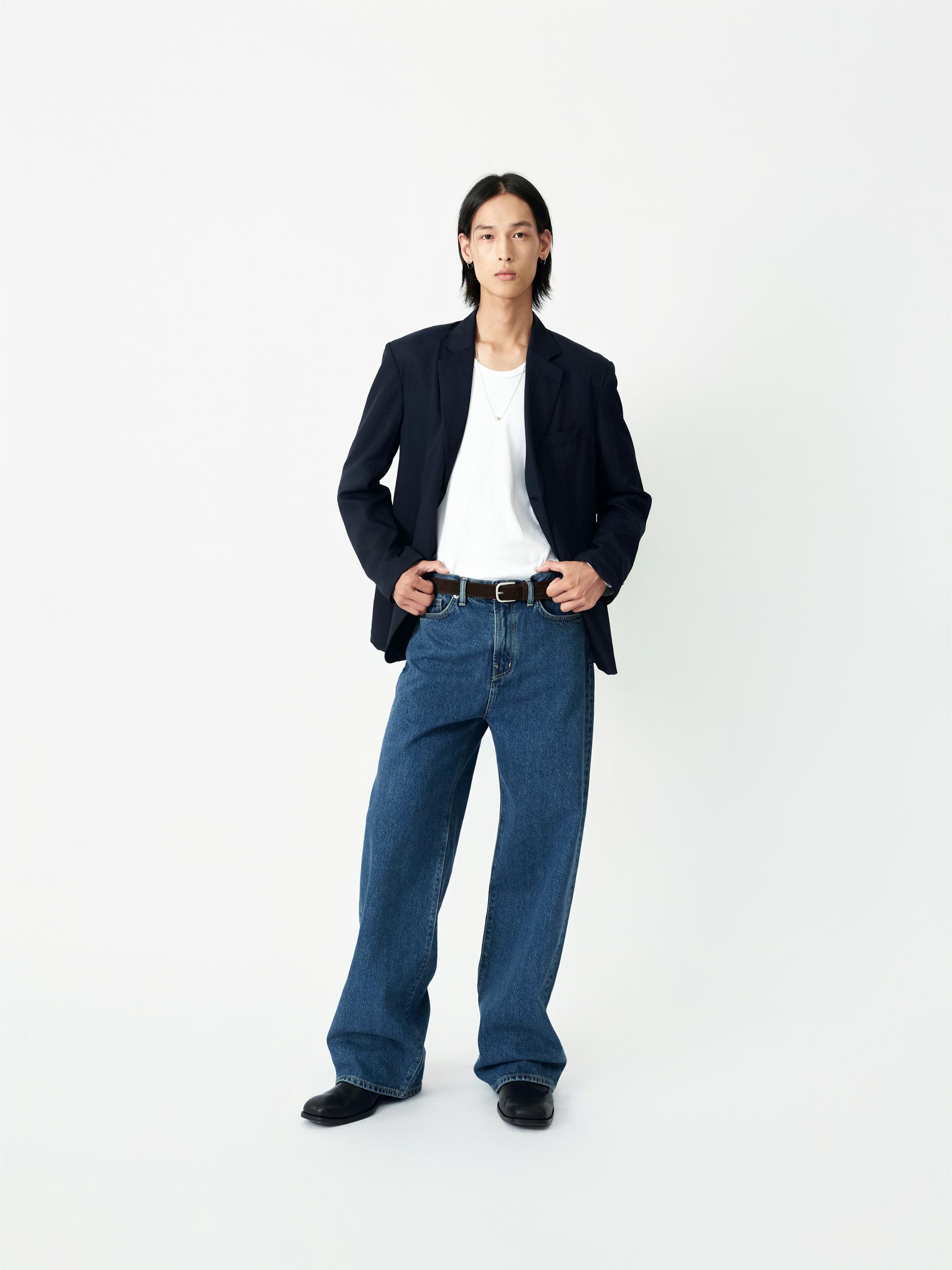 LABEL 로고가 각인된 고정식 켄톤 LB 엠블럼 베지터블 소가죽 엠보 패치 시계주머니에 위치한 LB 엠블럼 음각된 리벳 중앙지퍼 안쪽 시접 바인딩 처리 30수 트윌 코튼 라이닝 YKK 社의 지퍼 사용 코아사 봉사 청량한 블루톤의 컬러가 매력적인 와이드 핏 진 입니다. 편안한 착용감과 균형감있는 실루엣을 우선으로 고려하여 패턴 개발된 와이드 핏 진입니다. 발등에 자연스럽게 주름지는 기장감으로 제작되어 착용시 롱한 프로포션으로 연출해줍니다. 와이드한 핏을 잘 구현해줄 수 있는 아메리칸 얀(링사)이 사용된 데님을 사용하였으며, 오래도록 착용하여도 변형이 적은 우수한 내구성을 자랑합니다. 실버톤의 하드웨어와 베지터블 소가죽 엠보 패치가 가미되어 완성도를 높였습니다. |