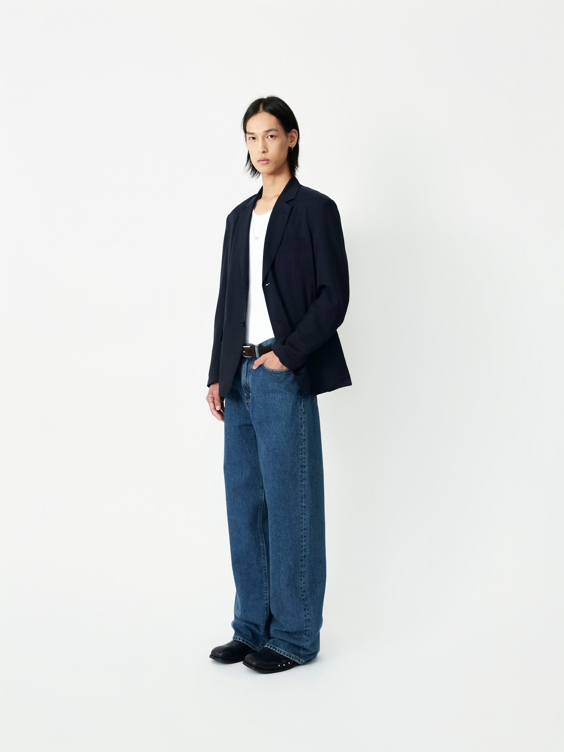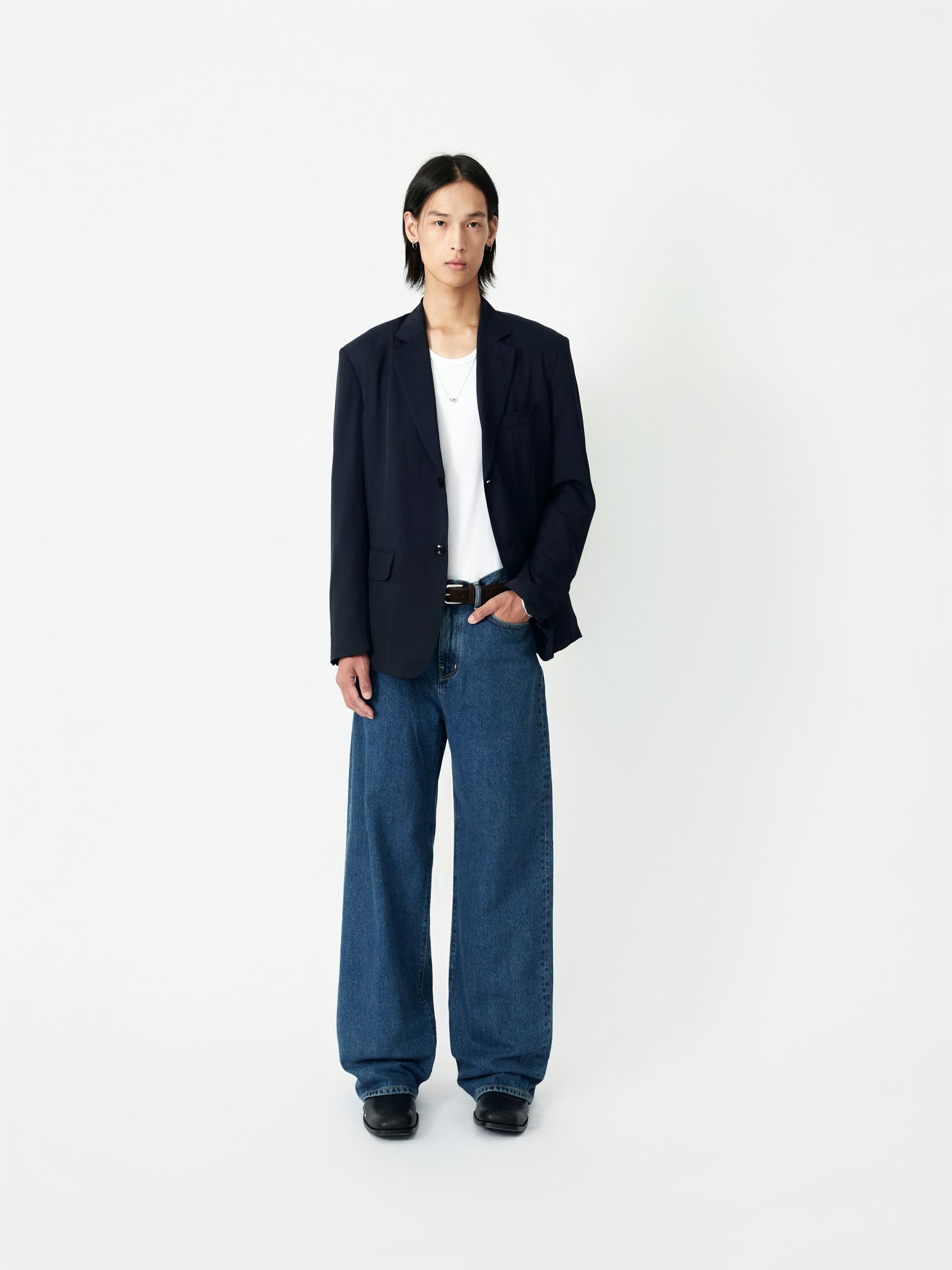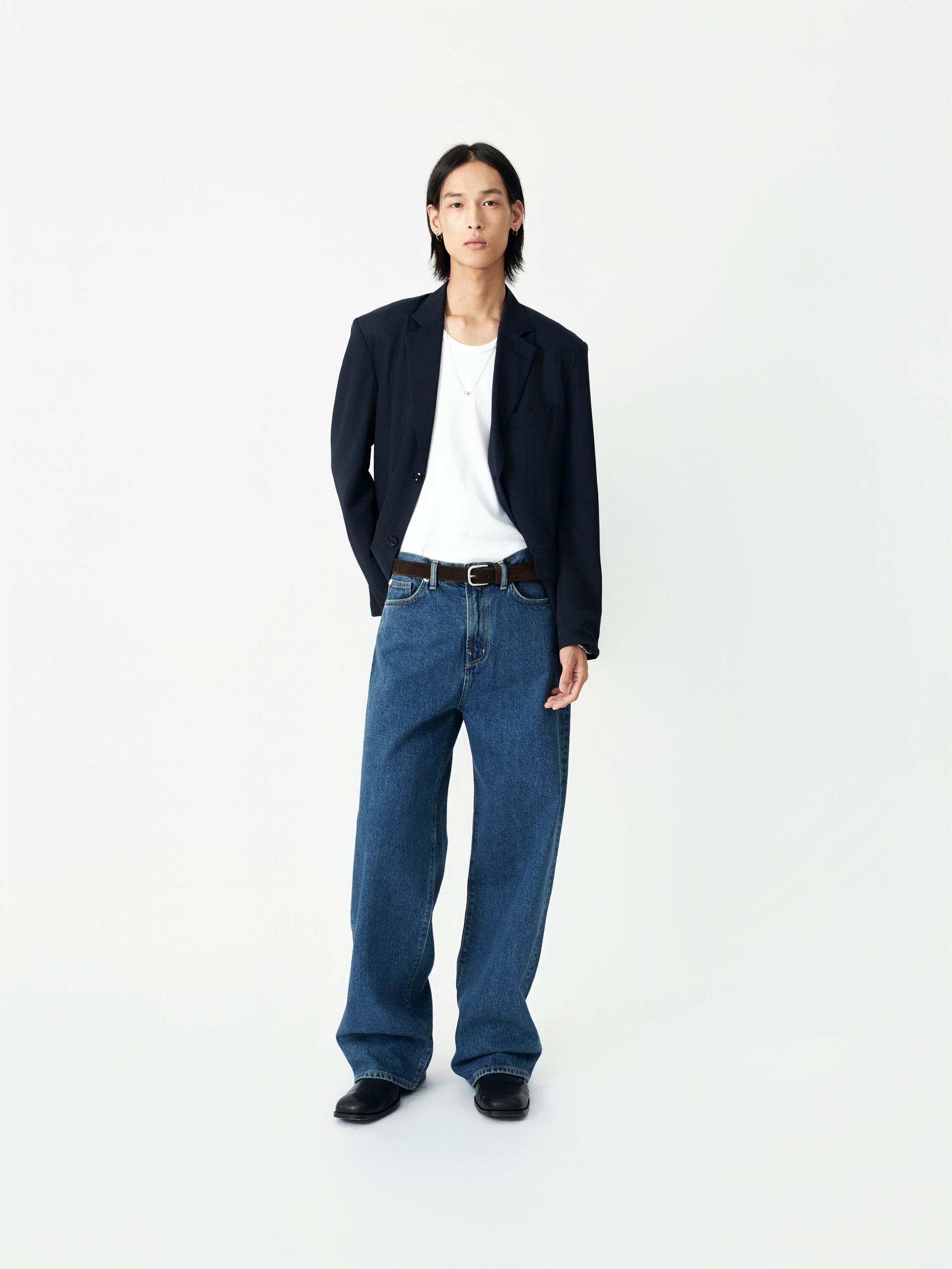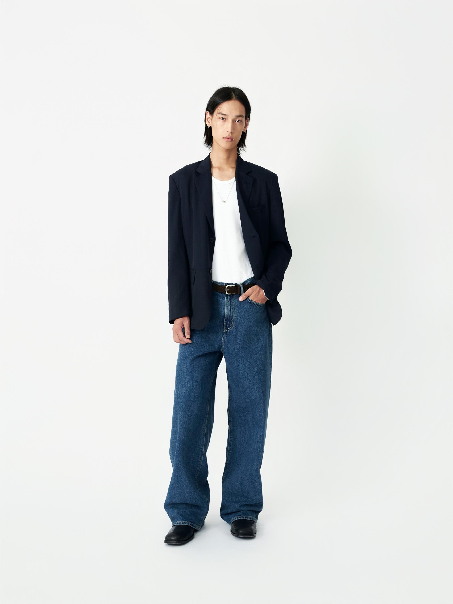 LABEL 로고가 각인된 고정식 켄톤 LB 엠블럼 베지터블 소가죽 엠보 패치 시계주머니에 위치한 LB 엠블럼 음각된 리벳 중앙지퍼 안쪽 시접 바인딩 처리 30수 트윌 코튼 라이닝 YKK 社의 지퍼 사용 코아사 봉사 청량한 블루톤의 컬러가 매력적인 와이드 핏 진 입니다. 편안한 착용감과 균형감있는 실루엣을 우선으로 고려하여 패턴 개발된 와이드 핏 진입니다. 발등에 자연스럽게 주름지는 기장감으로 제작되어 착용시 롱한 프로포션으로 연출해줍니다. 와이드한 핏을 잘 구현해줄 수 있는 아메리칸 얀(링사)이 사용된 데님을 사용하였으며, 오래도록 착용하여도 변형이 적은 우수한 내구성을 자랑합니다. 실버톤의 하드웨어와 베지터블 소가죽 엠보 패치가 가미되어 완성도를 높였습니다. |