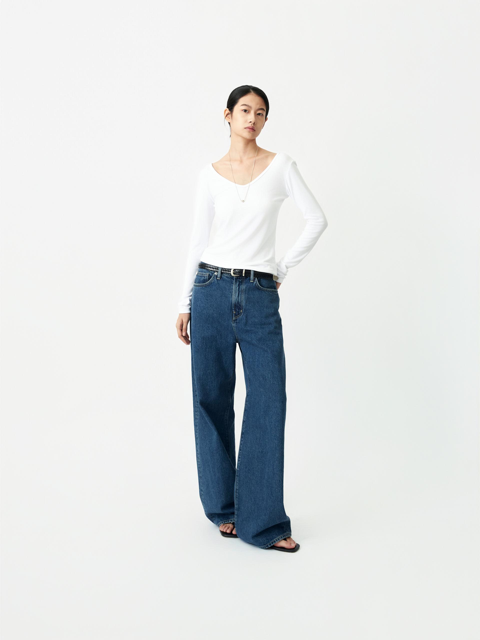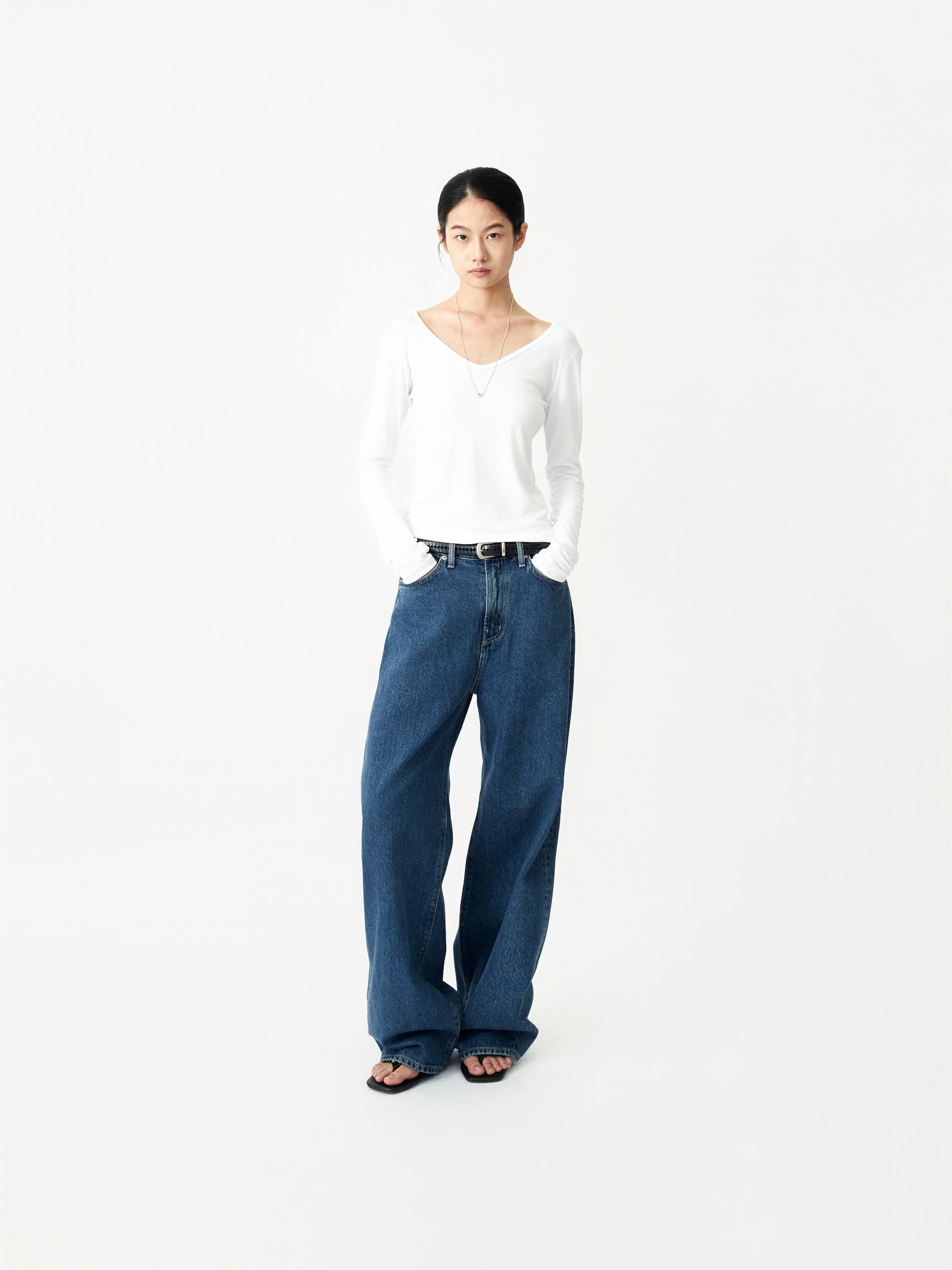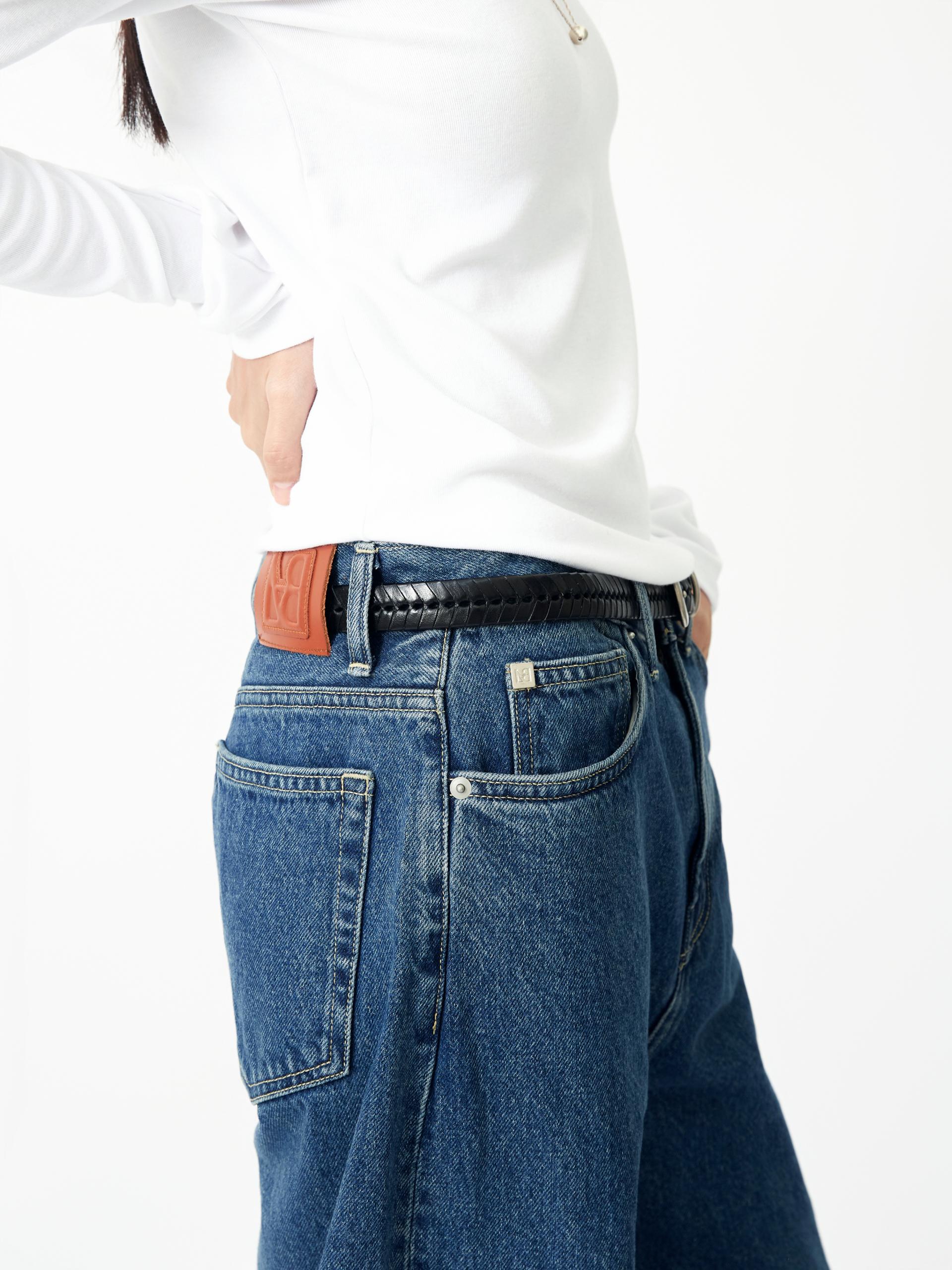 LABEL 로고가 각인된 고정식 켄톤 LB 엠블럼 베지터블 소가죽 엠보 패치 시계주머니에 위치한 LB 엠블럼 음각된 리벳 중앙지퍼 안쪽 시접 바인딩 처리 30수 트윌 코튼 라이닝 YKK 社의 지퍼 사용 코아사 봉사 청량한 블루톤의 컬러가 매력적인 와이드 핏 진 입니다. 편안한 착용감과 균형감있는 실루엣을 우선으로 고려하여 패턴 개발된 와이드 핏 진입니다. 발등에 자연스럽게 주름지는 기장감으로 제작되어 착용시 롱한 프로포션으로 연출해줍니다. 와이드한 핏을 잘 구현해줄 수 있는 아메리칸 얀(링사)이 사용된 데님을 사용하였으며, 오래도록 착용하여도 변형이 적은 우수한 내구성을 자랑합니다. 실버톤의 하드웨어와 베지터블 소가죽 엠보 패치가 가미되어 완성도를 높였습니다. |