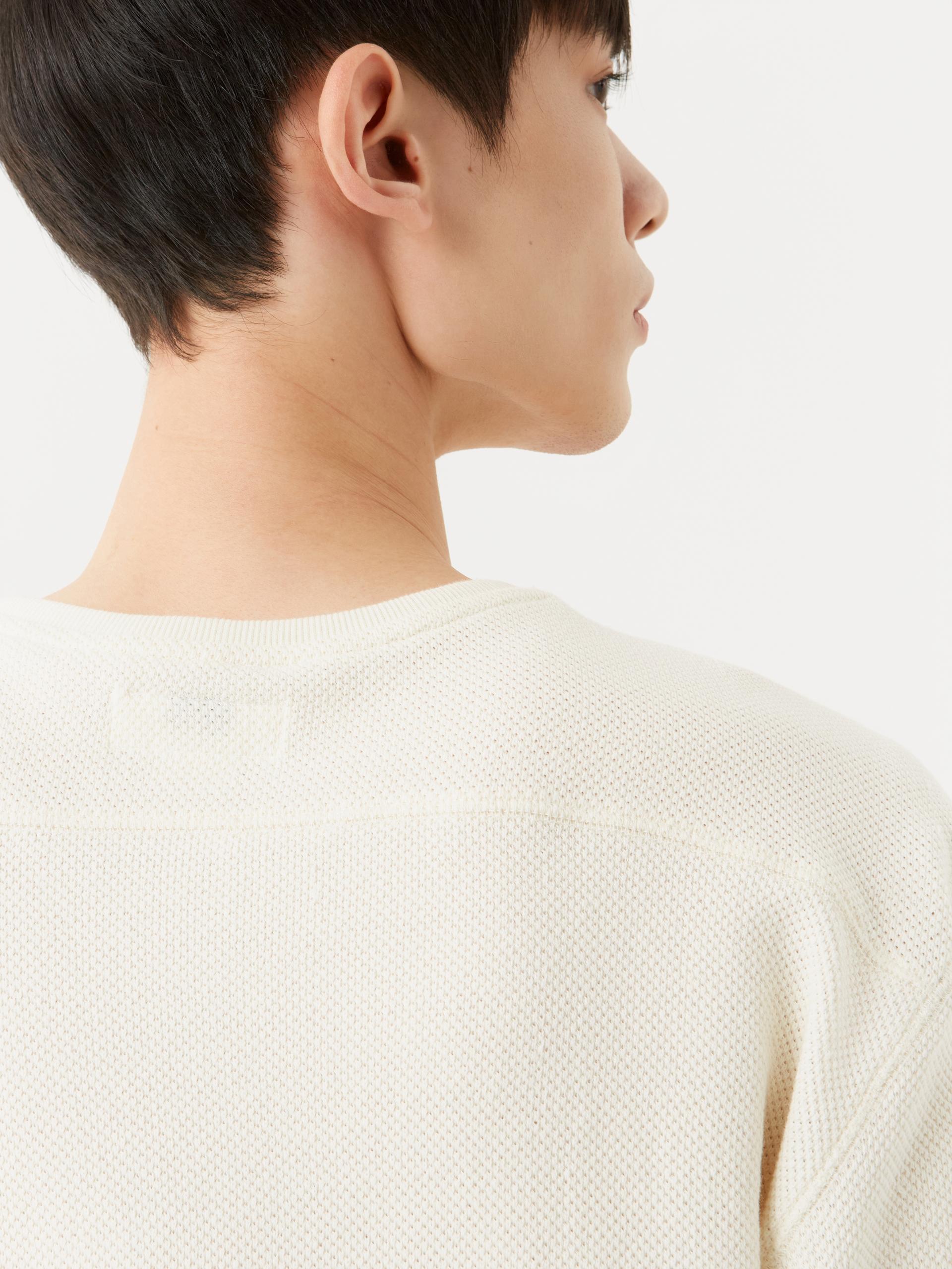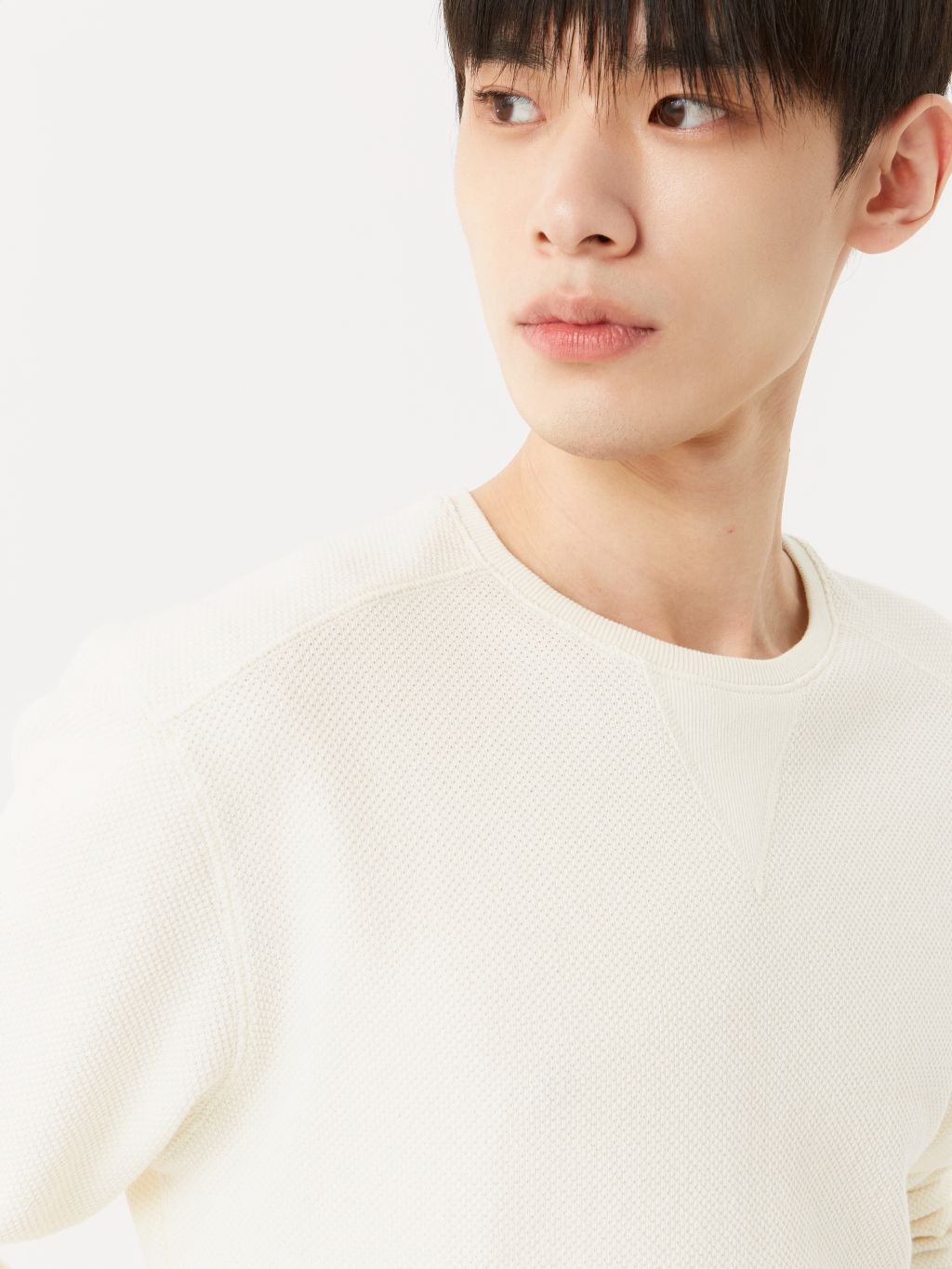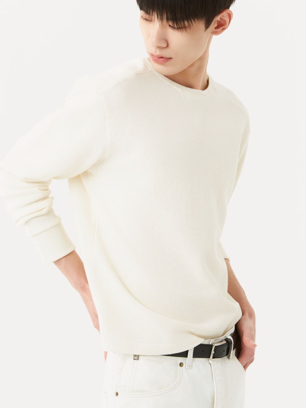 Cotton 100 촘촘하게 엮인 와플 조직으로, 러프한 표면감이 특징입니다. CARE · 드라이클리닝을 권장합니다. |