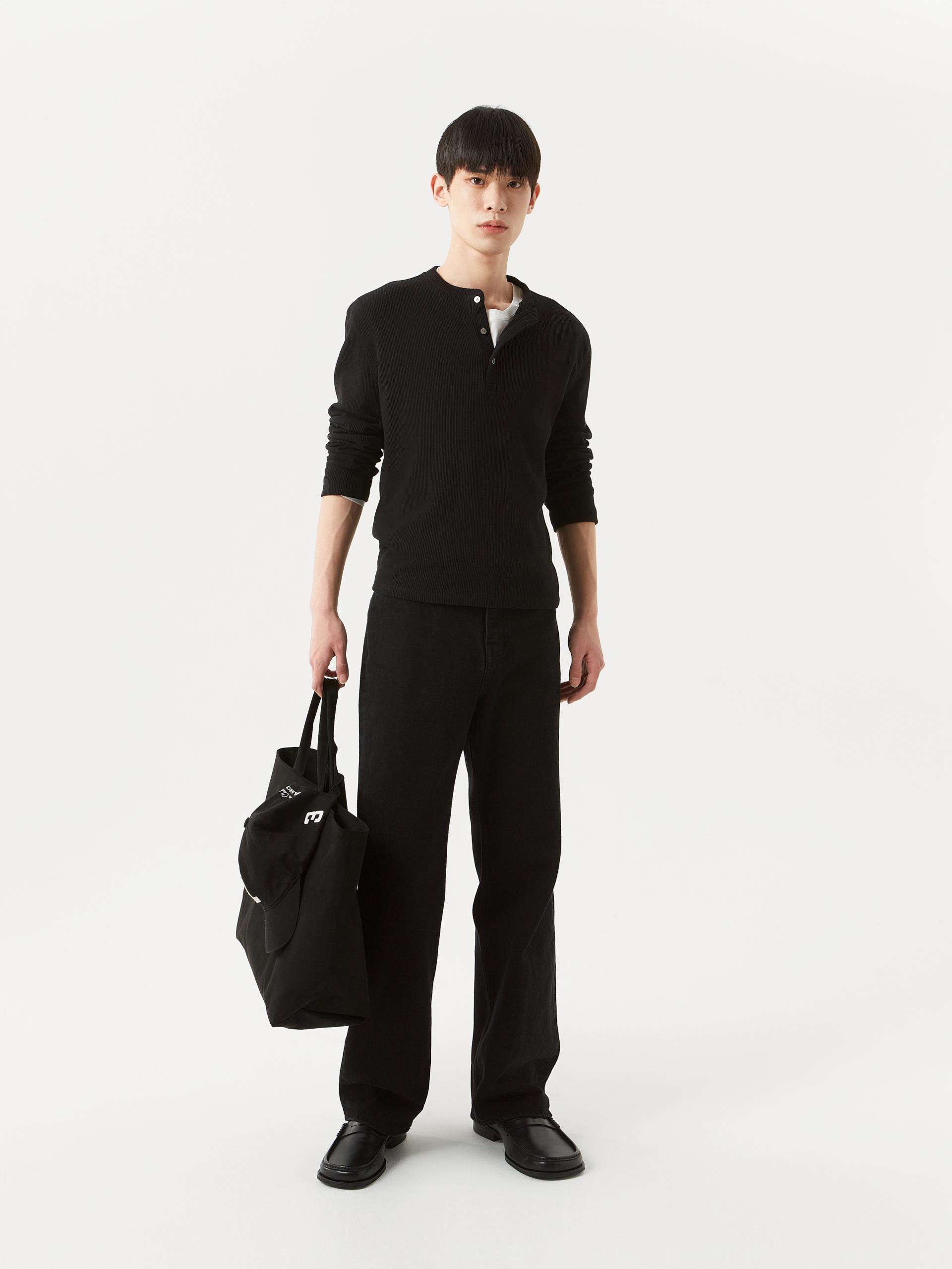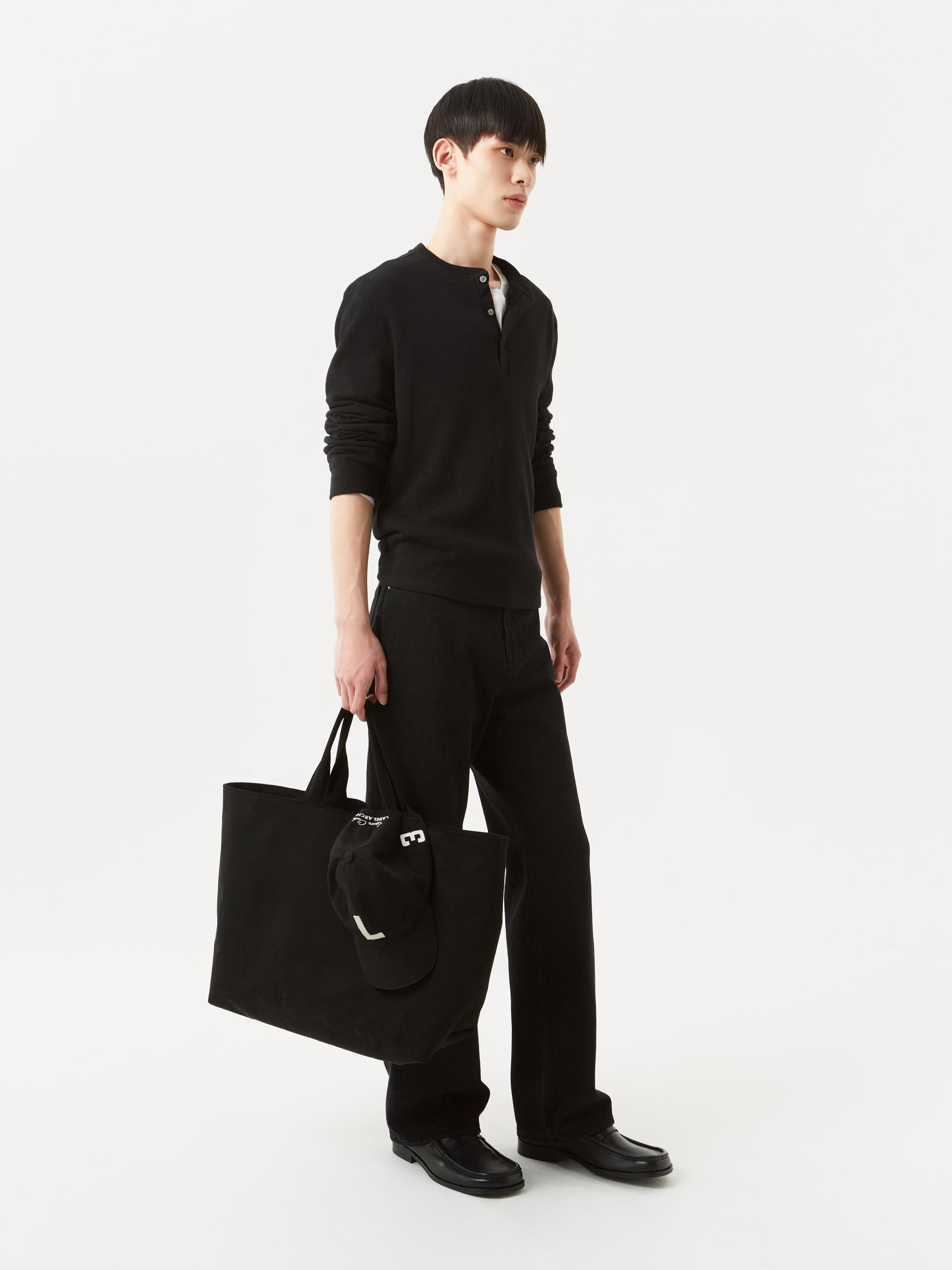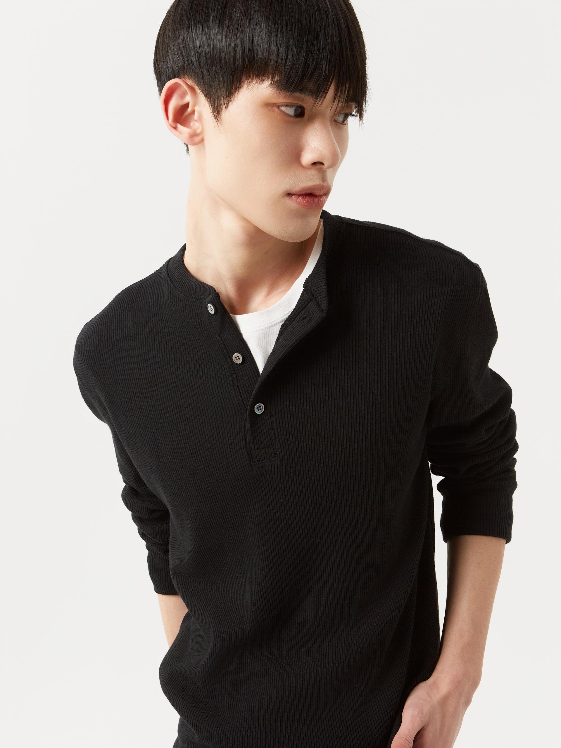 루즈 핏 크루넥 탑 정면 3버튼 플래킷 소매 커프스 디테일 로고 각인된 자개 단추 사용 포근한 질감이 돋보이는 골지 소재로 제작된 루즈 핏 헨리 탑입니다. 전체적으로 여유 있는 핏으로 착용되며, 유연한 탄성과 탄탄한 조직감으로 안정적인 실루엣을 완성해 줍니다. 네크에 버튼 다운 플래킷이 있으며, 팬츠에 넣거나 빼서 입기 좋은 기장감으로 제작되어 스타일링하기 좋은 사이즈감을 지녔습니다. 간결한 실루엣과 모노톤의 색감, 편안한 소재로 제작되어 에센셜한 이너로 활용하기 좋은 아이템입니다. |