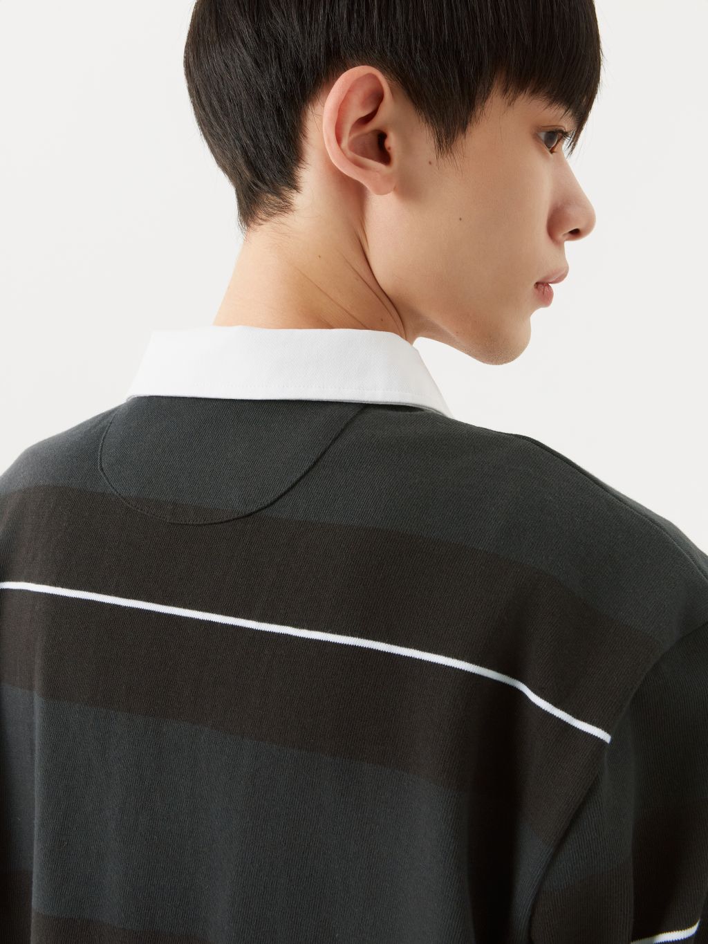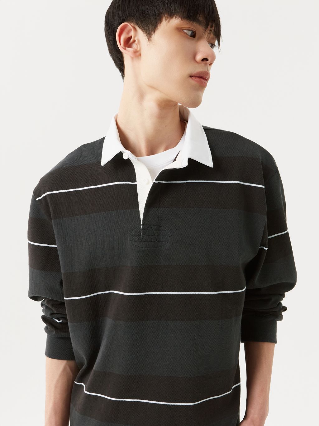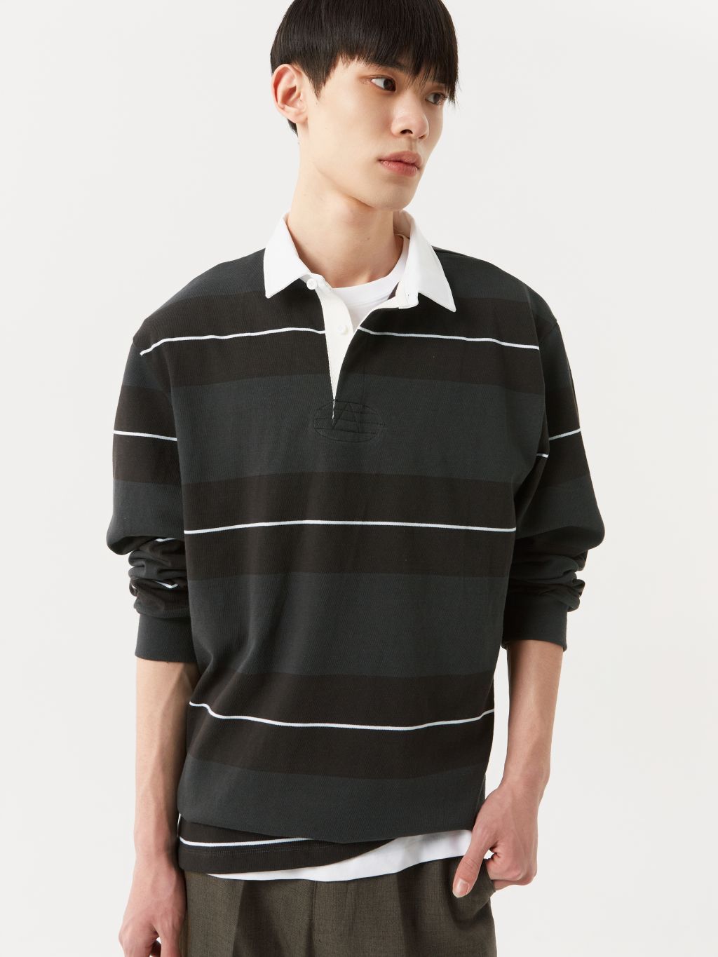 루즈 핏 럭비 폴로 탑 트윌 조직 칼라 배색 히든 버튼 클로징 단작 아래 스티칭 디테일 옆선 슬릿 & 뒷목 아래 패치 디테일 네크 라인, 옆선 슬릿 안쪽 헤링본 바인딩 처리 클래식한 럭비티의 디자인적 요소를 정제하여 담아낸 폴로 탑입니다. 10수 코튼을 사용하여 내구성이 뛰어나며, 부드럽고 편안한 착용감을 느끼실 수 있습니다. 전체적으로 여유 있는 루즈 핏으로 착용되며, 트윌 코튼 소재의 칼라와 히든 버튼 클로징으로 깔끔하고 견고한 외관을 지녔습니다. 차분한 컬러 블록 디자인이 더해져 일상적인 착용은 물론, 다양한 스타일링에 포인트가 되어줄 활용도 높은 아이템 입니다. |