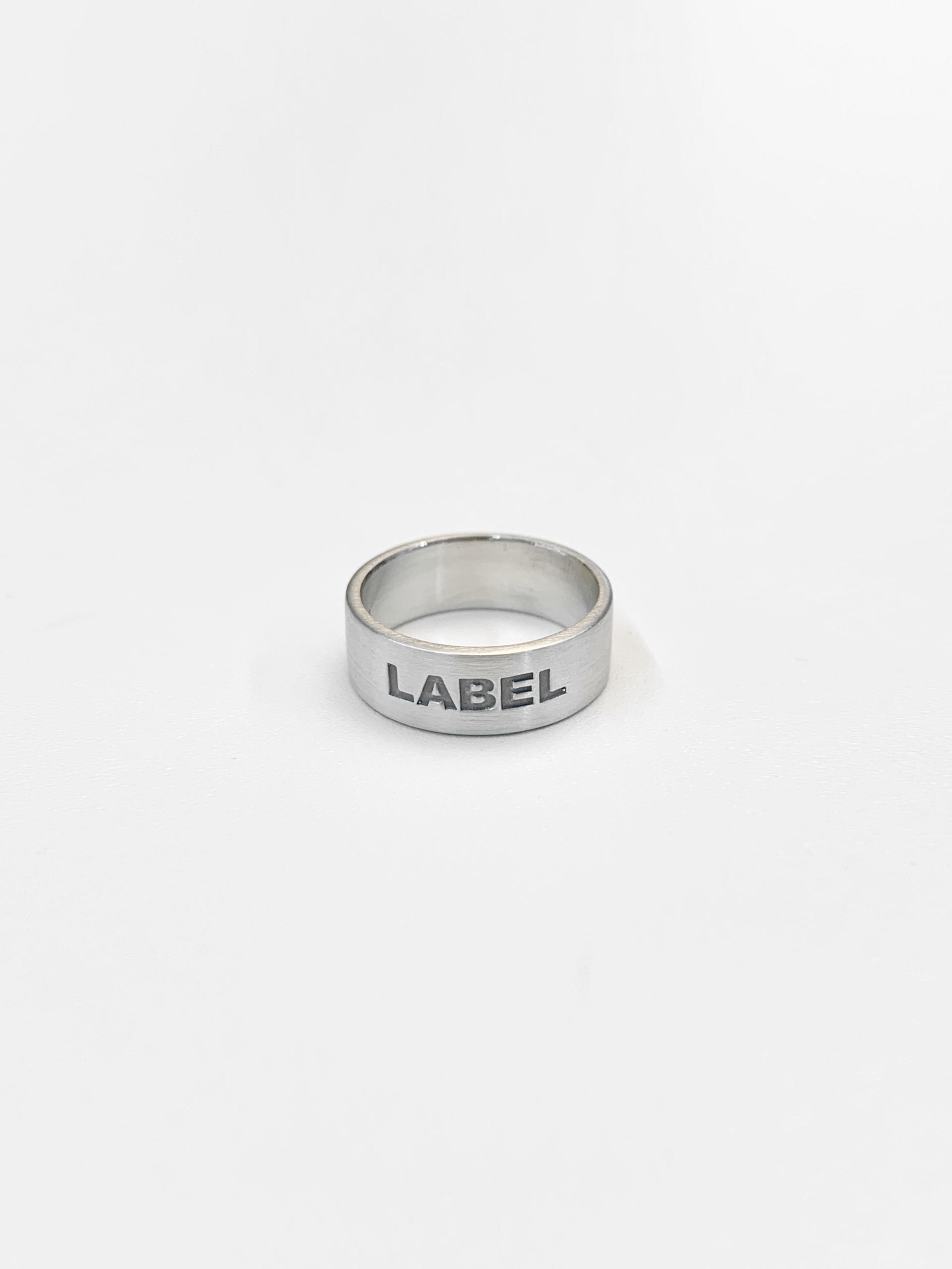 LABEL 로고가 각인된 실버 반지와 목걸이입니다.
