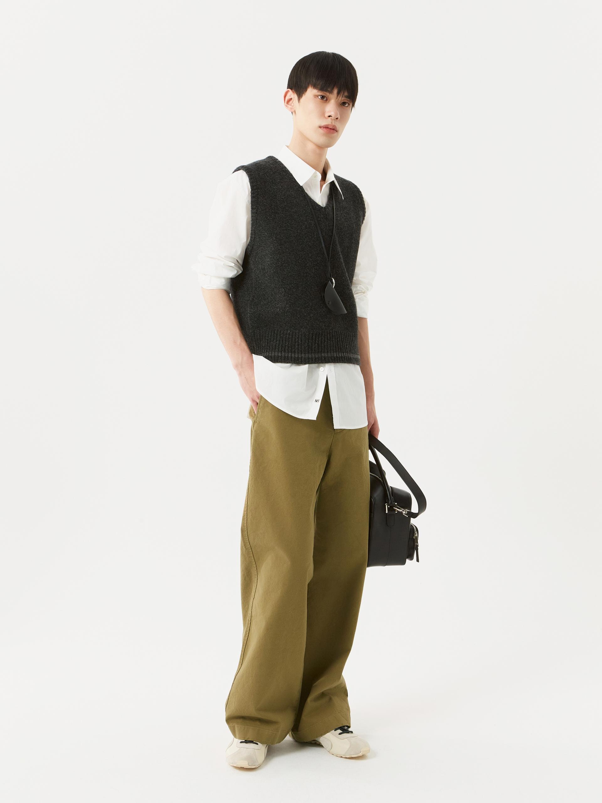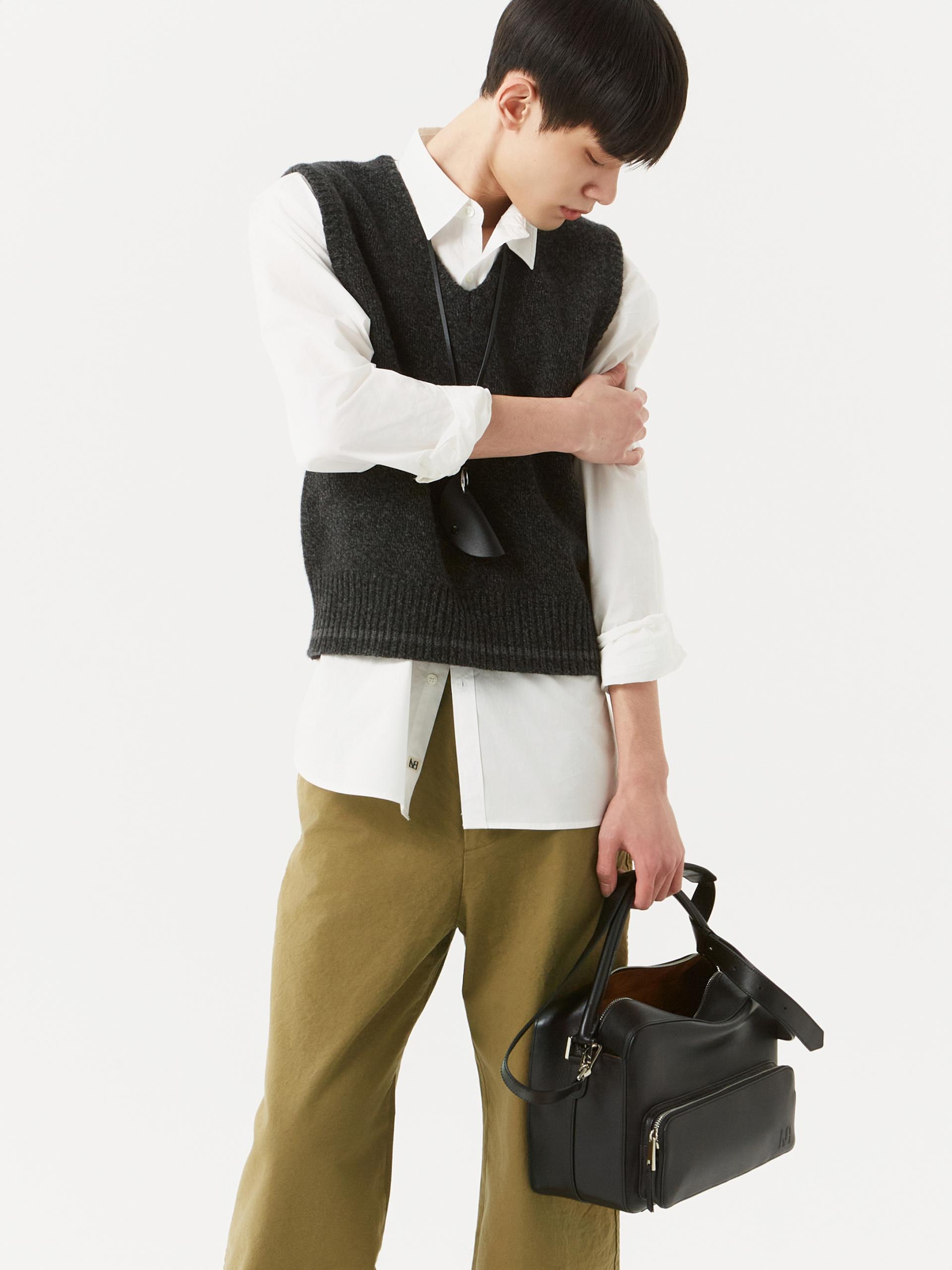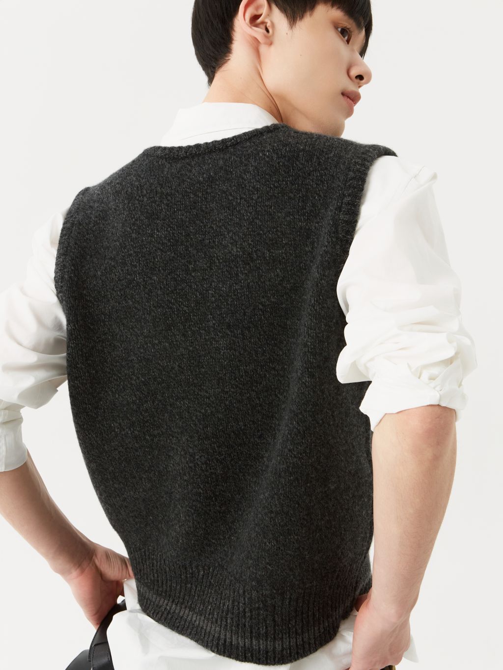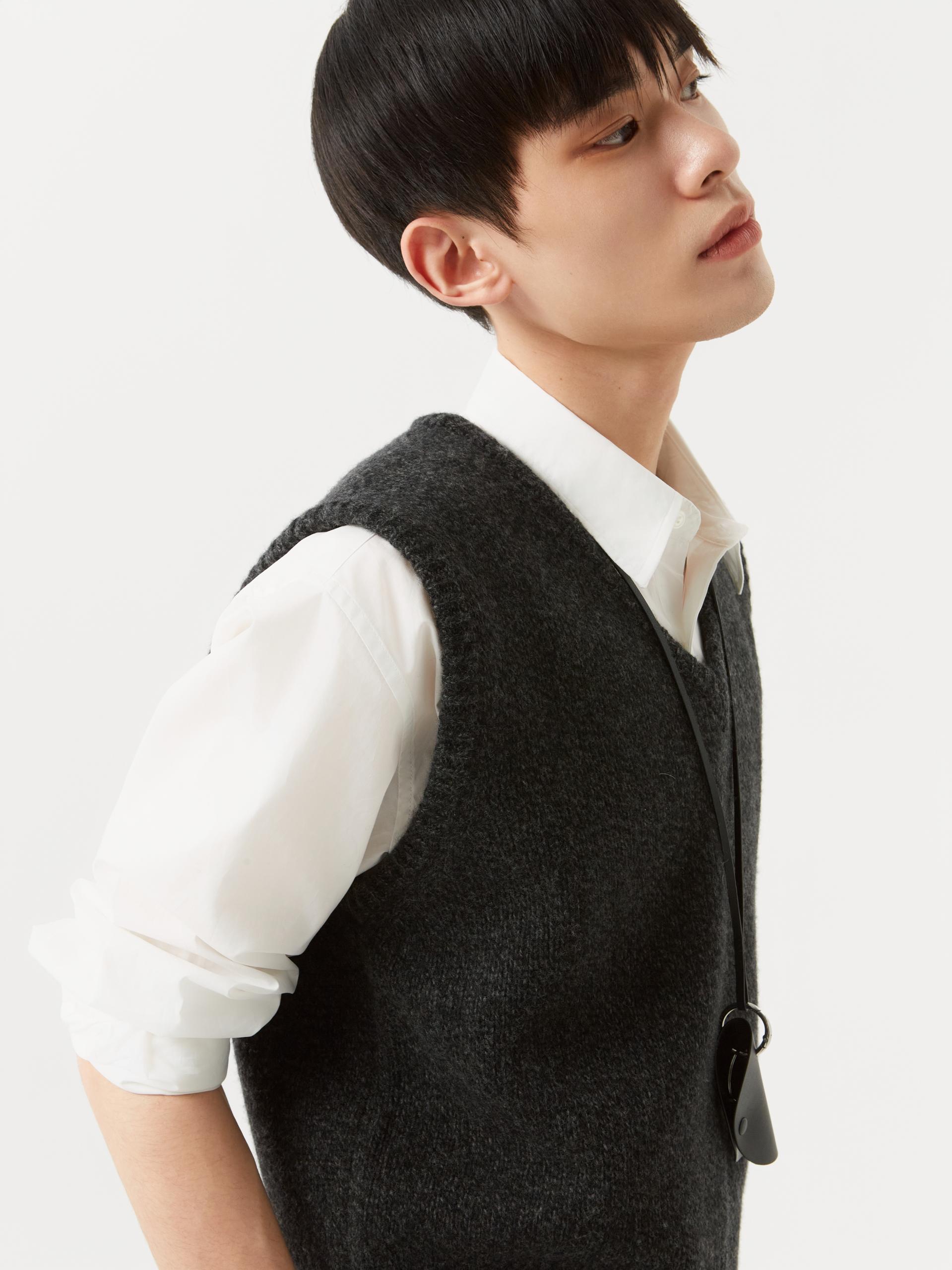 브이넥 베스트 레귤러 핏 & 크롭 기장 3합 믹스된 원사 사용 밑단,암홀 립 조직 변형 밑단 컬러 라인 배색 컬러라인 배색 포인트가 매력적인 브이넥 베스트 입니다. 레귤러 핏 & 크롭한 기장감으로 착용되며, 가벼운 이너와 스타일링하기 좋은 사이즈로 제작 되었습니다. 호주산 메리노 울 원사를 사용하였으며, 원사 특유의 자연스러운 색감이 돋보이는 아이템 입니다. |