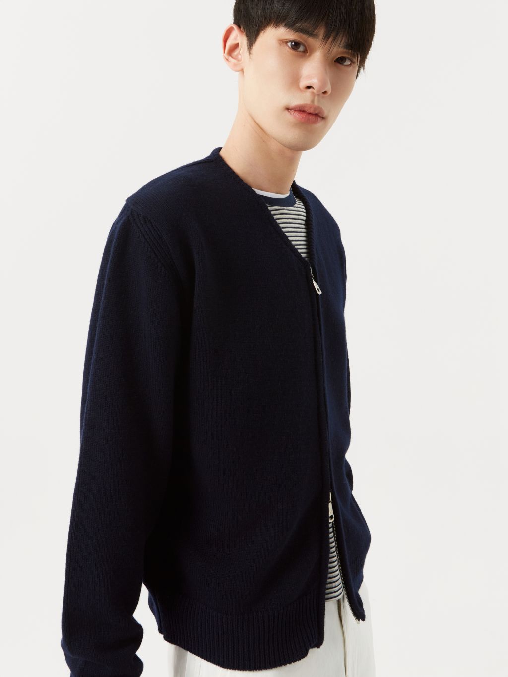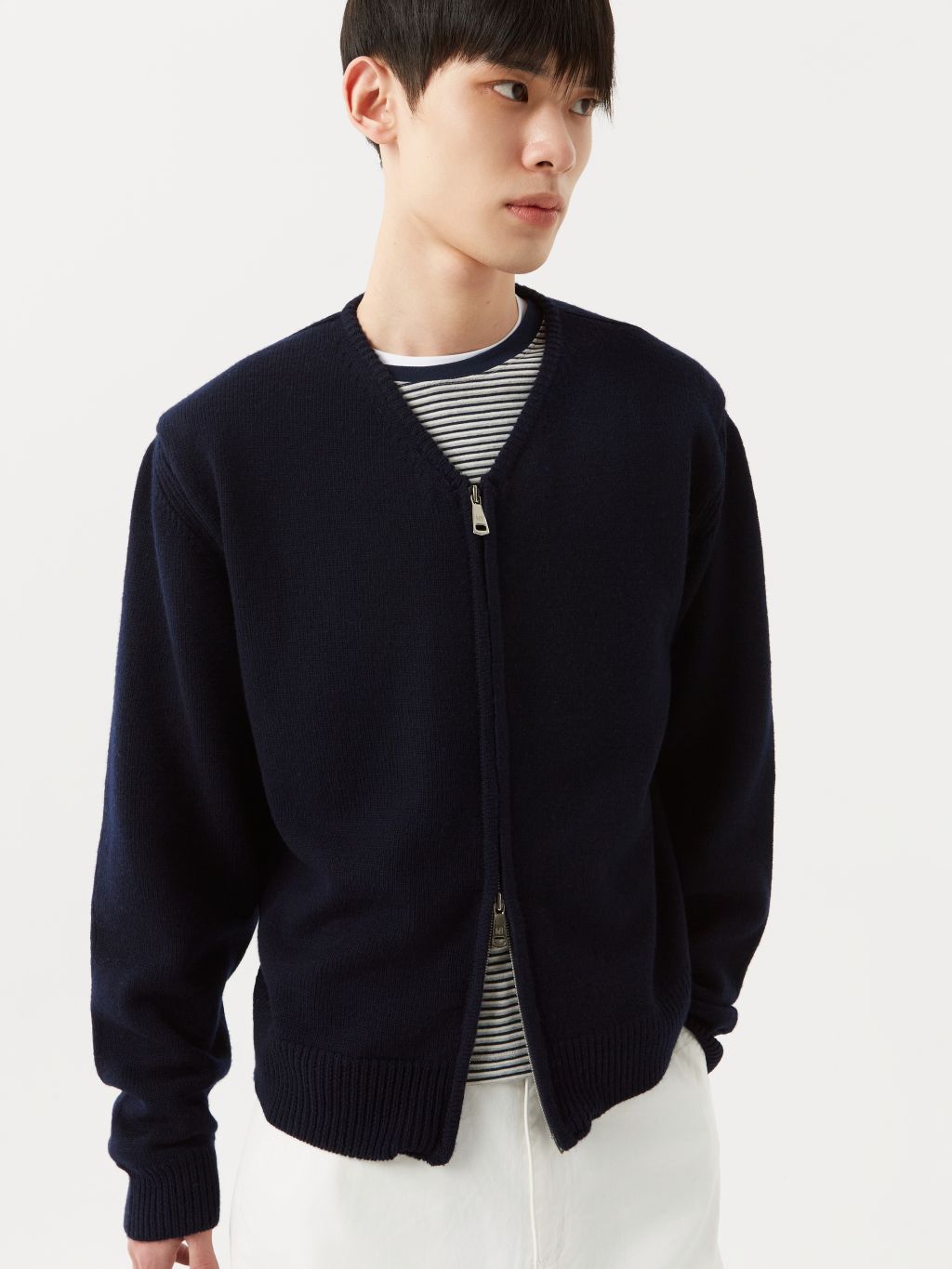 루즈핏 집업 가디건 투웨이 지퍼 & 엠블럼 각인된 지퍼 헤드 소맷단, 밑단 리브 조직 마감 여유 있는 핏과 크롭한 기장감으로 균형 잡힌 프로포션을 지닌 브이넥 가디건 입니다. 도톰한 두께의 니트 짜임은 벨트를 살짝 덮는 크롭한 기장과 여유있는 소매통의 형태감을 잘 유지하여 멋스러운 착용감을 선사합니다. 간절기 아우터, 레이어드용 이너로 연출하기 좋은 활용도 높은 아이템 입니다. |
