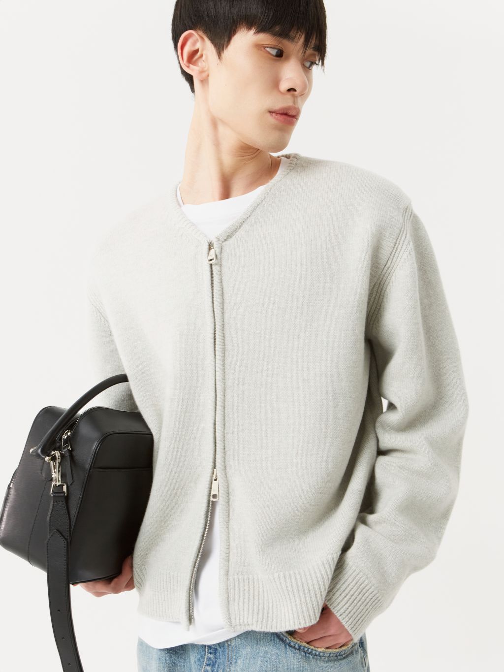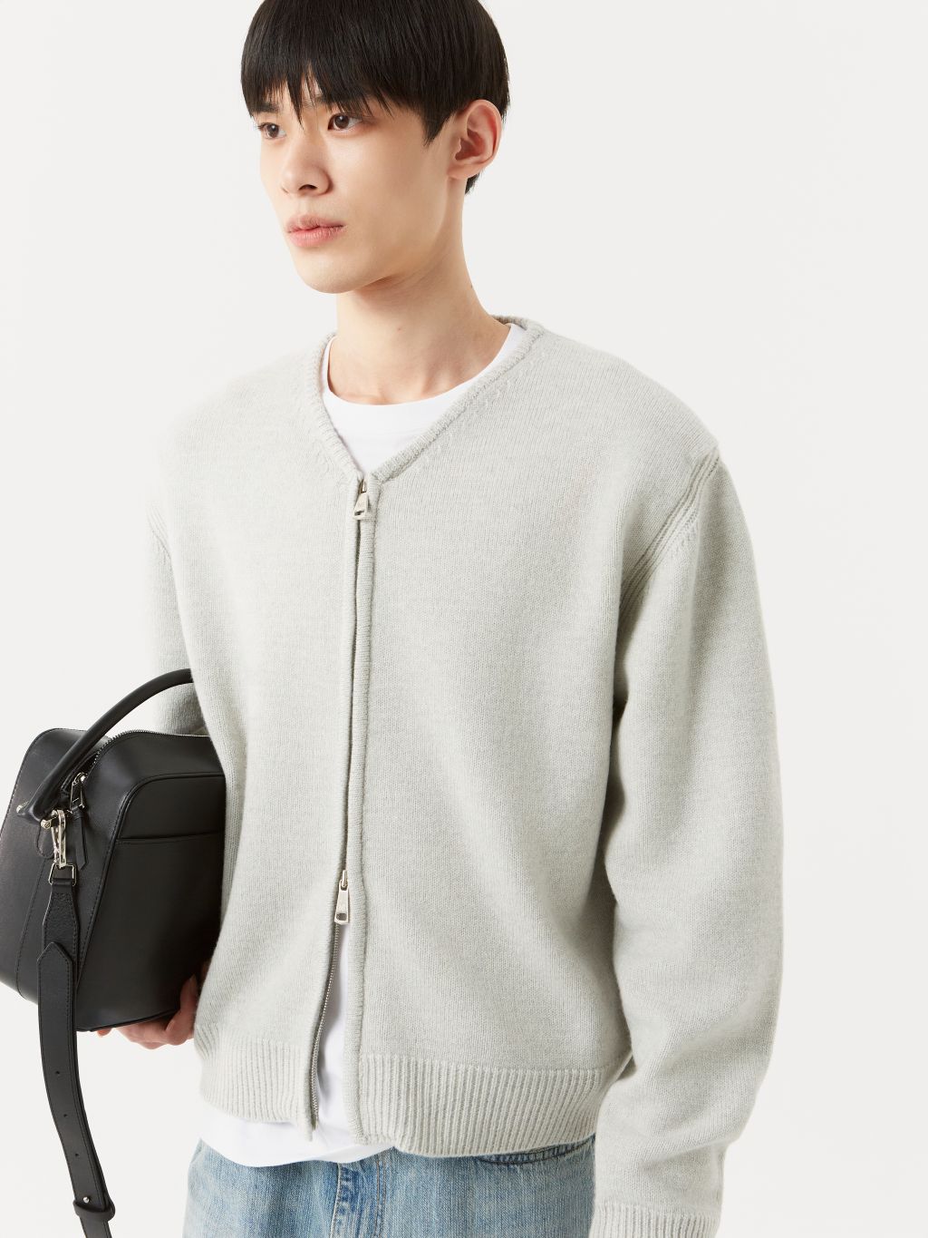 루즈핏 집업 가디건 투웨이 지퍼 & 엠블럼 각인된 지퍼 헤드 소맷단, 밑단 리브 조직 마감 여유 있는 핏과 크롭한 기장감으로 균형 잡힌 프로포션을 지닌 브이넥 가디건 입니다. 도톰한 두께의 니트 짜임은 벨트를 살짝 덮는 크롭한 기장과 여유있는 소매통의 형태감을 잘 유지하여 멋스러운 착용감을 선사합니다. 간절기 아우터, 레이어드용 이너로 연출하기 좋은 활용도 높은 아이템 입니다. |