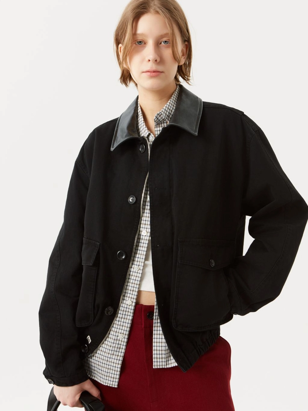 오버핏 싱글 칼라 자켓 바이오 워싱 공정 코튼 / 레더 배색 전체 라이닝 마감 지퍼/버튼 2중 클로징 YKK 社의 EXCELLA ® 투웨이 지퍼 LABEL 각인 처리 소뿔 단추 사용 밑단 밴딩 마감 전면 아웃포켓&웰트 포켓의 멀티 포켓, 내부 속주머니 포함 전면 단작 하단 사각 라벨 디테일 가죽 칼라 배색이 매력적인 오버사이즈 코튼 자켓입니다. 클래식한 에비에이터 자켓의 디자인 요소를 정제하여 담아냈습니다. 전체적으로 여유로운 사이즈로 제작되어 다양한 이너와 레이어링하여도 편안하게 착용됩니다. 전체 더블 스티치로 견고하게 마감처리 되었으며, 밑단 밴딩 처리로 활동성을 겸비한 제품입니다. 내부 속주머니와 전면 더블 아웃 포켓이 있으며, 사이드 웰트 포켓을 추가하여 실용성을 더하였습니다. 입을수록 길들여지는 워크자켓의 러프한 무드를 지니면서, 카우 레더 배색으로 엣지를 더한 매력적인 제품입니다. 매해 찾게되는 시즌 리스 제품으로 옷장에 오래두고 함께해보시기 바랍니다. |