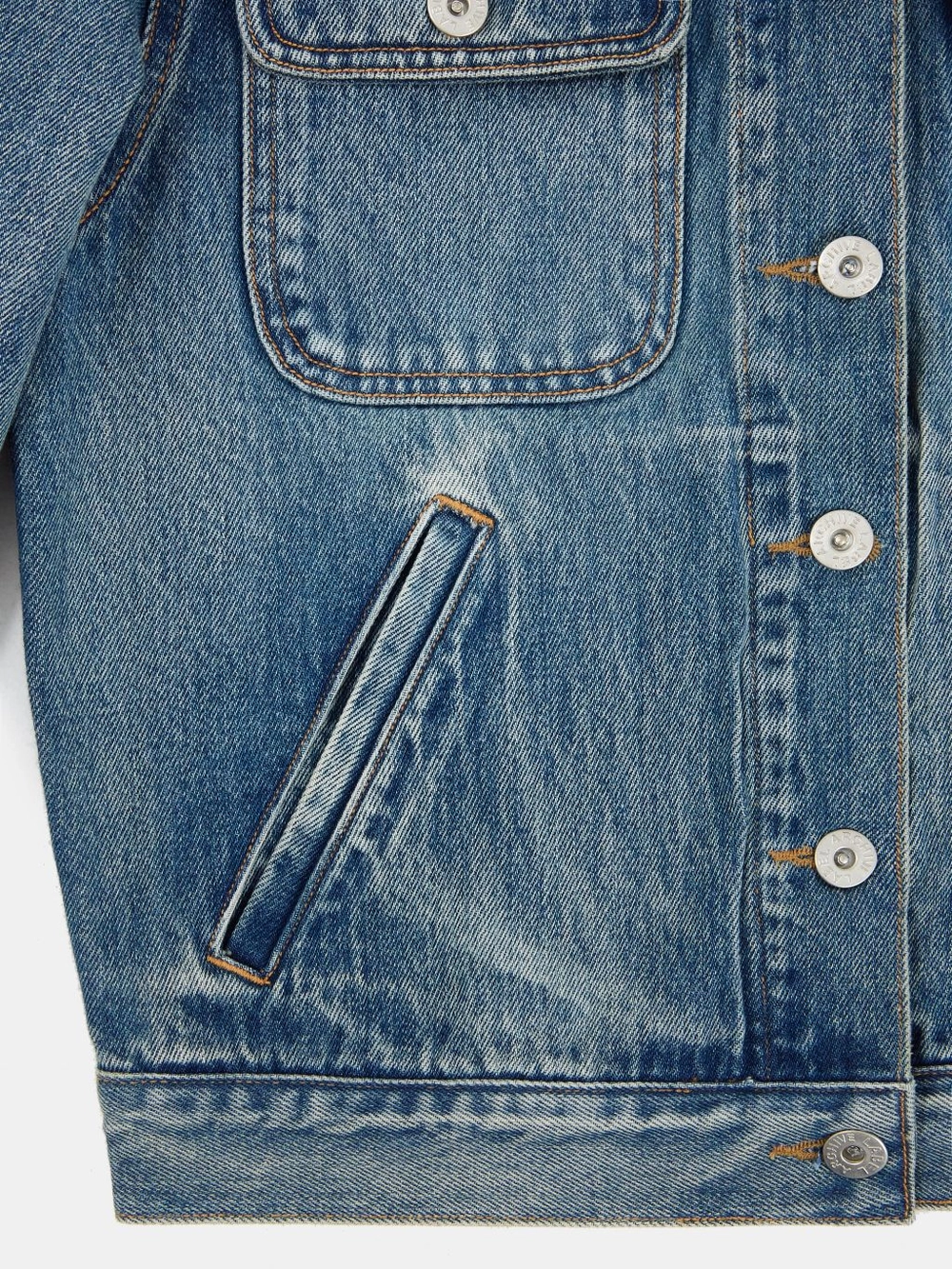 스탠다드 핏 데님 트러커 핸드 워싱 가공 아웃포켓 & 플랩 포켓 디테일 소매 커프스 디테일 LABEL 각인 켄톤 사용 페이퍼 패치 & 밑단 벨트 스트랩 디테일 블루톤의 핸드 워싱 컬러감이 돋보이는 스탠다드 핏 데님 트러커 입니다. 트러커 자켓의 기능적 요소인 멀티 포켓과 견고한 켄톤 버튼을 그대로 살리고, 현대적인 감각을 더해 더욱 세련된 실루엣으로 완성했습니다. 밑단 벨트 디테일로 사이즈 조절이 가능하며, 빈티지한 멋을 살린 페이퍼 패치가 포인트 됩니다. 오리지널 트러커 자켓의 고유한 매력에 멋스러운 워싱 디테일이 가미된 소장가치 있는 아이템 입니다. · 핸드 워싱 기법으로 제작되어 모든 제품의 워싱 패턴이 완전히 동일하지 않을 수 있습니다. 이는 자연스럽게 발생하는 차이로, 각 제품만의 고유한 워싱감을 살리는 요소가 됩니다. · 종이탭은 워싱 과정 중 자연스럽게 이염 현상이 발생할 수 있으며, 이 현상은 불량이 아님을 안내드립니다. · Ben relaxed-fit jeans mid blue wash 제품과 셋업으로 착용이 가능합니다. |