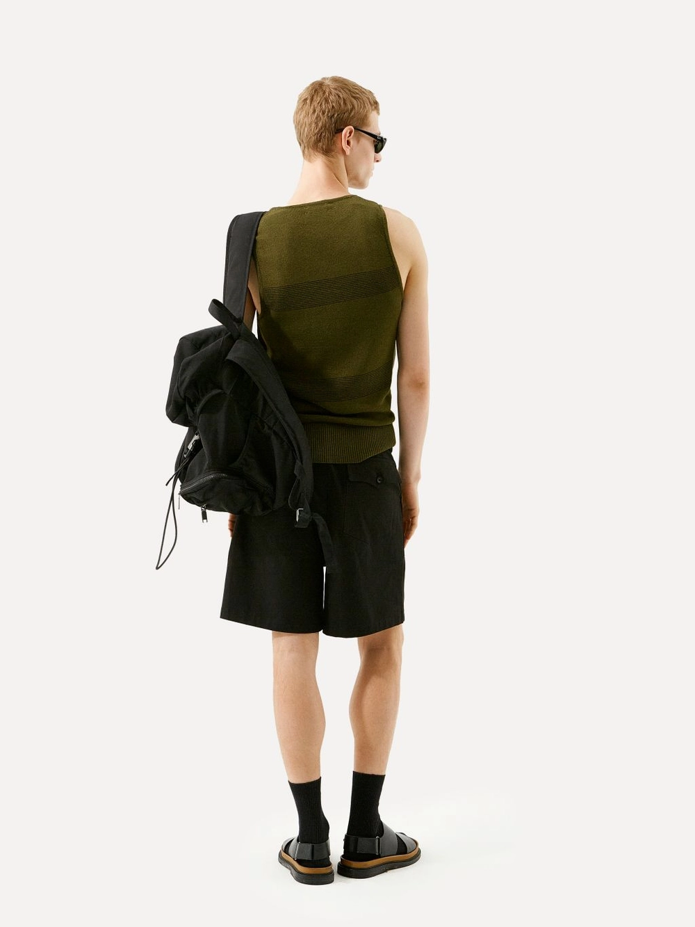 Cotton 100 고밀도로 짜여 견고하면서도 힘 있는 코튼 소재로 탄탄한 조직감이 형태를 잘 잡아주어 실루엣을 안정적으로 유지해 줍니다. CARE · 드라이클리닝을 권장합니다. |