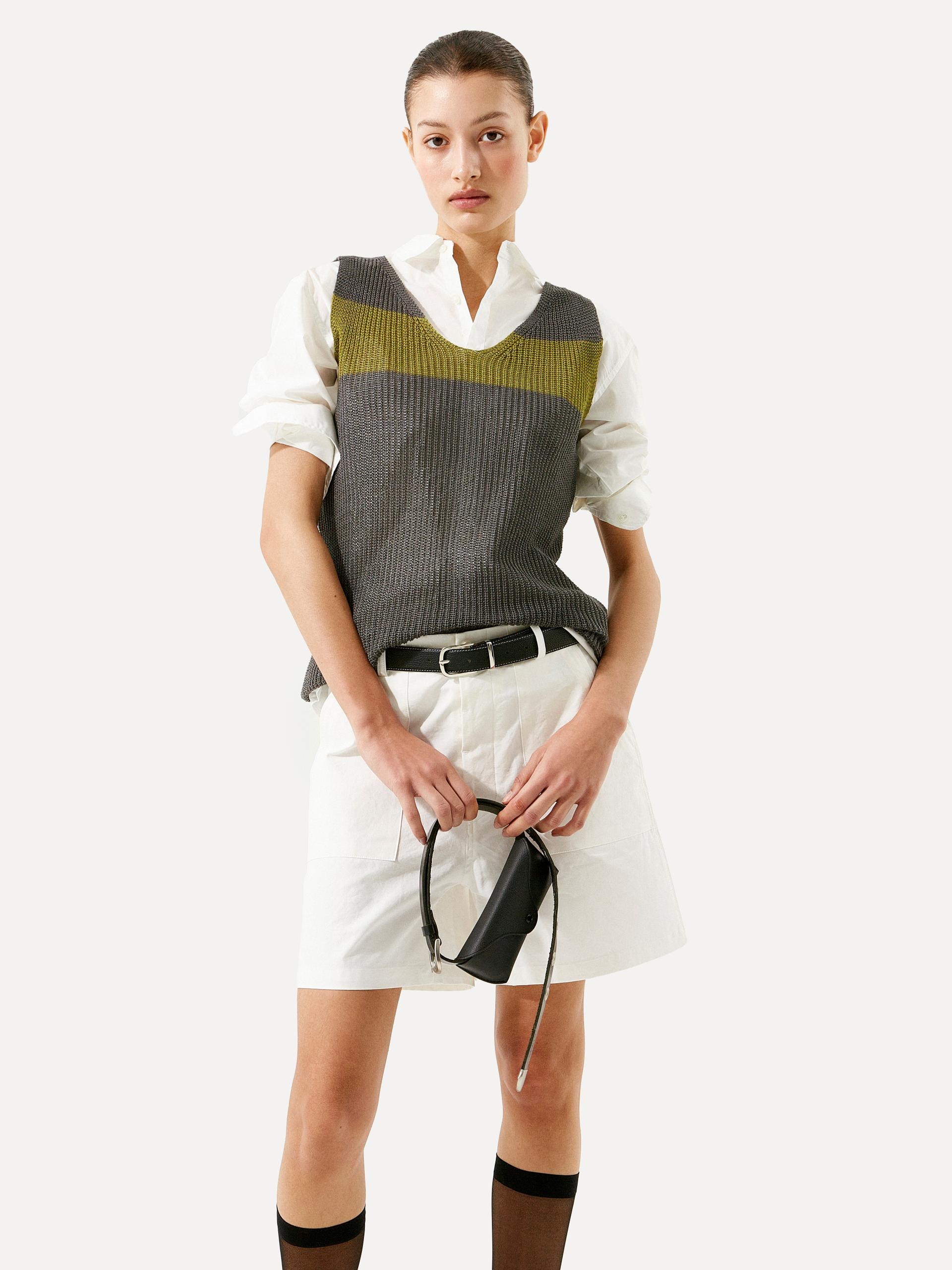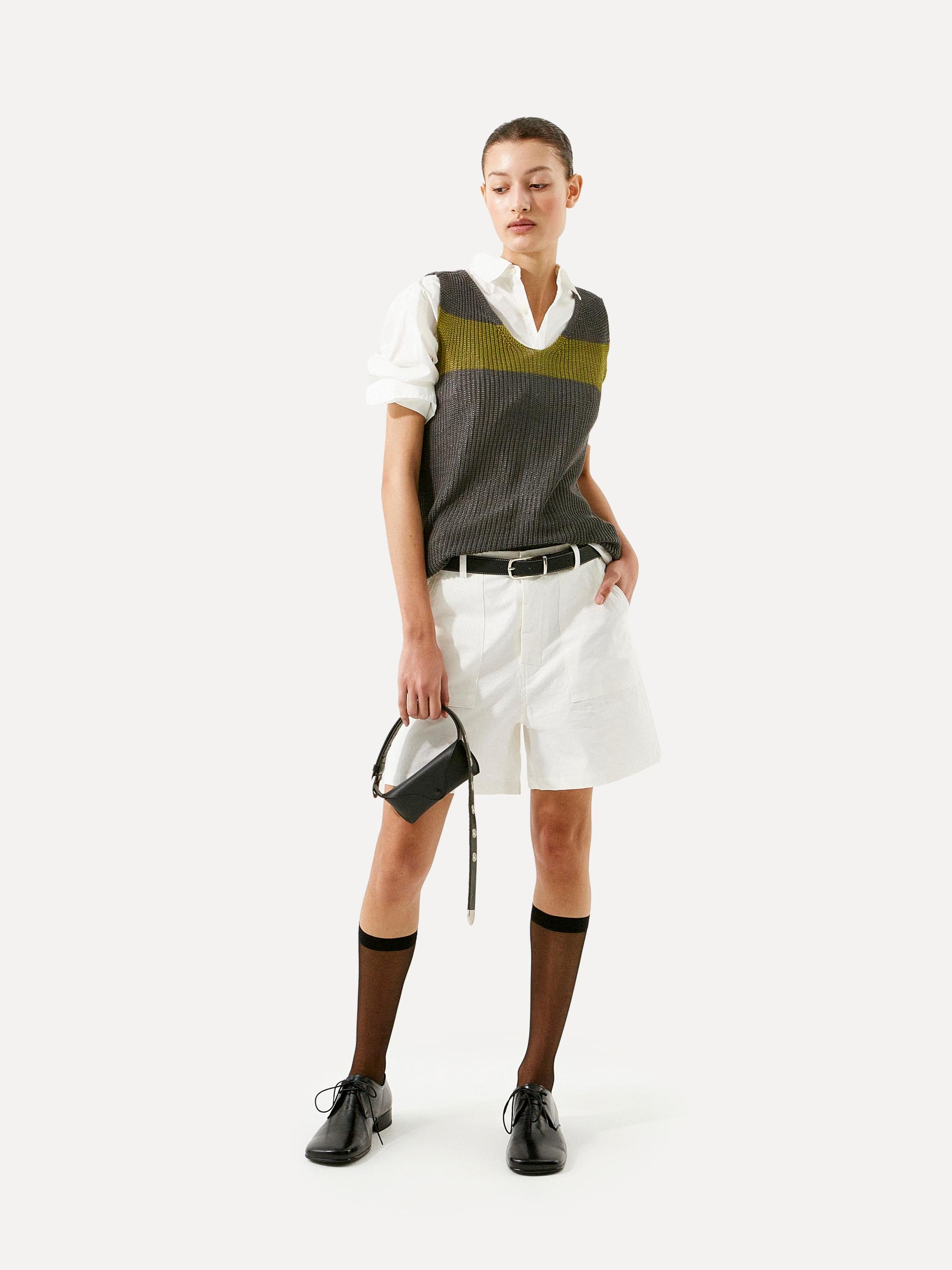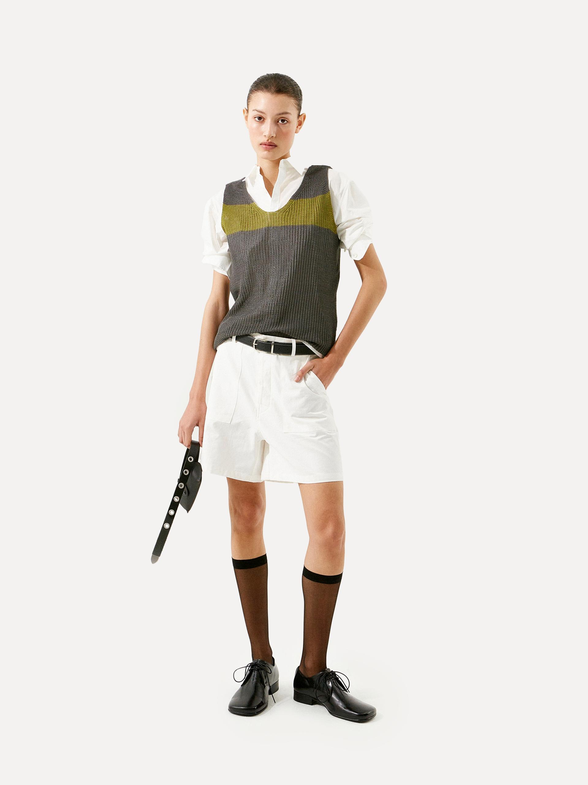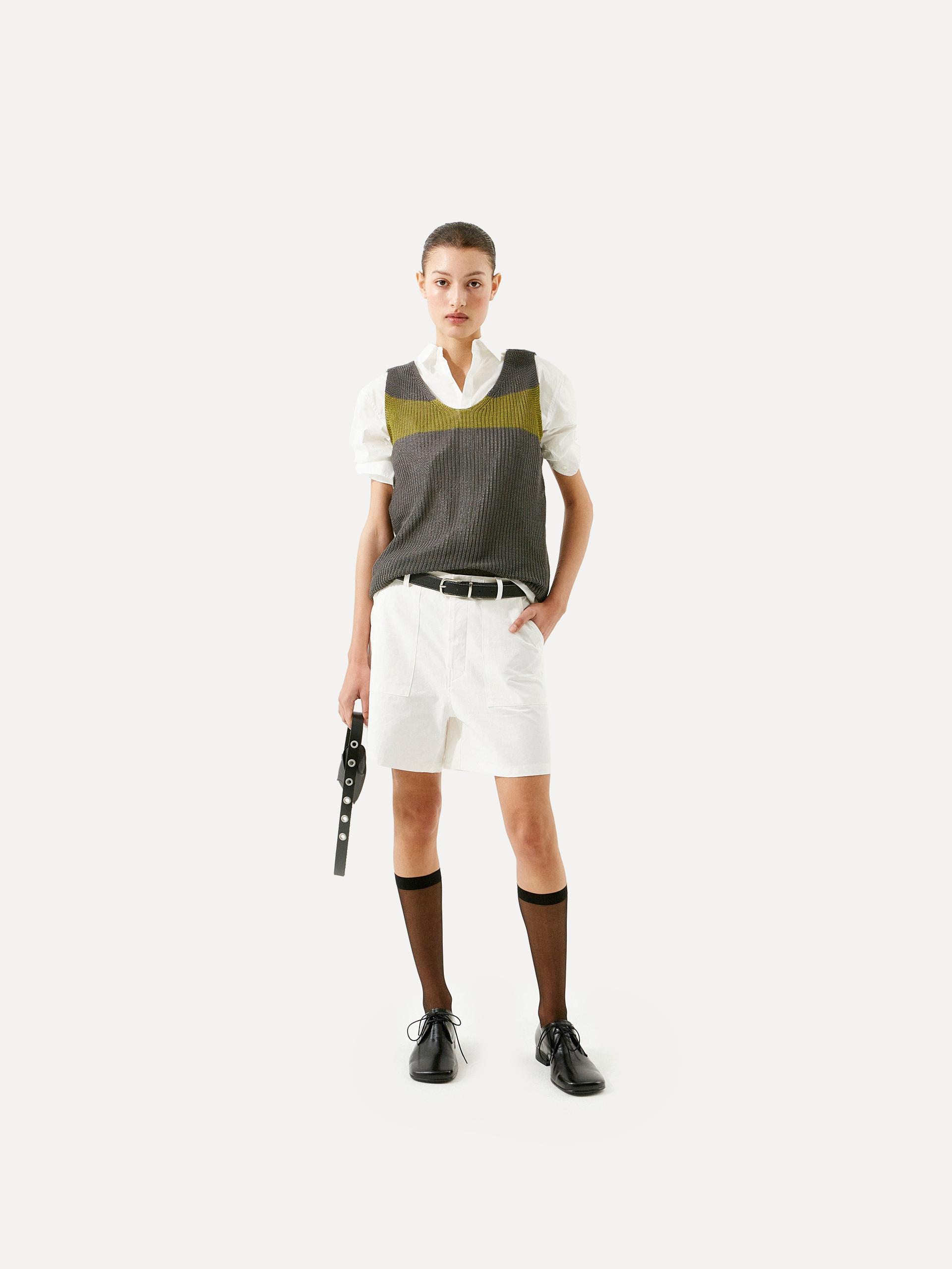 Cotton 100 고밀도로 짜여 견고하면서도 힘 있는 코튼 소재로 탄탄한 조직감이 형태를 잘 잡아주어 실루엣을 안정적으로 유지해 줍니다. CARE · 드라이클리닝을 권장합니다. |