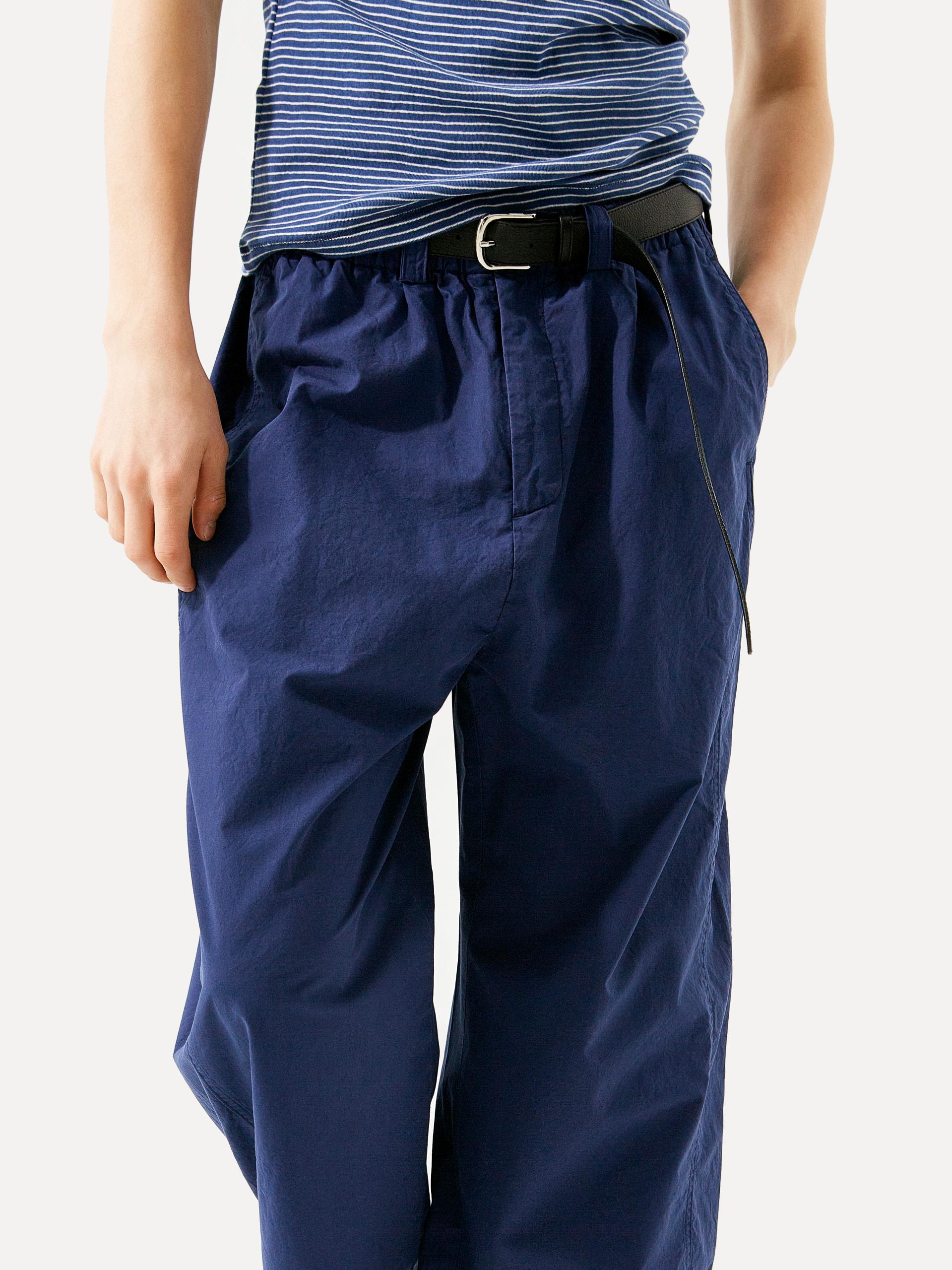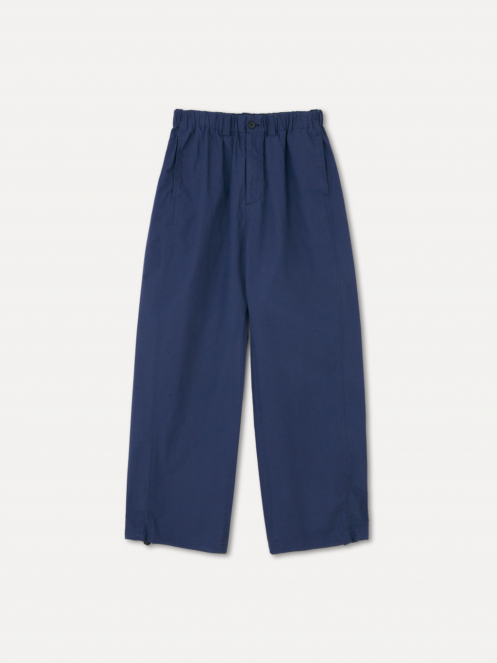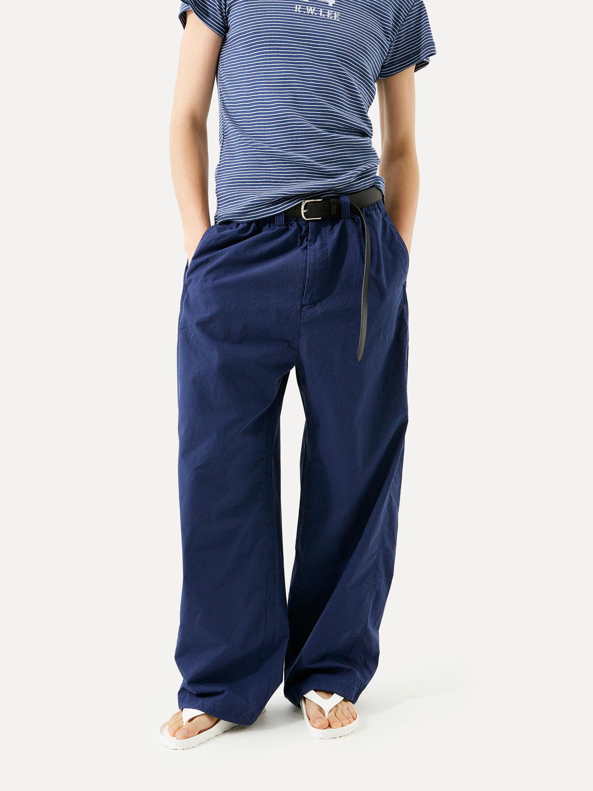 와이드 핏 지퍼 플라이 볼드한 벨드 루프 엘라스틱 허리 밴드 뒷면 아웃 패치 포켓 밑단 드로우 스트링 디테일 실루엣의 변주가 가능한 구조적 디테일이 돋보이는 와이드 핏 코튼 팬츠입니다. 드라이한 텍스쳐의 코튼 소재로 고시감이 있어 핏을 깔끔하게 잡아주며, 허리의 이너 밴딩으로 편안한 착용감을 더했습니다. 밑단 안쪽에 스트링이 내장되어 있어 스타일에 따라 조거 형태로도 연출이 가능하며, 와이드와 테이퍼드 두 가지 실루엣을 자유롭게 넘나들 수 있는 유연한 구조가 특징입니다. |