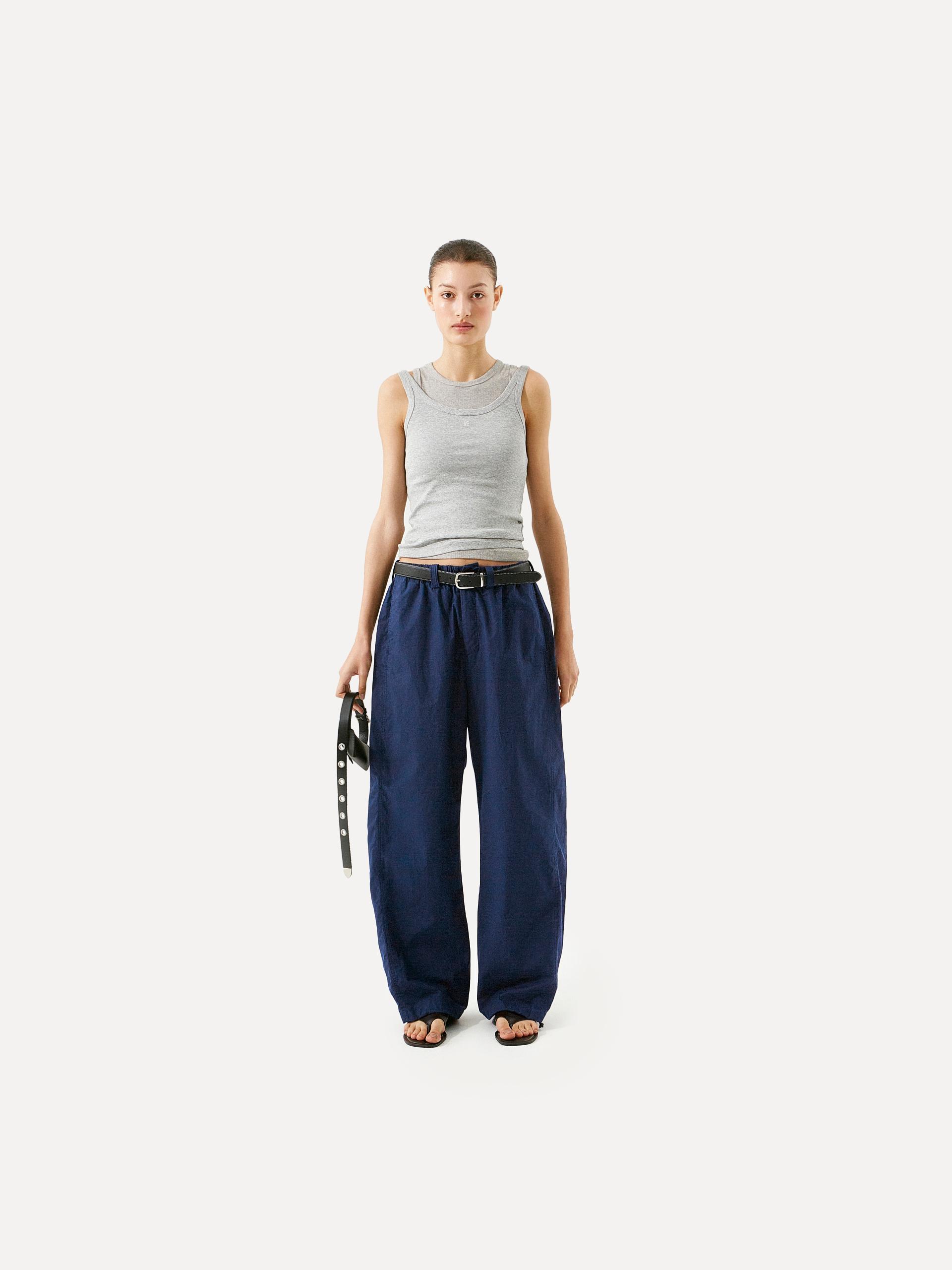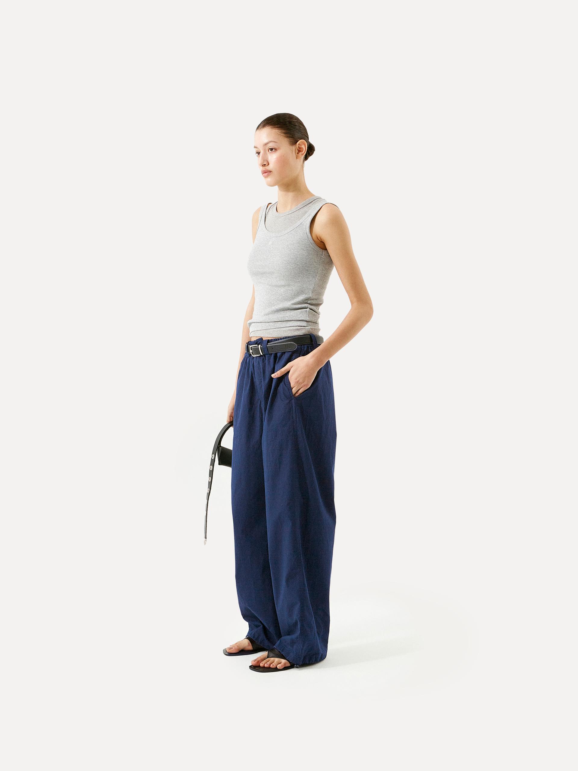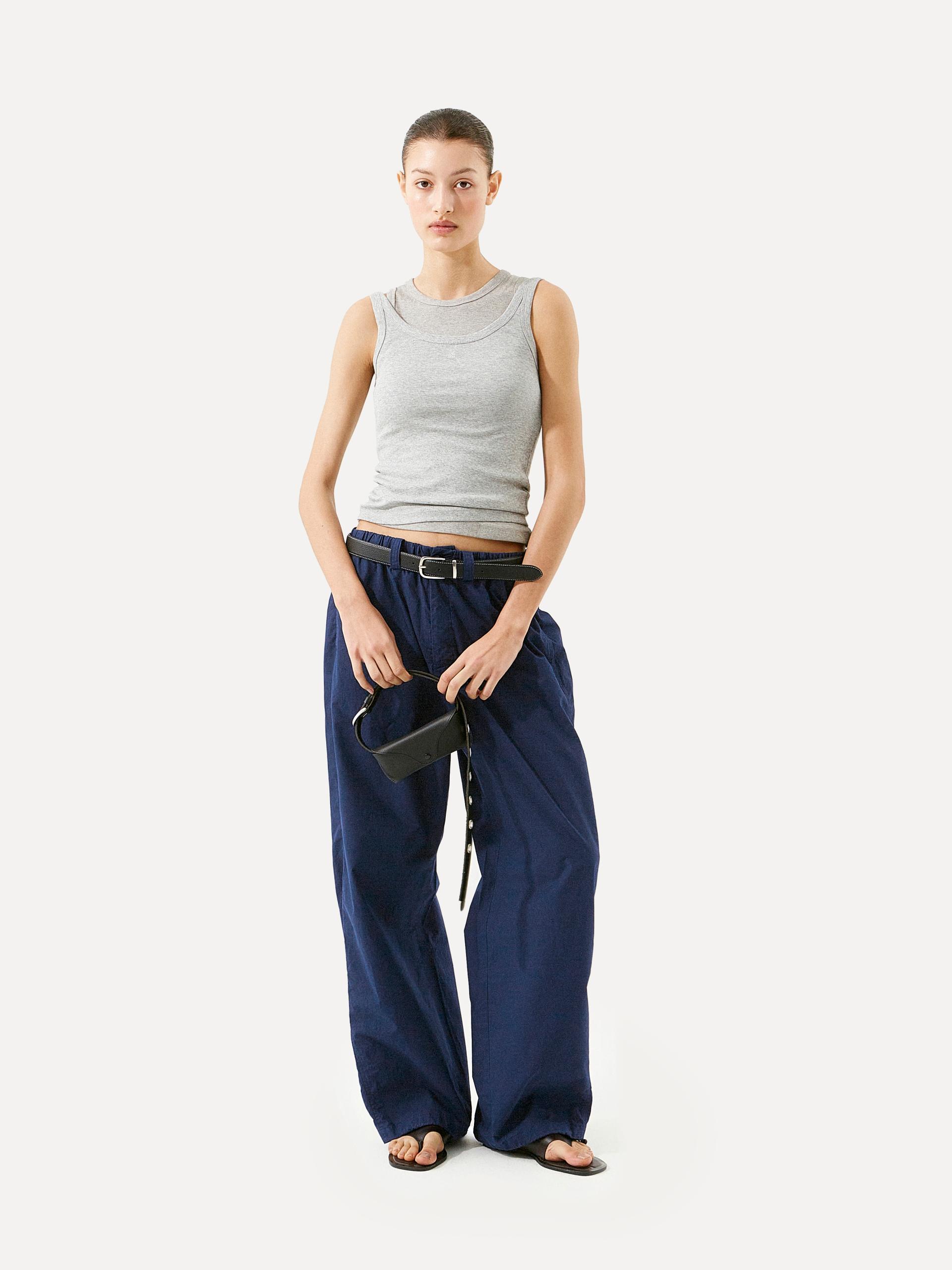 와이드 핏 지퍼 플라이 볼드한 벨드 루프 엘라스틱 허리 밴드 뒷면 아웃 패치 포켓 밑단 드로우 스트링 디테일 실루엣의 변주가 가능한 구조적 디테일이 돋보이는 와이드 핏 코튼 팬츠입니다. 드라이한 텍스쳐의 코튼 소재로 고시감이 있어 핏을 깔끔하게 잡아주며, 허리의 이너 밴딩으로 편안한 착용감을 더했습니다. 밑단 안쪽에 스트링이 내장되어 있어 스타일에 따라 조거 형태로도 연출이 가능하며, 와이드와 테이퍼드 두 가지 실루엣을 자유롭게 넘나들 수 있는 유연한 구조가 특징입니다. |