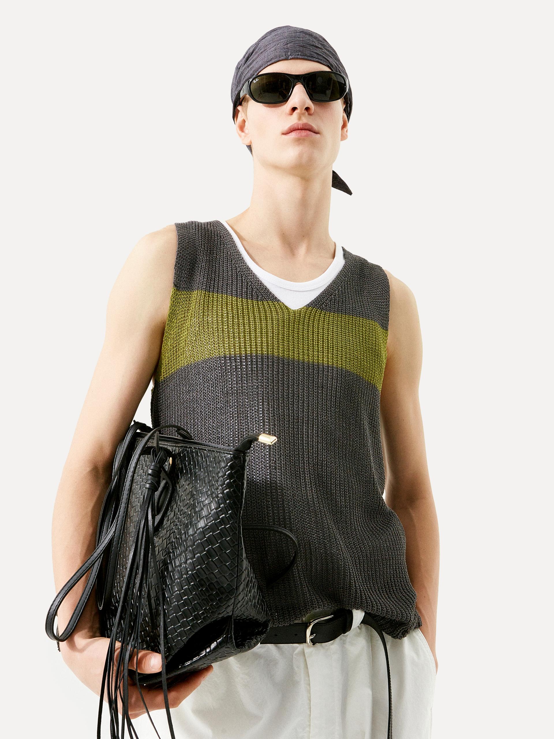 Cotton 100 밀도감 있는 코튼 소재이며, 매트하고 드라이한 표면과 적당한 고시감을 지녀 형태감이 잘 살아나는 것이 특징입니다. CARE · 드라이클리닝을 권장합니다. |