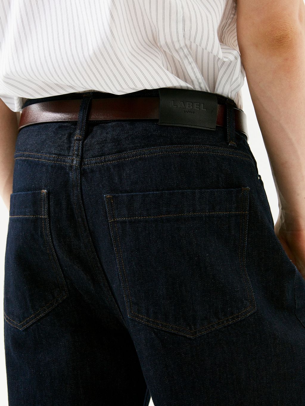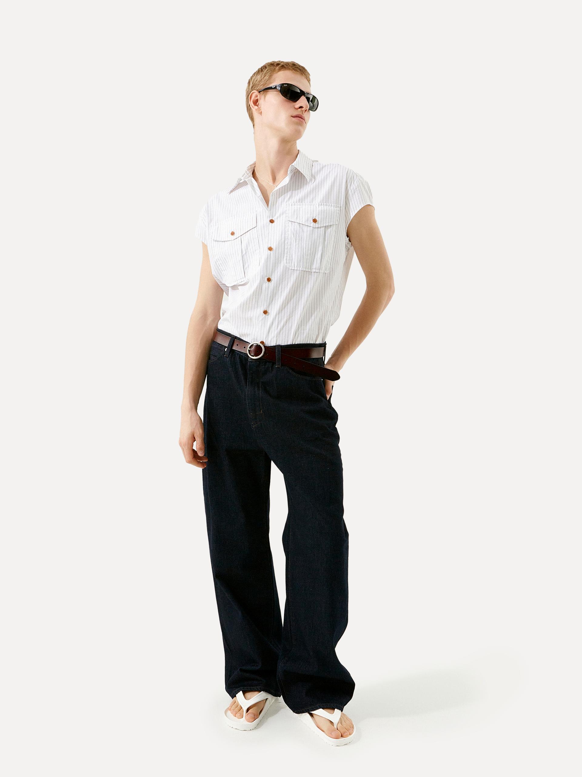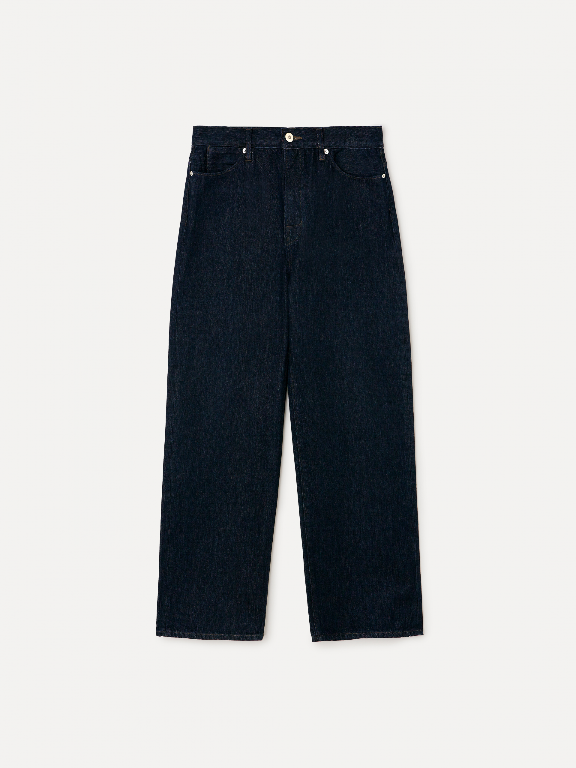 와이드 핏 LABEL 로고가 각인된 고정식 켄톤 & 니켈 리벳 베지터블 소가죽 패치 중앙지퍼 안쪽 시접 바인딩 처리 30수 트윌 코튼 라이닝 YKK 社의 지퍼 사용 코아사 봉사 입체적인 곡선 실루엣과 볼륨감이 매력적인 와이드 핏 진입니다. 허리에서 허벅지까지 부드럽게 커브드진 라인이 형성되며, 아래로는 여유 있게 떨어지는 와이드 핏으로 착용됩니다. 데님 고유의 감성을 잘 느낄 수 있는 깊이감 있는 인디고 컬러는 구조감 있는 실루엣에 매력을 더해줍니다. |