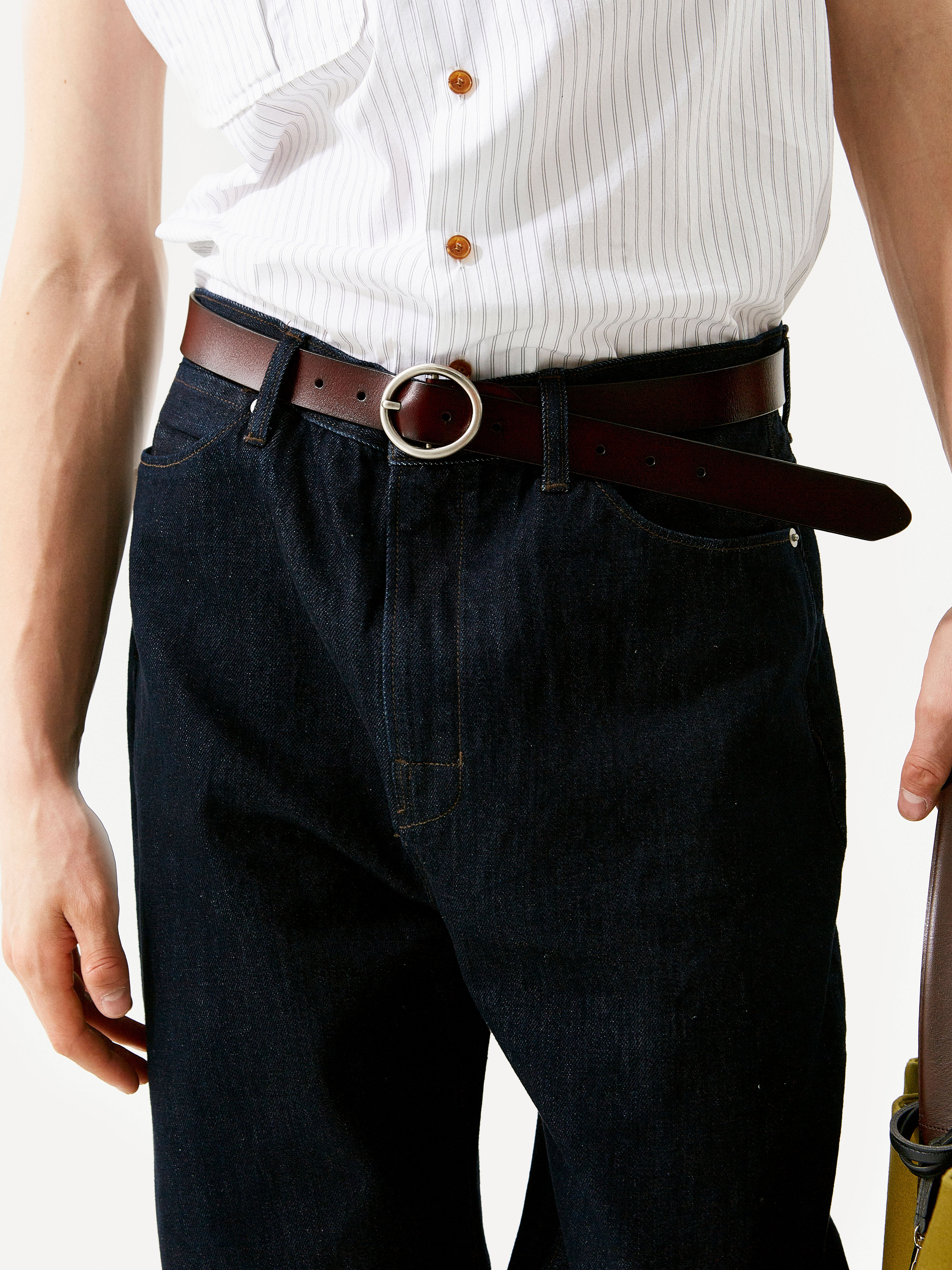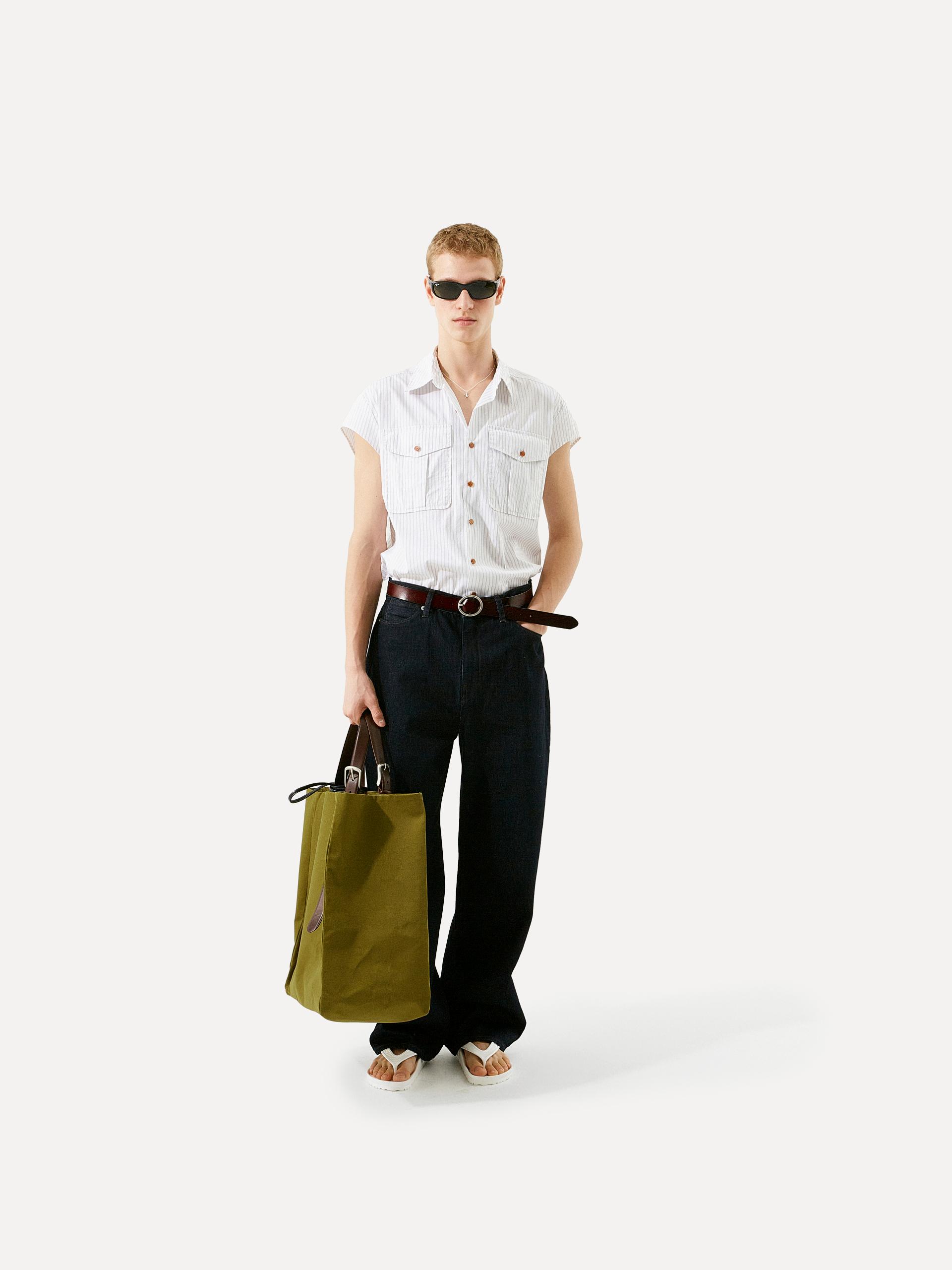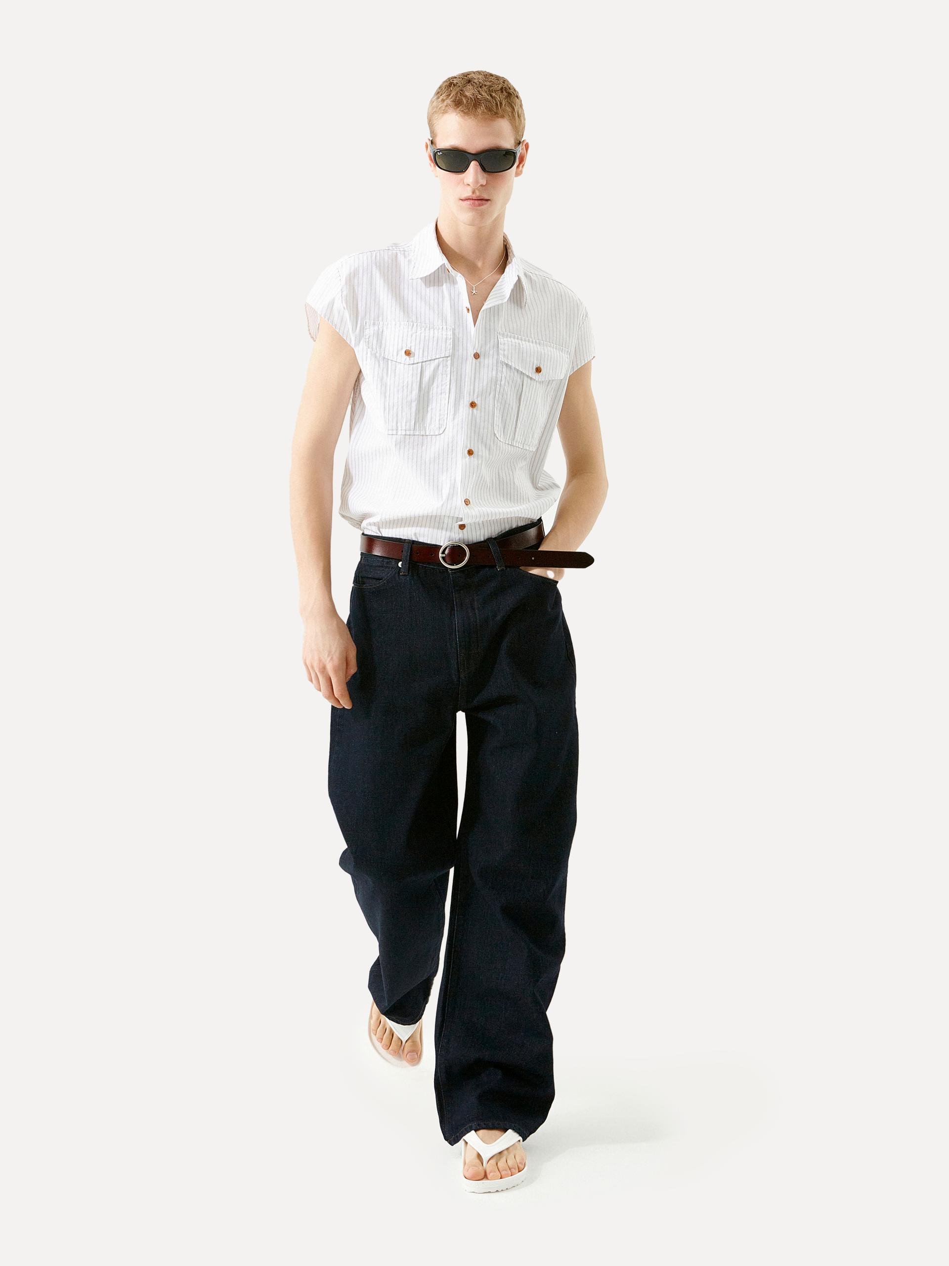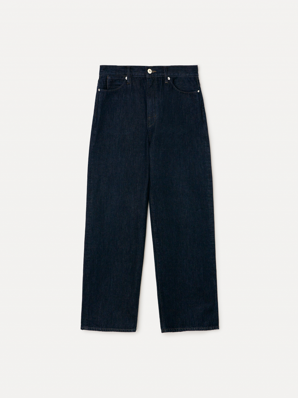 와이드 핏 LABEL 로고가 각인된 고정식 켄톤 & 니켈 리벳 베지터블 소가죽 패치 중앙지퍼 안쪽 시접 바인딩 처리 30수 트윌 코튼 라이닝 YKK 社의 지퍼 사용 코아사 봉사 입체적인 곡선 실루엣과 볼륨감이 매력적인 와이드 핏 진입니다. 허리에서 허벅지까지 부드럽게 커브드진 라인이 형성되며, 아래로는 여유 있게 떨어지는 와이드 핏으로 착용됩니다. 데님 고유의 감성을 잘 느낄 수 있는 깊이감 있는 인디고 컬러는 구조감 있는 실루엣에 매력을 더해줍니다. |