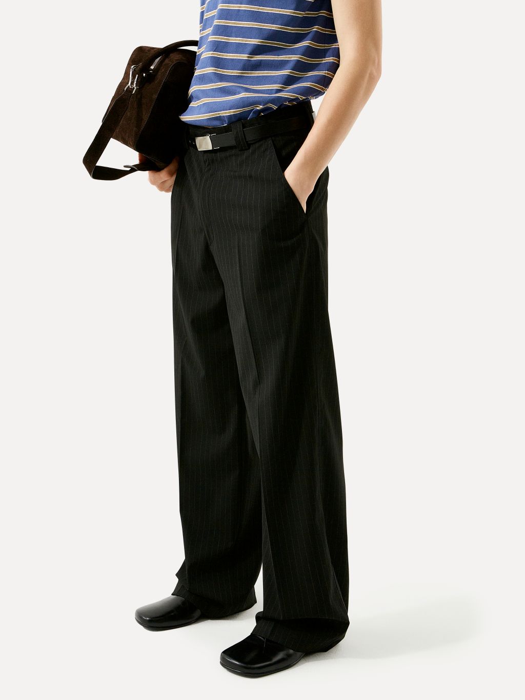 Polyester 80 rayon 18 span 2 유연하면서도 적당한 고시감이 느껴지는 원단으로, 핀스트라이프 패턴이 더해져 세련된 무드를 자아냅니다.CARE · 드라이클리닝을 권장합니다. |