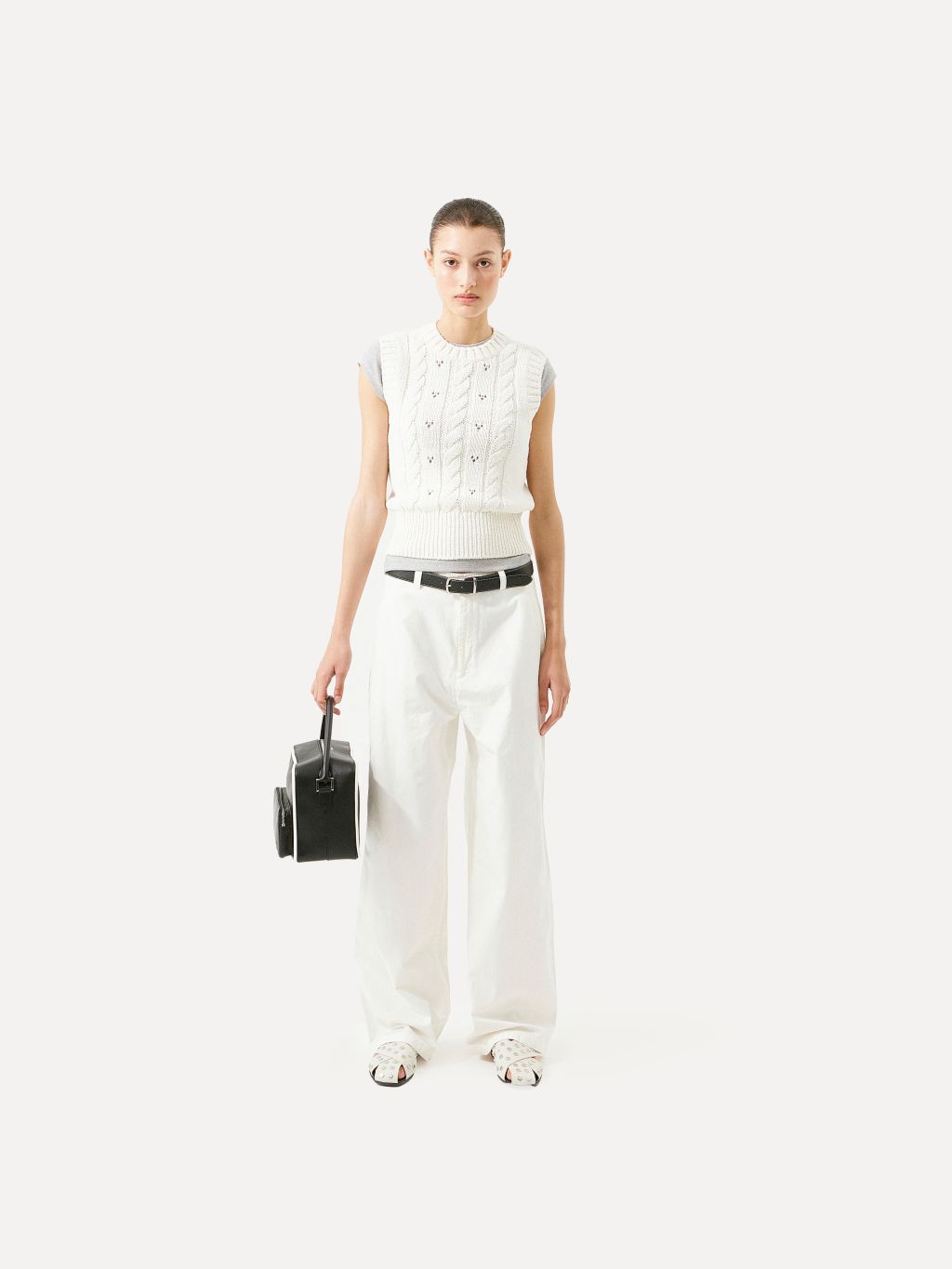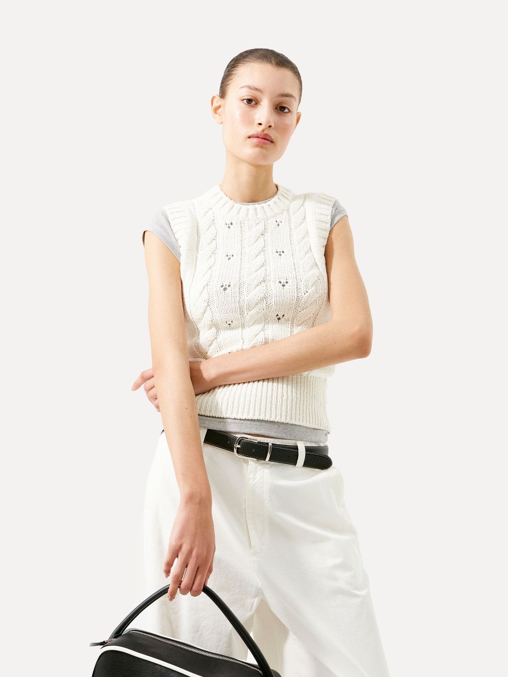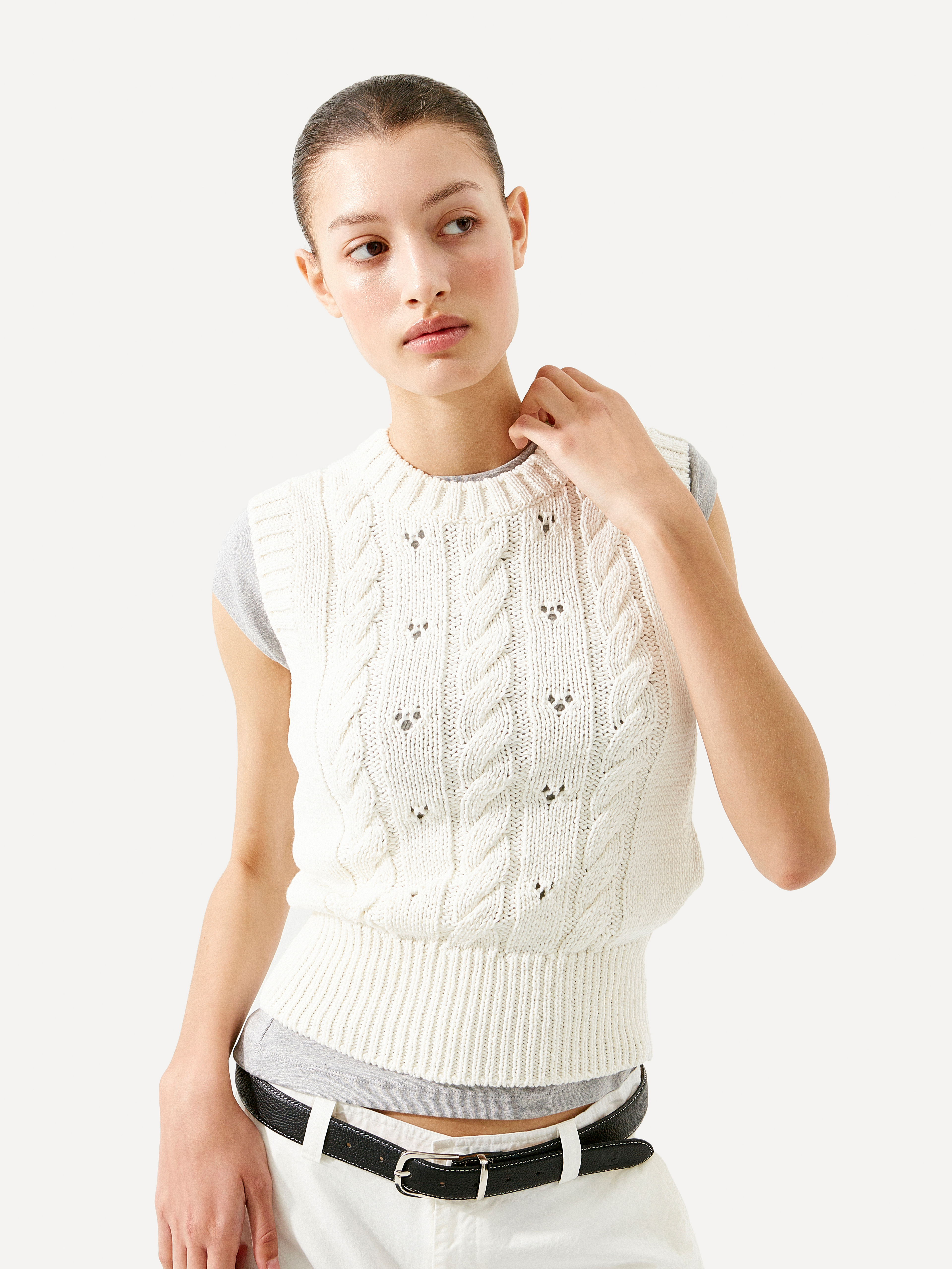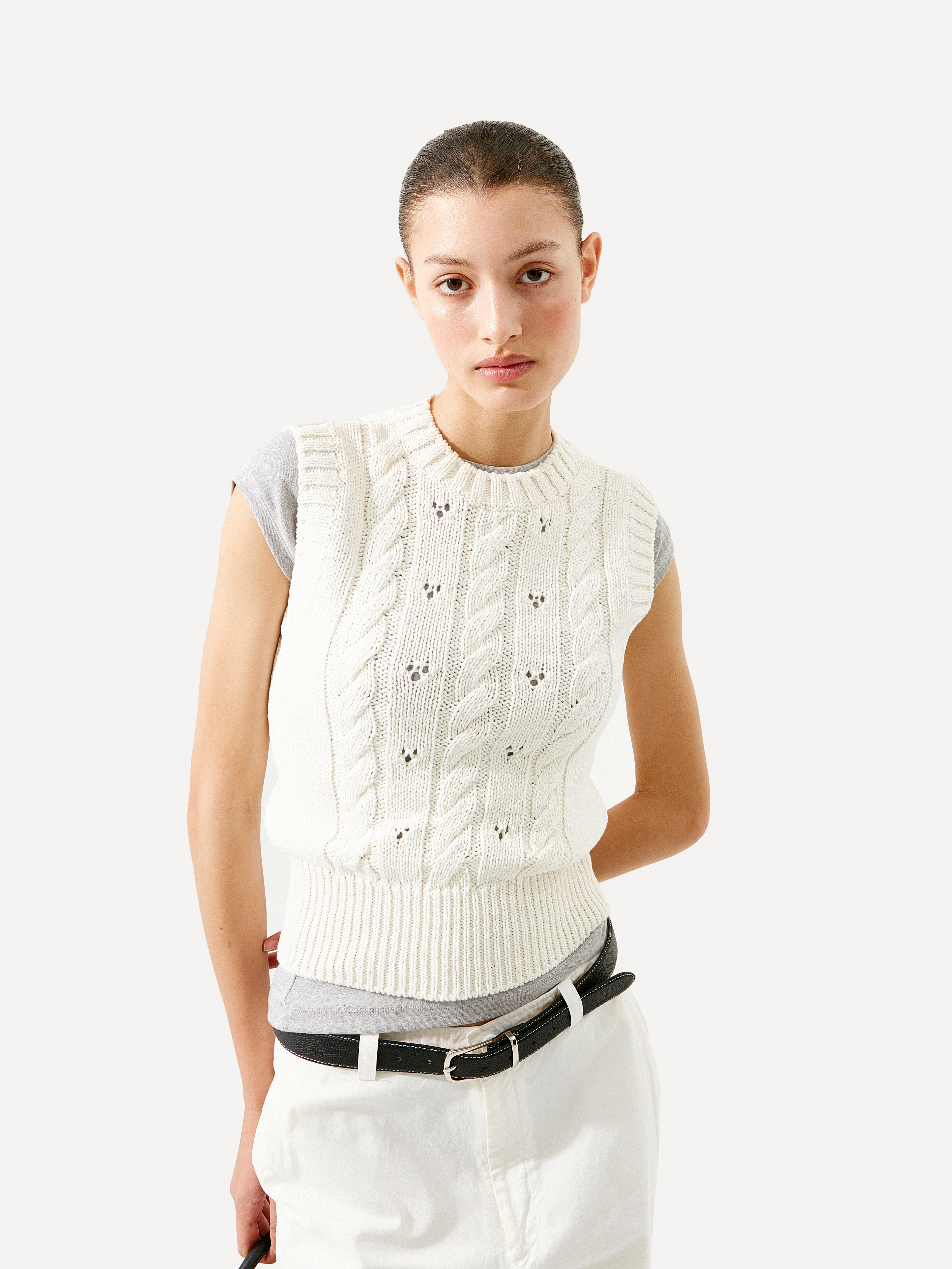 Vova cable knit vest white