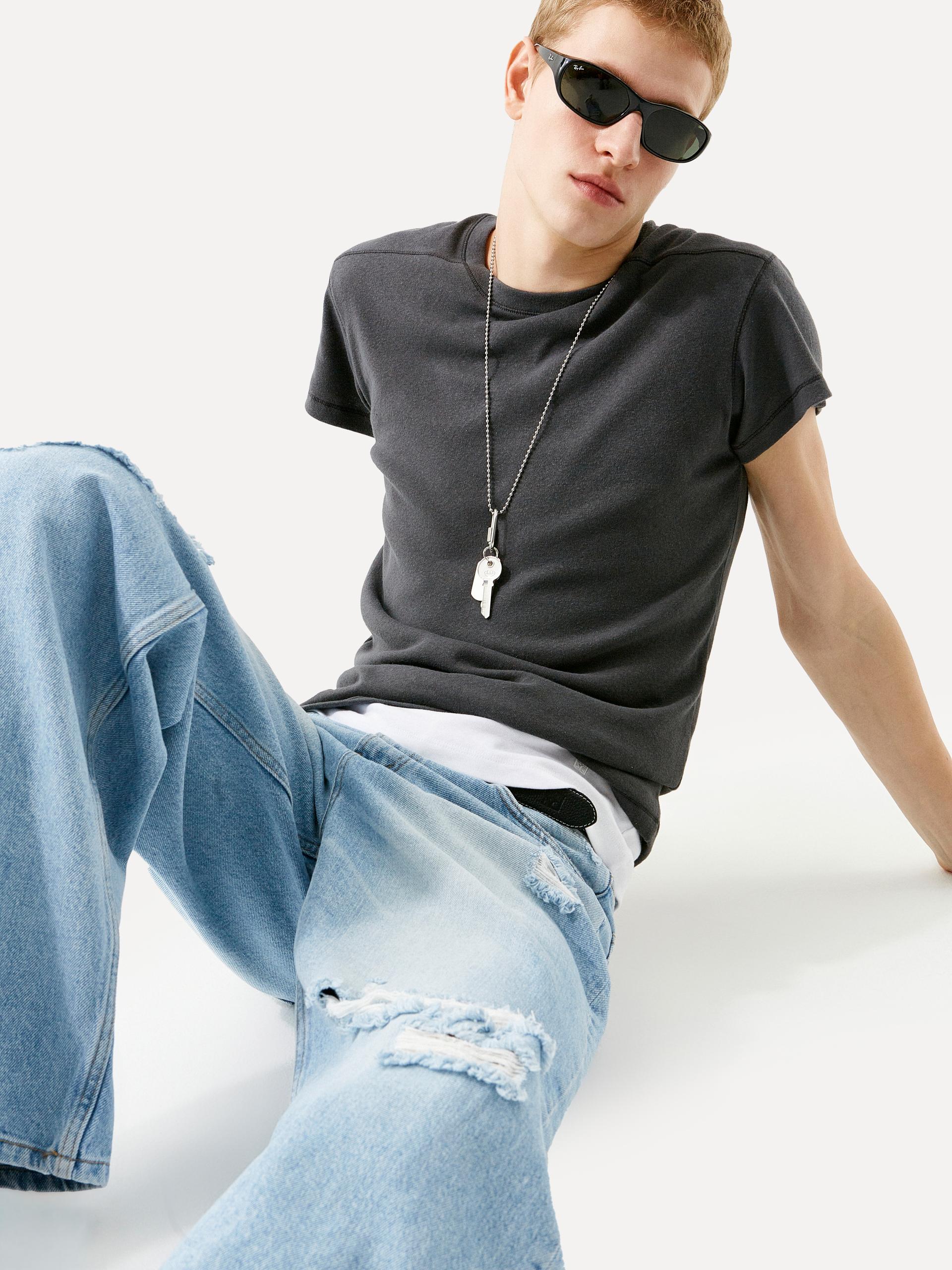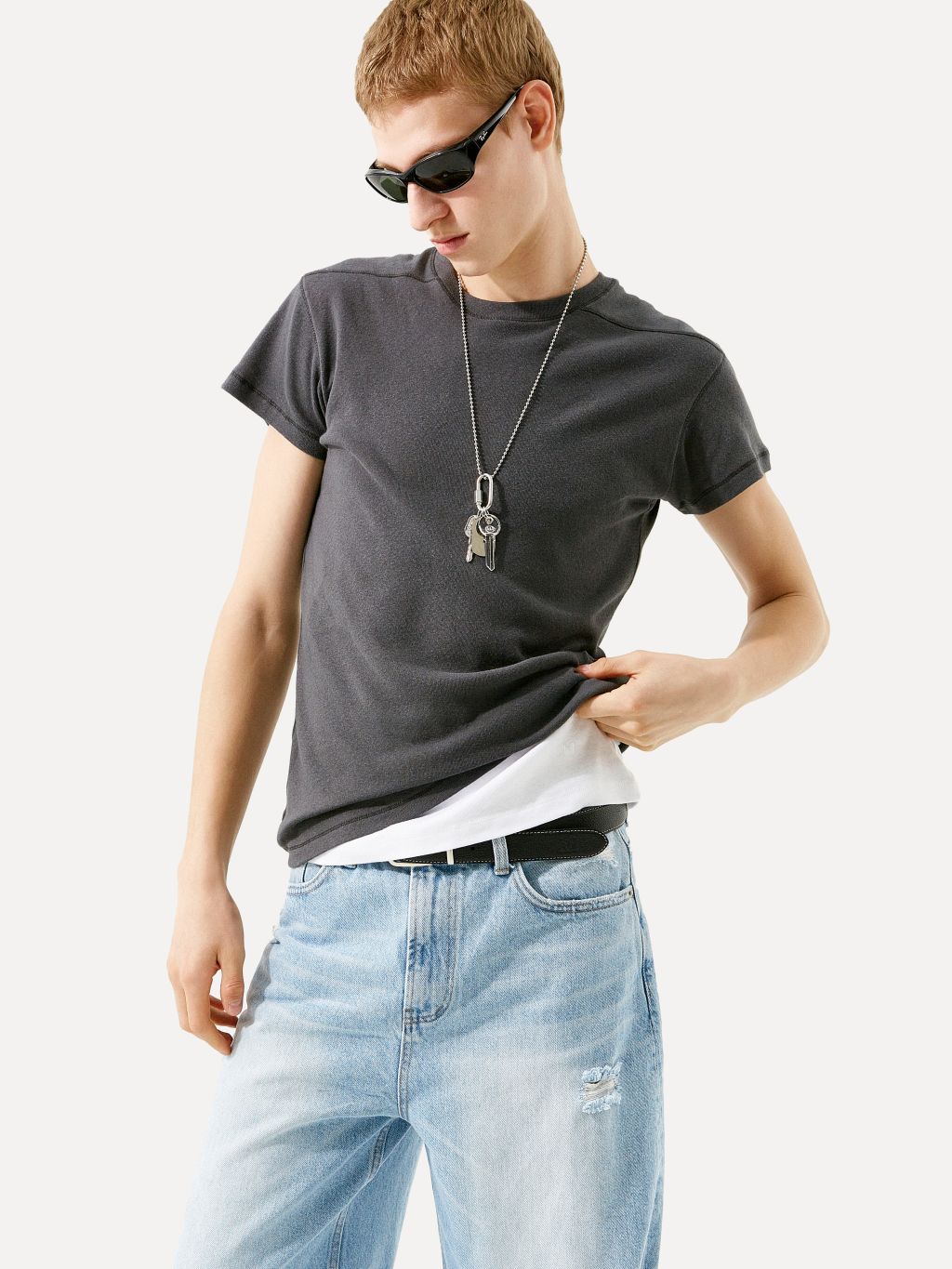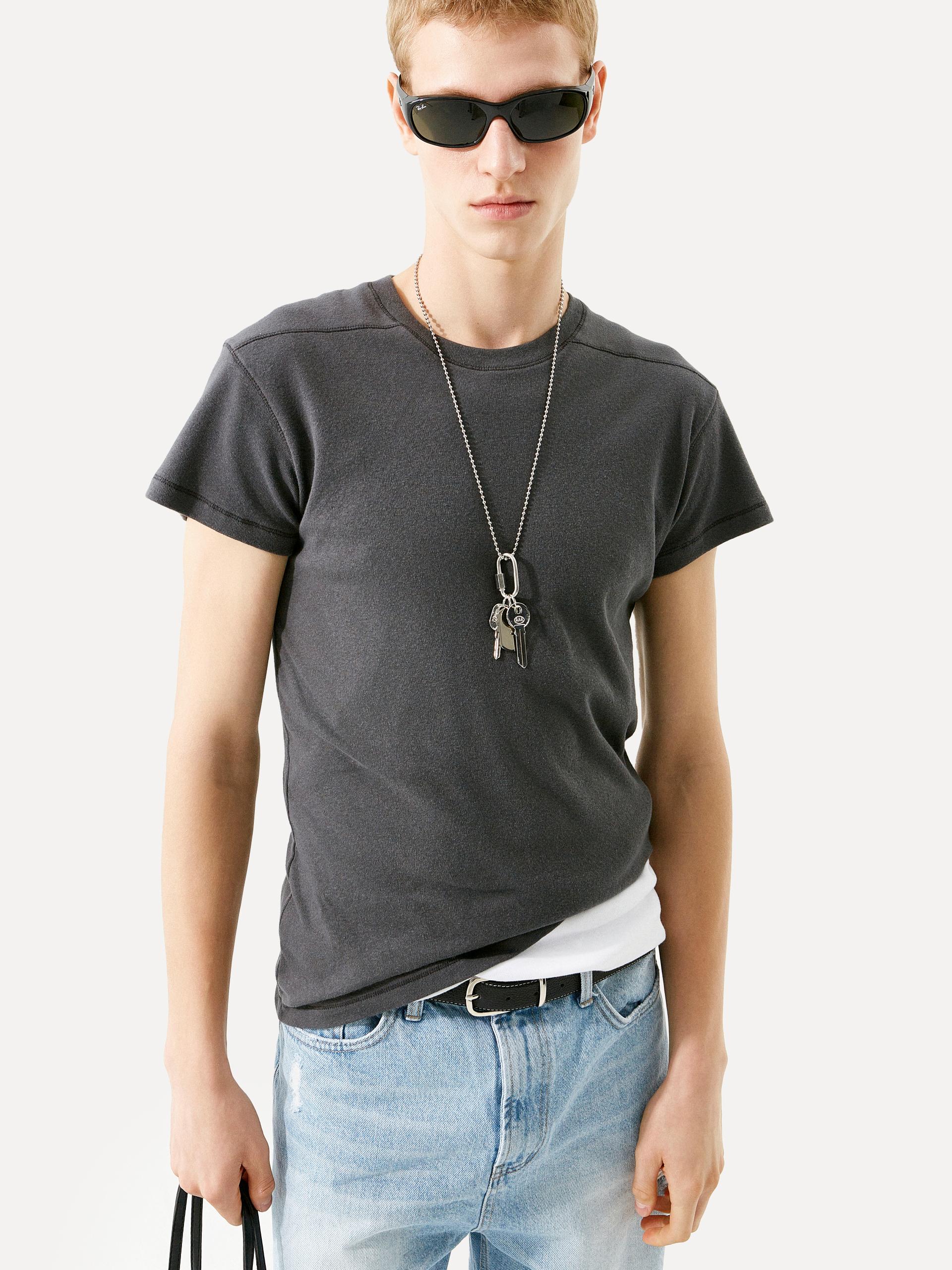 루즈핏 크루넥 탑 자연스럽게 길들여진 듯한 실루엣 요크 디테일 더블 스티치 처리 프린트 라벨이 적용된 뒷 네크 마감 · 네크 라벨은 실크스크린 프린팅 방식으로 수작업되어, 원단 마다 프린트의 위치나 농도에 미세한 차이가 발생할 수 있습니다. 이는 공정 특성으로 인한 자연스러운 현상으로 불량 사유에 해당되지 않습니다. 몸에 맞춰진 듯 자연스럽고 유연한 실루엣이 매력적인 코튼 탑입니다. 탄력있는 텐션감의 소재로 부드럽고 안정적인 착용감을 느끼실 수 있습니다. 살짝 드롭된 어깨선과 짧은 소매, 앞쪽으로 이어지는 요크 디테일이 조화를 이루는 빈티지한 감각의 티셔츠 입니다. 여러 번 착용하고 세탁하여 몸에 맞게 길들여진 듯한 편안한 멋이 느껴지는 아이템 입니다. |