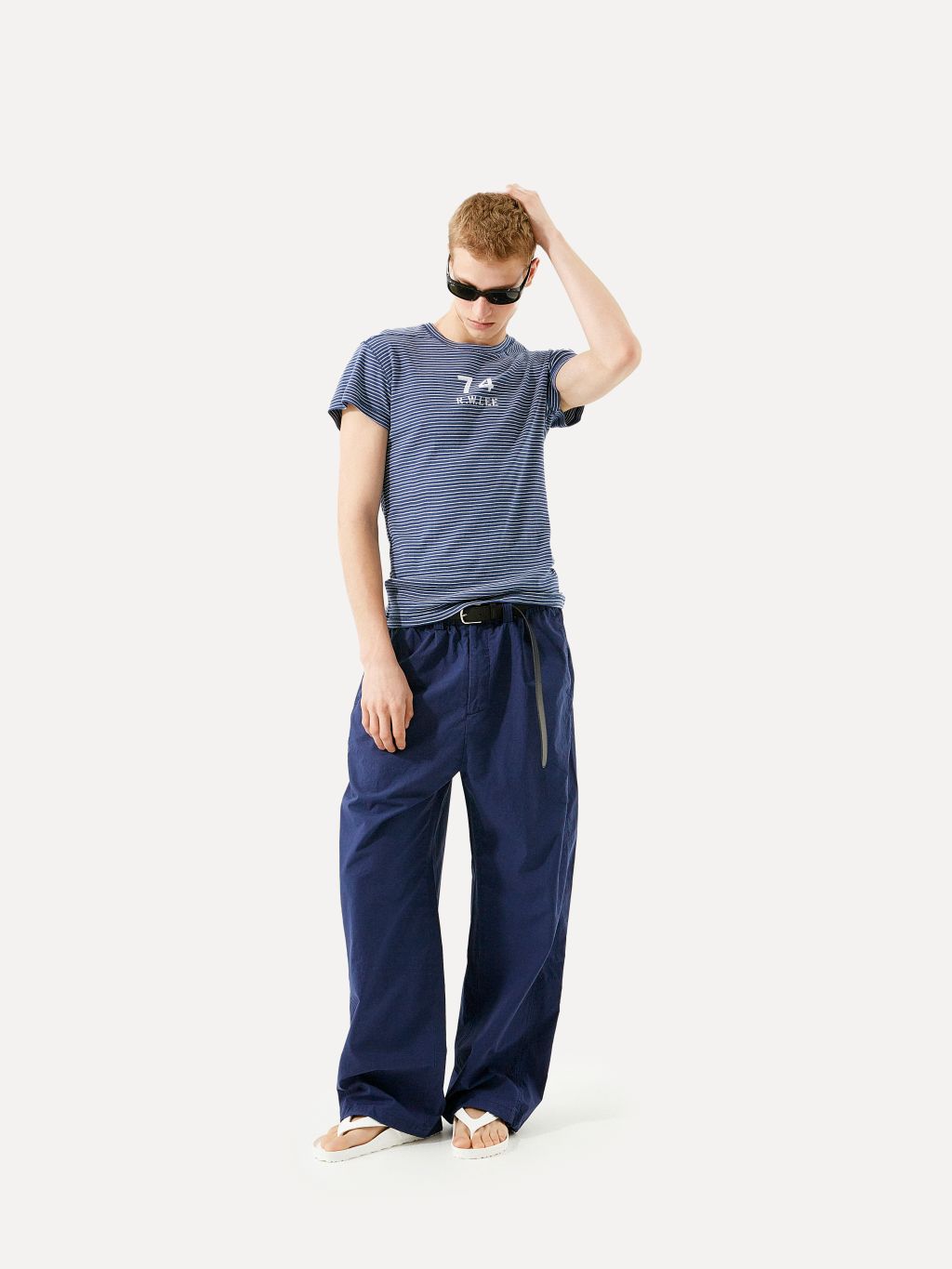 루즈핏 크루넥 탑 자연스럽게 길들여진 듯한 실루엣 전면 프린트 디테일 요크 디테일 더블 스티치 처리 프린트 라벨이 적용된 뒷 네크 마감 · 네크 라벨은 실크스크린 프린팅 방식으로 수작업되어, 원단 마다 프린트의 위치나 농도에 미세한 차이가 발생할 수 있습니다. 이는 공정 특성으로 인한 자연스러운 현상으로 불량 사유에 해당되지 않습니다. 몸에 맞춰진 듯 자연스럽고 유연한 실루엣이 매력적인 코튼 탑입니다. 탄력있는 텐션감의 소재로 부드럽고 안정적인 착용감을 느끼실 수 있습니다. 살짝 드롭된 어깨선과 짧은 소매, 앞쪽으로 이어지는 요크 디테일이 조화를 이루는 빈티지한 감각의 티셔츠 입니다. 여러 번 착용하고 세탁하여 몸에 맞게 길들여진 듯한 편안한 멋이 느껴지는 아이템 입니다. |