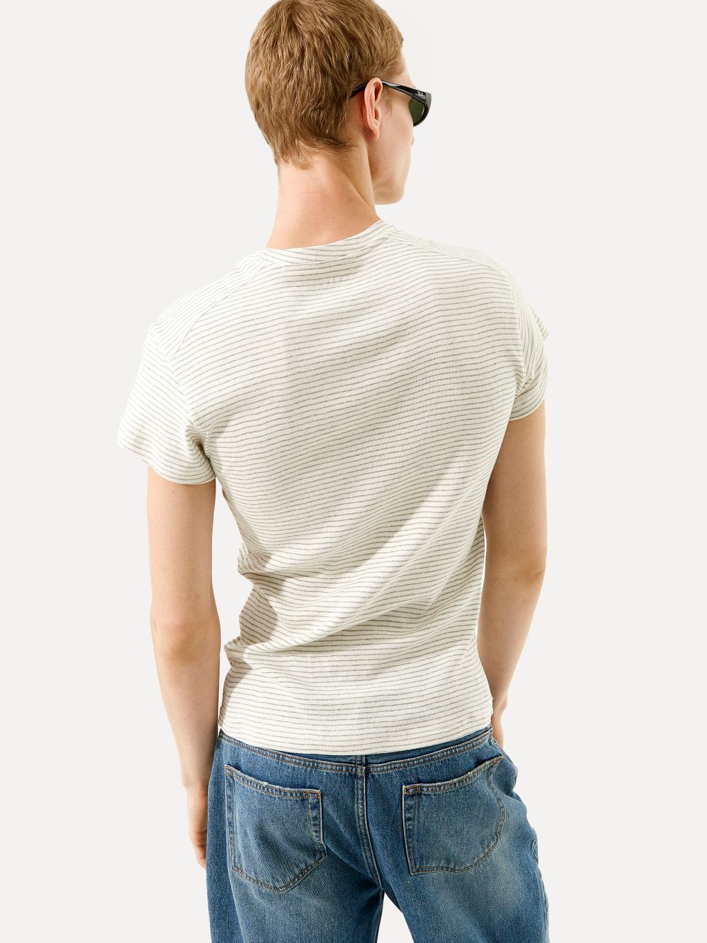 루즈핏 크루넥 탑 자연스럽게 길들여진 듯한 실루엣 전면 프린트 디테일 요크 디테일 더블 스티치 처리 프린트 라벨이 적용된 뒷 네크 마감 · 네크 라벨은 실크스크린 프린팅 방식으로 수작업되어, 원단 마다 프린트의 위치나 농도에 미세한 차이가 발생할 수 있습니다. 이는 공정 특성으로 인한 자연스러운 현상으로 불량 사유에 해당되지 않습니다. 몸에 맞춰진 듯 자연스럽고 유연한 실루엣이 매력적인 코튼 탑입니다. 탄력있는 텐션감의 소재로 부드럽고 안정적인 착용감을 느끼실 수 있습니다. 살짝 드롭된 어깨선과 짧은 소매, 앞쪽으로 이어지는 요크 디테일이 조화를 이루는 빈티지한 감각의 티셔츠 입니다. 여러 번 착용하고 세탁하여 몸에 맞게 길들여진 듯한 편안한 멋이 느껴지는 아이템 입니다. |