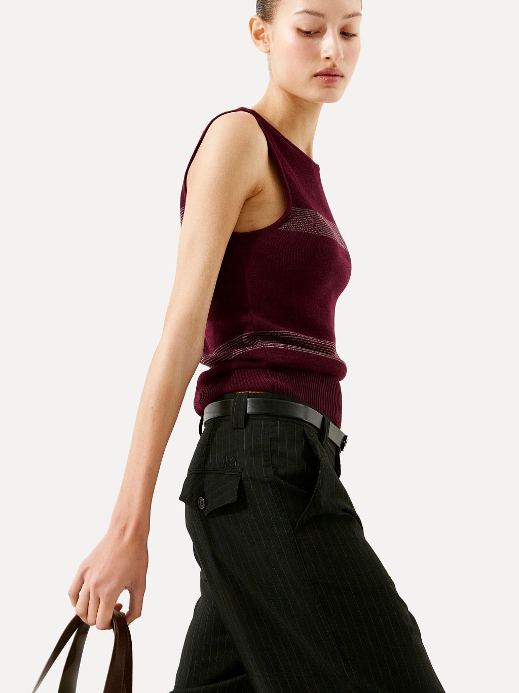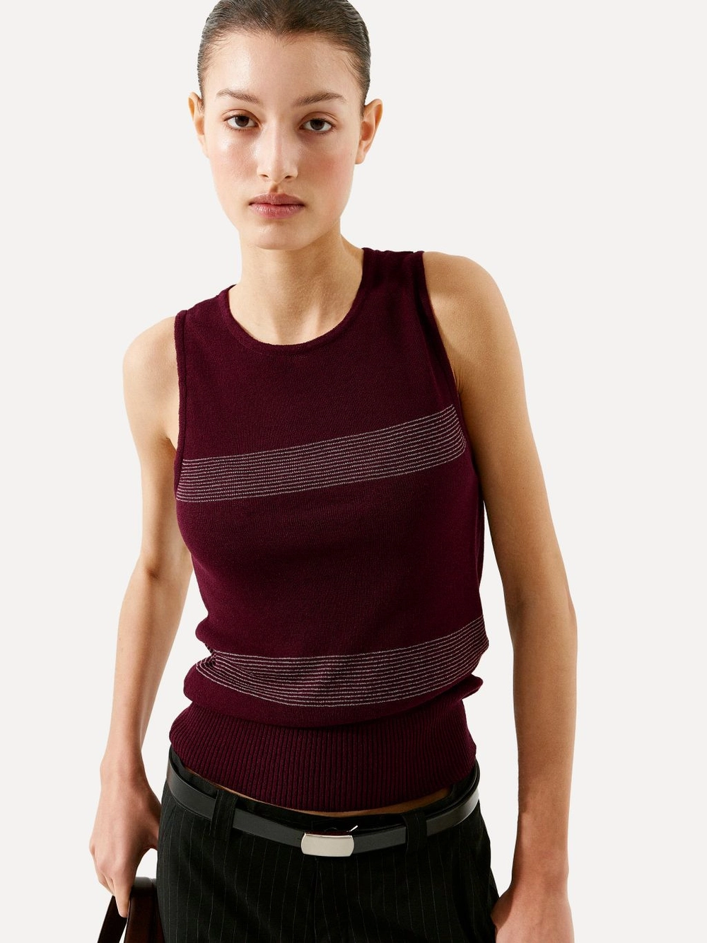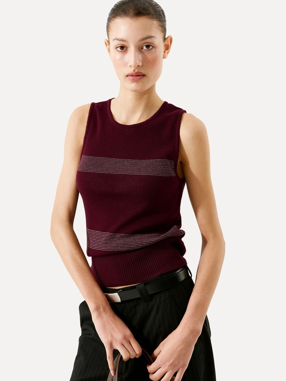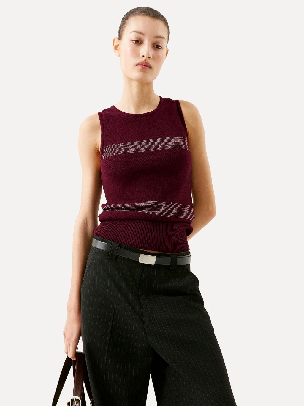 Greer pinstripe knit vest burgundy