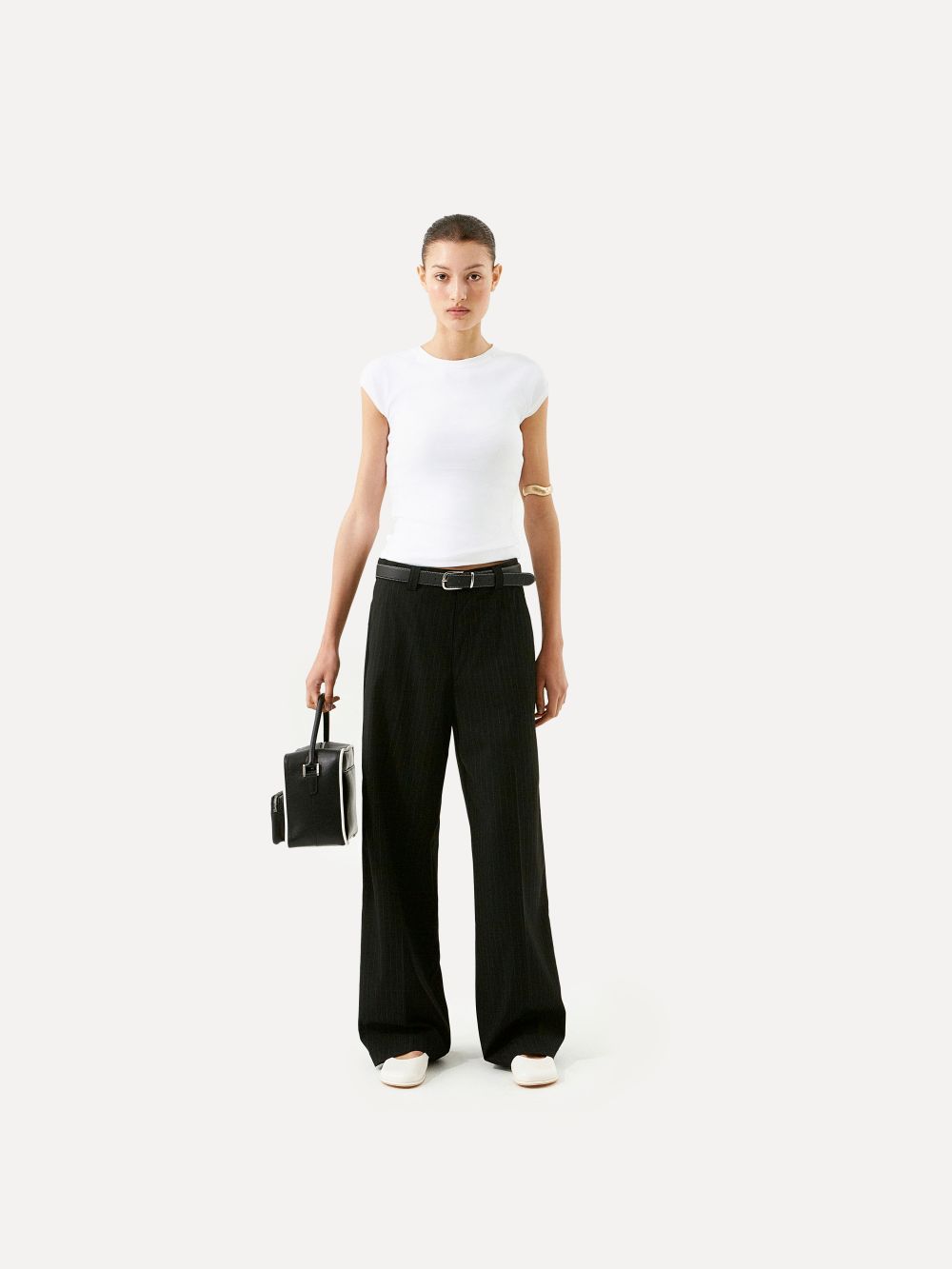 슬림 핏 래글런 캡 슬리브 cap sleeve 착용시 왼쪽 하단 톤온톤 자수 디테일 변형 방지를 위한 안쪽 네크라인 덧댐 테이프 견고한 내구성을 위한 조밀한 스티칭 프린트 라벨이 적용된 뒷 네크 마감 · 네크 라벨은 실크스크린 프린팅 방식으로 수작업되어, 원단 마다 프린트의 위치나 농도에 미세한 차이가 발생할 수 있습니다. 이는 공정 특성으로 인한 자연스러운 현상으로 불량 사유에 해당되지 않습니다. 슬릭한 무드로 연출되는 탄탄한 내구성의 래글런 캡 슬리브 탑 입니다. 탄력 있는 소재를 사용해 몸에 밀착되지 않으면서도 안정감 있는 슬림 핏으로 착용 됩니다. 짧게 떨어지는 캡 슬리브와 래글런 절개가 조화를 이루며, 자연스럽게 슬림한 바디 라인을 연출해 줍니다. 좌측 하단에는 은은한 톤온톤 자수를 더해 포인트를 주었으며, 안쪽 네크라인에는 변형을 방지하는 테이핑 디테일을 더해 완성도를 높였습니다. 하의에 넣거나 꺼내 입기 좋은 밸런스의 기장으로 다양한 스타일링에 활용하기 좋은 아이템 입니다. |