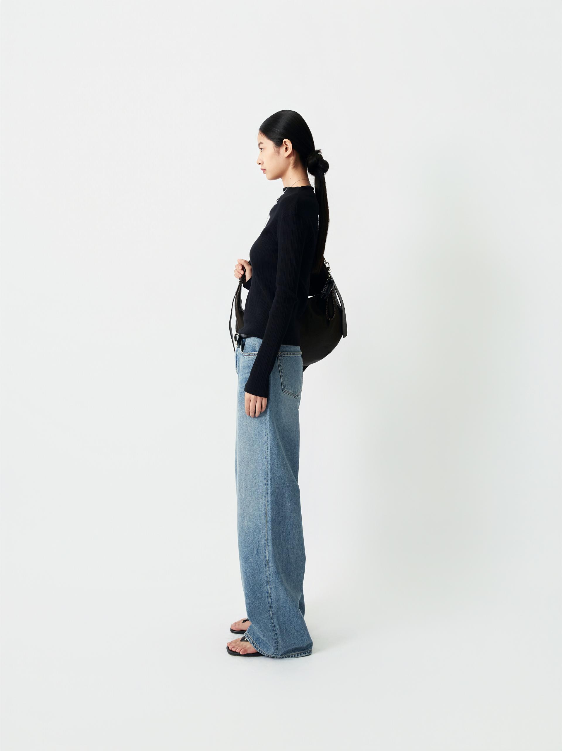 LABEL 로고가 각인된 고정식 켄톤 LB 엠블럼 베지터블 소가죽 엠보 패치 시계주머니에 위치한 LB 엠블럼 음각된 리벳 중앙지퍼 안쪽 시접 바인딩 처리 30수 트윌 코튼 라이닝 YKK 社의 지퍼 사용 코아사 봉사 부드러운 블루톤의 워싱 컬러가 매력적인 와이드 핏 진 입니다. 편안한 착용감과 균형감있는 실루엣을 우선으로 고려하여 패턴 개발된 와이드 핏 진입니다. 발등에 자연스럽게 주름지는 기장감으로 제작되어 착용시 롱한 프로포션으로 연출해줍니다. 와이드한 핏을 잘 구현해줄 수 있는 아메리칸 얀(링사)이 사용된 데님을 사용하였으며, 오래도록 착용하여도 변형이 적은 우수한 내구성을 자랑합니다. 실버톤의 하드웨어와 베지터블 소가죽 엠보 패치가 가미된 완성도 높은 데님으로, 옷장을 구성하는 에센셜한 아이템이 되어줄 제품입니다. |
