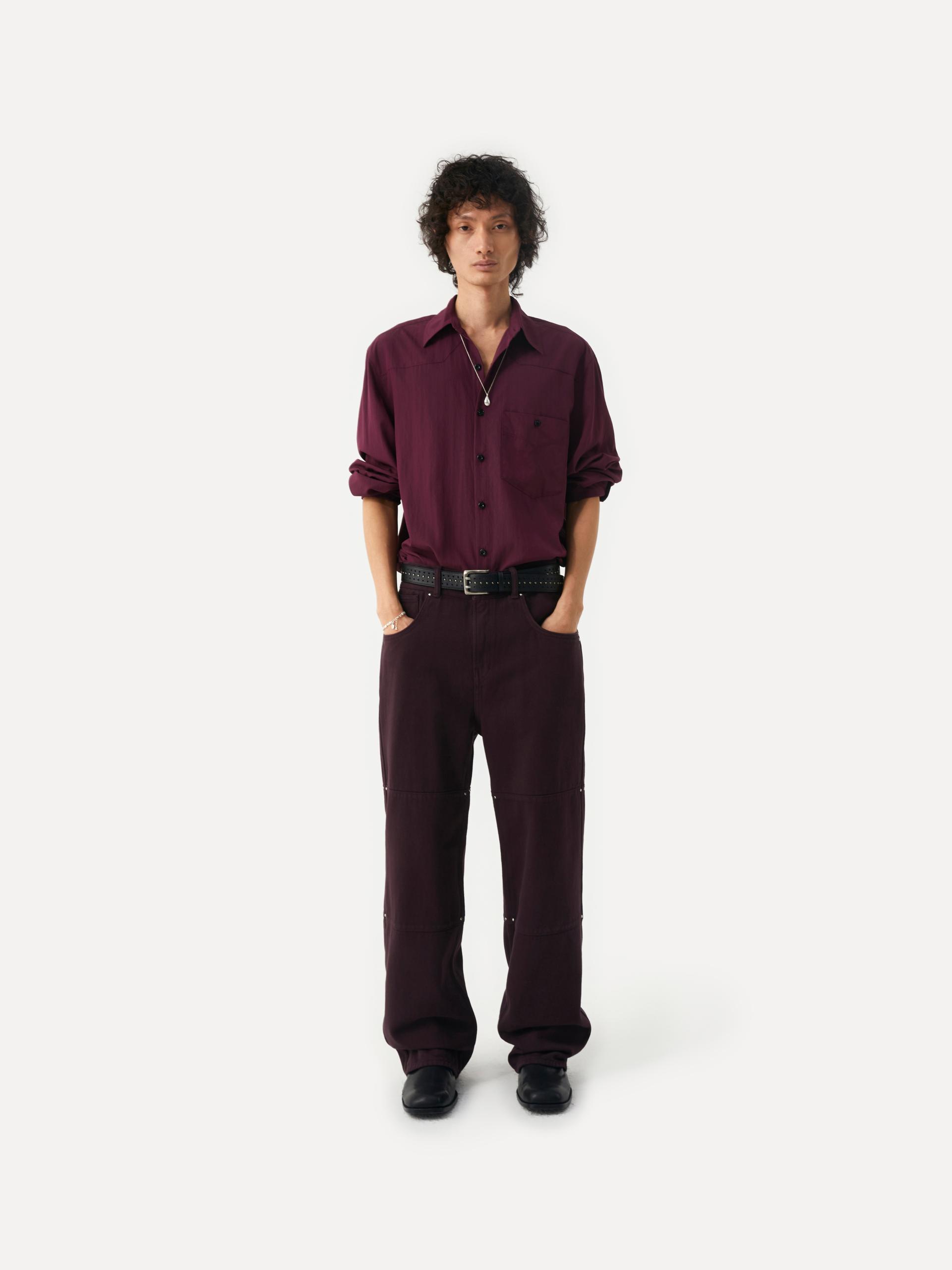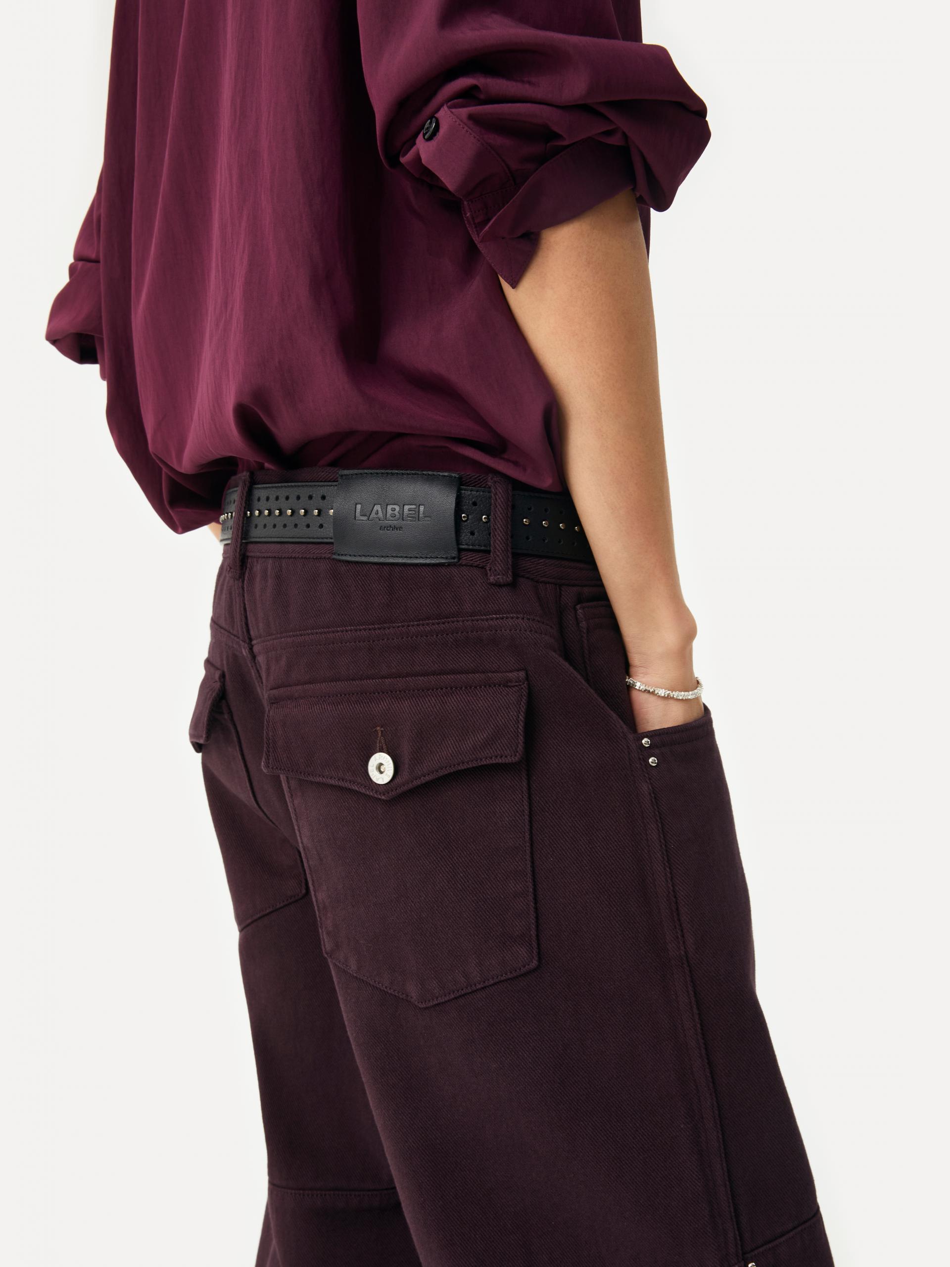 Wide fit 옆선 실버톤 스터드 장식 뒷면 아웃 포켓 LABEL 로고가 각인된 고정식 켄톤 LABEL 음각된 베지터블 소가죽 패치 중앙지퍼 안쪽 시접 바인딩 처리 30수 트윌 코튼 라이닝 YKK 社의 지퍼 사용 코아사 봉사 다크한 플럼 컬러의 워싱과 스터드 디테일이 돋보이는 와이드 핏 진 입니다. 가로 패널 절개가 더해져 단조롭지 않은 입체감이 느껴지며, 옆선 작은 실버 스터드 장식이 은은한 포인트가 되어줍니다. 와이드 한 사이즈감과, 시즈널한 컬러, 스터드 디테일이 어우러져 다양한 스타일에 감각을 더해줄 아이템 입니다. · 염색된 가공 방식으로 인해 이염이 발생할 수 있어, 밝은 색상의 의류나 액세서리와 마찰할 경우 염료가 묻어날 수 있으므로 착용 시 주의가 필요합니다. |