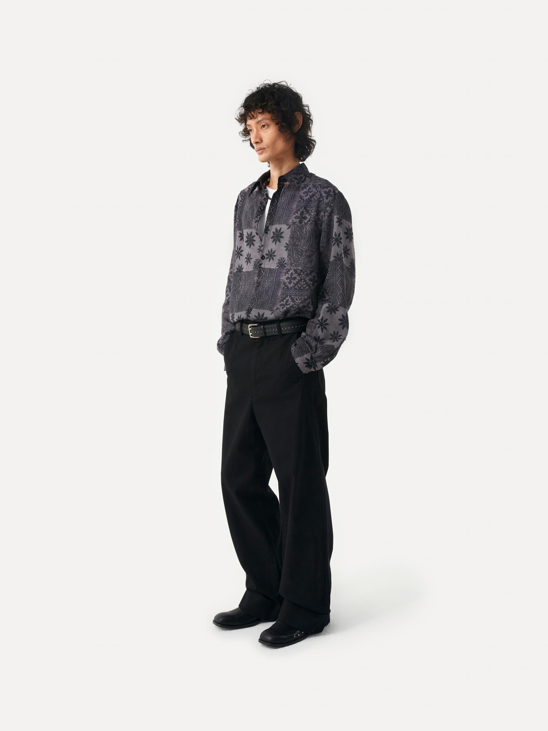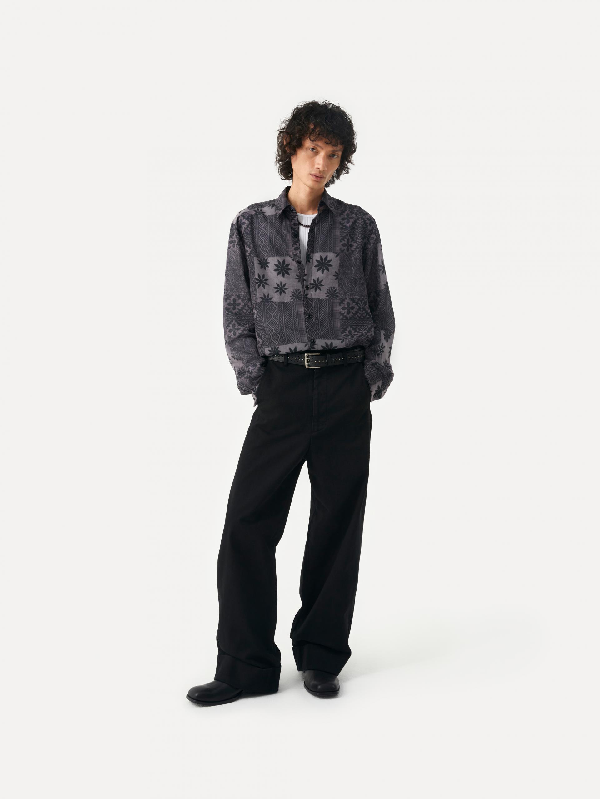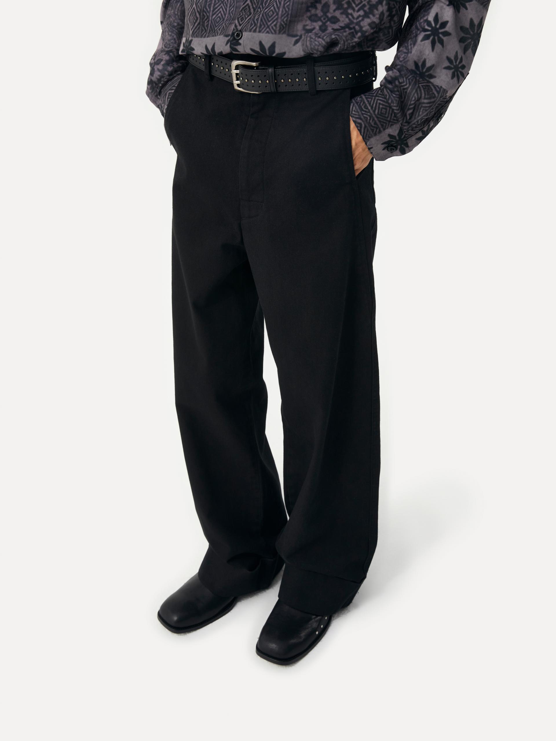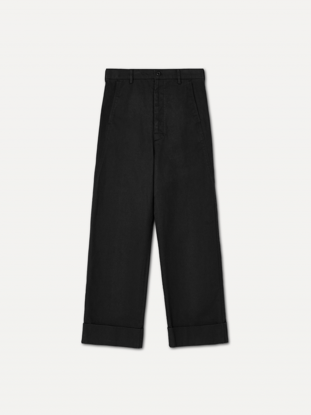 [9/24 순차 출고] 와이드 핏 바이오 워싱 처리 옆선 사선 주머니와 연결된 삼각 패널 디테일 고정된 밑단 커프 디테일 뒷면 아웃포켓 디테일 YKK 社의 지퍼 사용 LABEL 각인된 단추 사용 밑단의 넓은 롤업 커프 디테일이 돋보이는 코튼 와이드 팬츠 입니다. 와이드한 실루엣과 고시감 있는 텍스쳐가 조화를 이루어 안정감 있는 형태를 유지합니다. 사선 주머니와 이어지는 옆선 삼각 패널 디테일은 실루엣에 입체감을 더해주며, 은은한 포인트가 되어줍니다. 바이오 워싱 처리된 더스티한 색감으로 구성되었으며, FW 시즌에 자연스러운 멋을 더해 줄 아이템 입니다. |