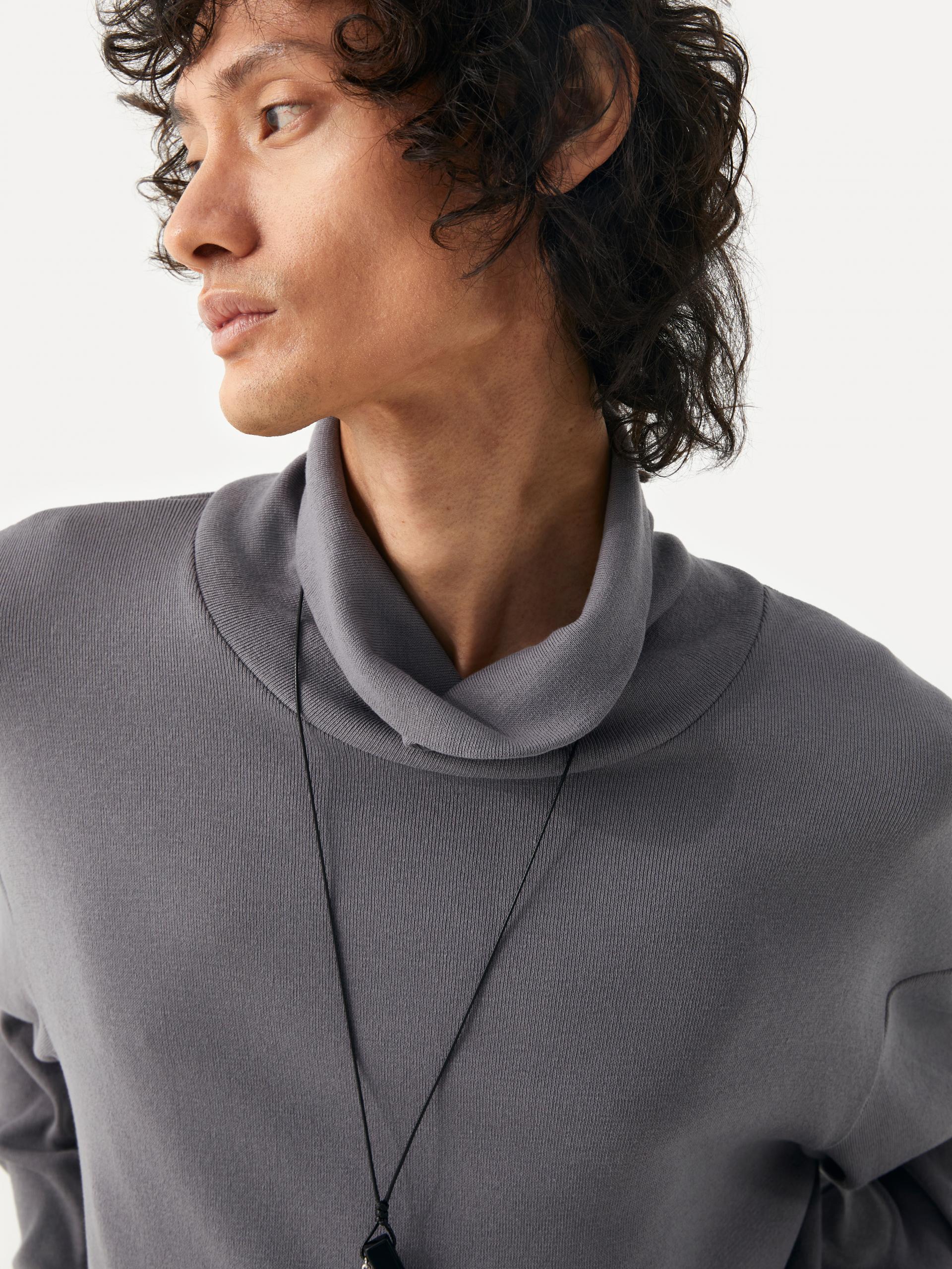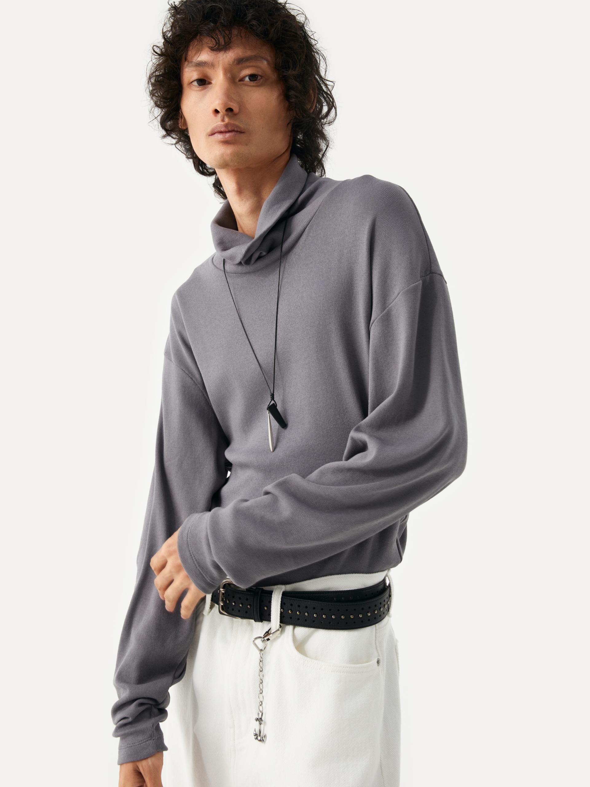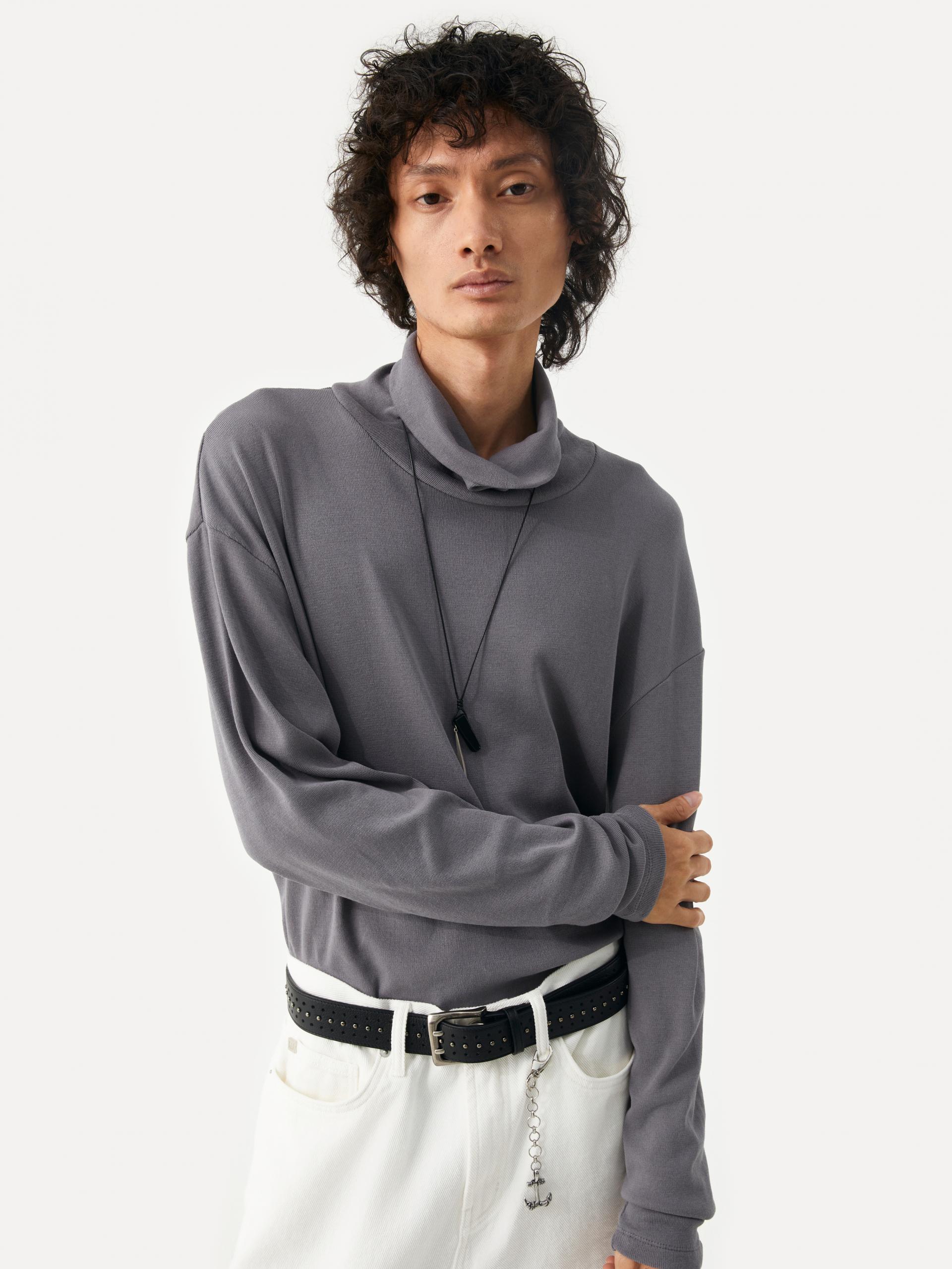 터틀넥 탑 오버사이즈 핏 와이드한 소매 유연한 져지 소재로 완성된 터틀넥 탑입니다. 와이드한 소매가 여유롭게 떨어지면서 허리선으로 갈수록 자연스럽게 좁아지는 실루엣이 특징입니다. 움직임이 편안한 루즈함과 함께 허리에서 형성되는 자연스러운 주름이 독특한 볼륨감을 더합니다. 드레시한 실루엣과 저지 소재의 유연한 탄성, 매트한 질감이 어우러져 편안함 속에서도 구조적인 라인이 돋보이는 모던한 감각의 아이템 입니다. 단독 착용으로도 멋스러운 제품으로, FW 시즌 새로운 핏의 이너를 찾고 계셨던 분들께 추천드립니다. |
