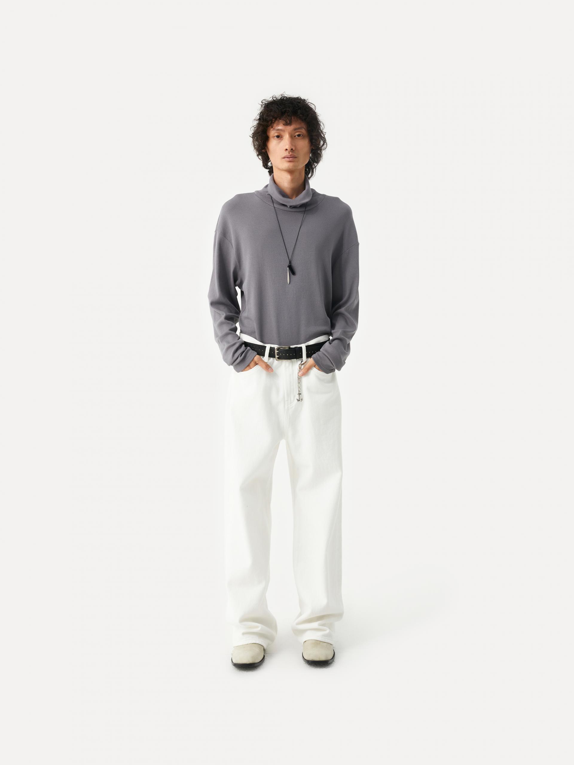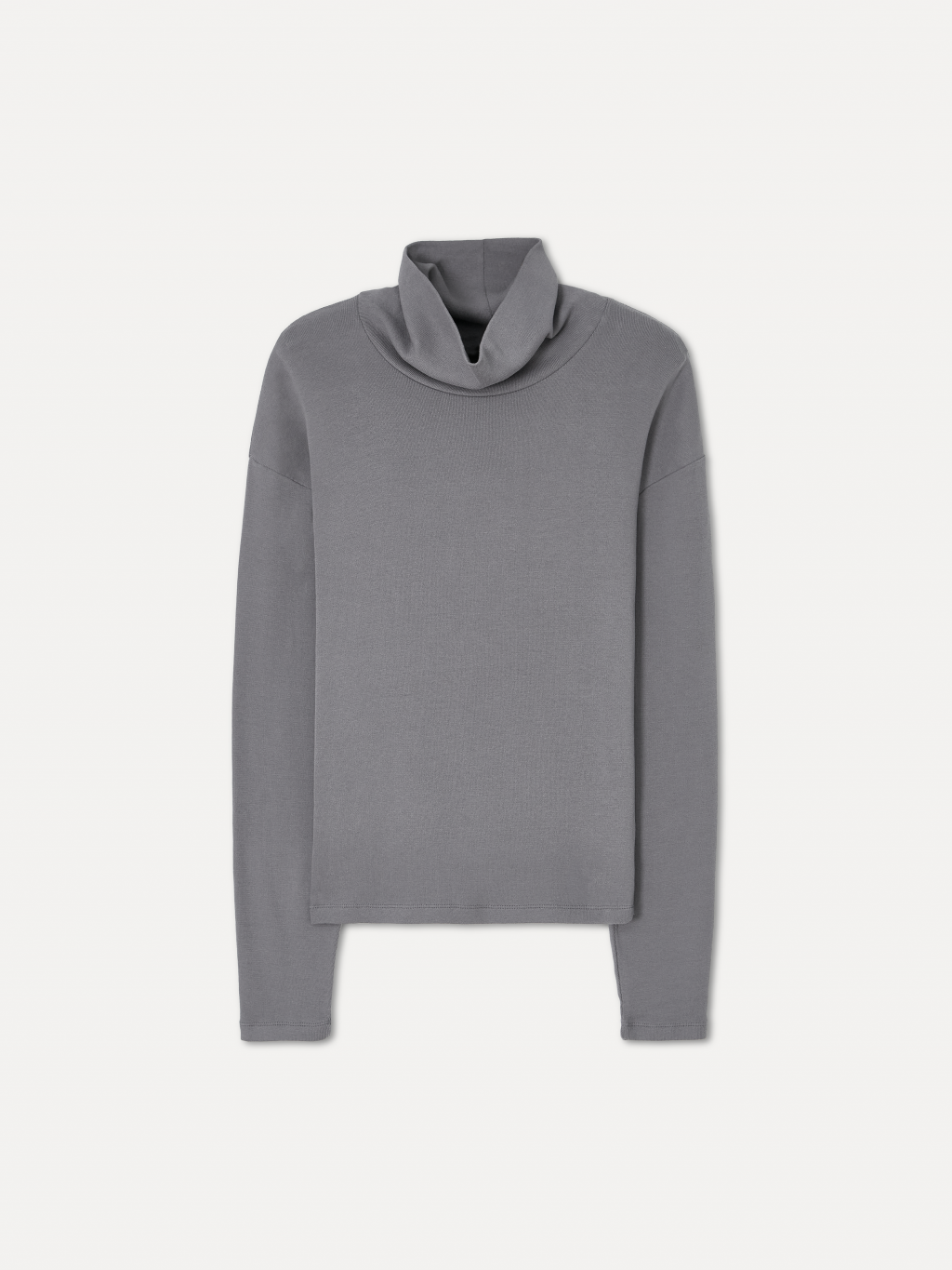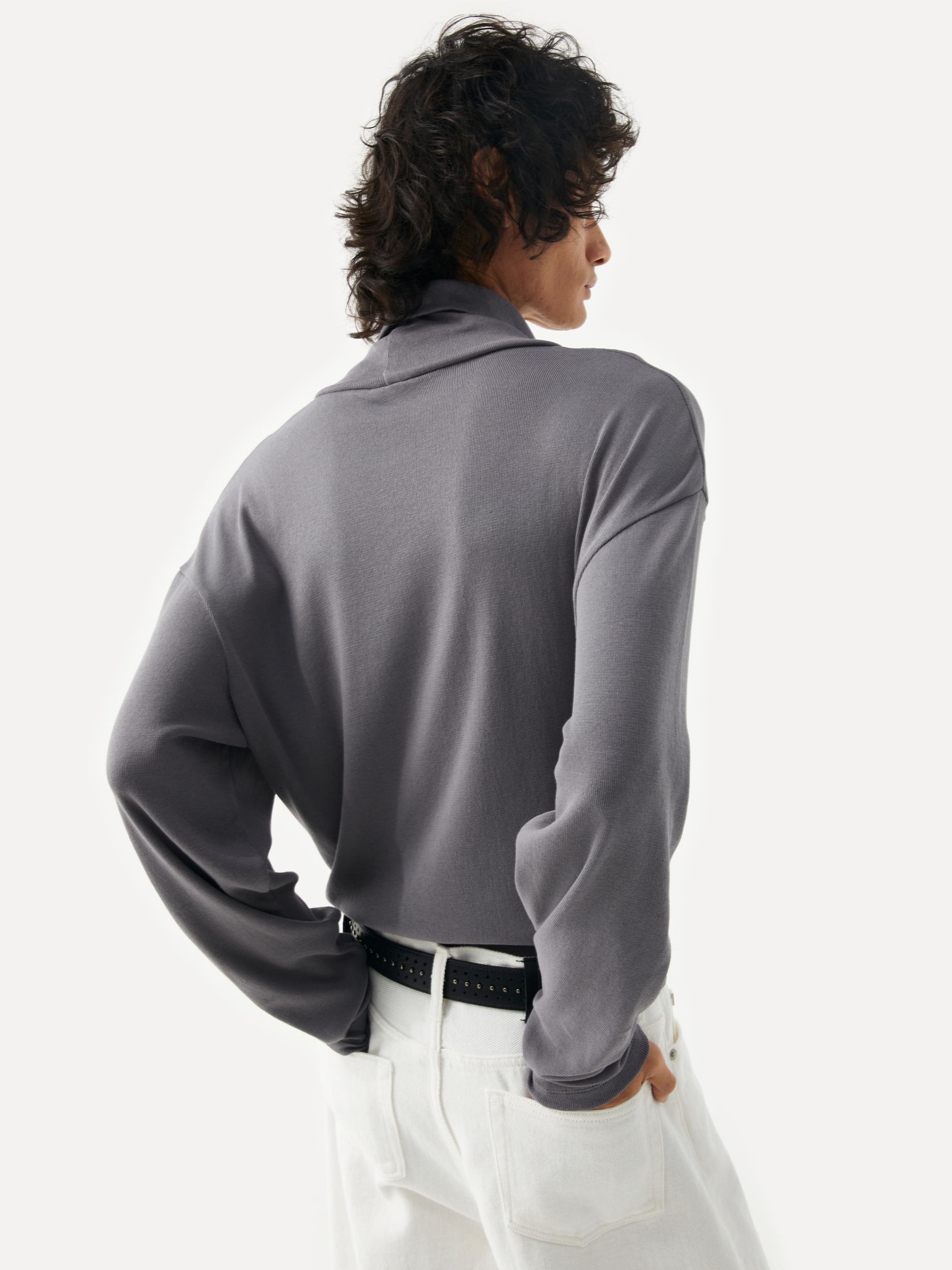 터틀넥 탑 오버사이즈 핏 와이드한 소매 유연한 져지 소재로 완성된 터틀넥 탑입니다. 와이드한 소매가 여유롭게 떨어지면서 허리선으로 갈수록 자연스럽게 좁아지는 실루엣이 특징입니다. 움직임이 편안한 루즈함과 함께 허리에서 형성되는 자연스러운 주름이 독특한 볼륨감을 더합니다. 드레시한 실루엣과 저지 소재의 유연한 탄성, 매트한 질감이 어우러져 편안함 속에서도 구조적인 라인이 돋보이는 모던한 감각의 아이템 입니다. 단독 착용으로도 멋스러운 제품으로, FW 시즌 새로운 핏의 이너를 찾고 계셨던 분들께 추천드립니다. |