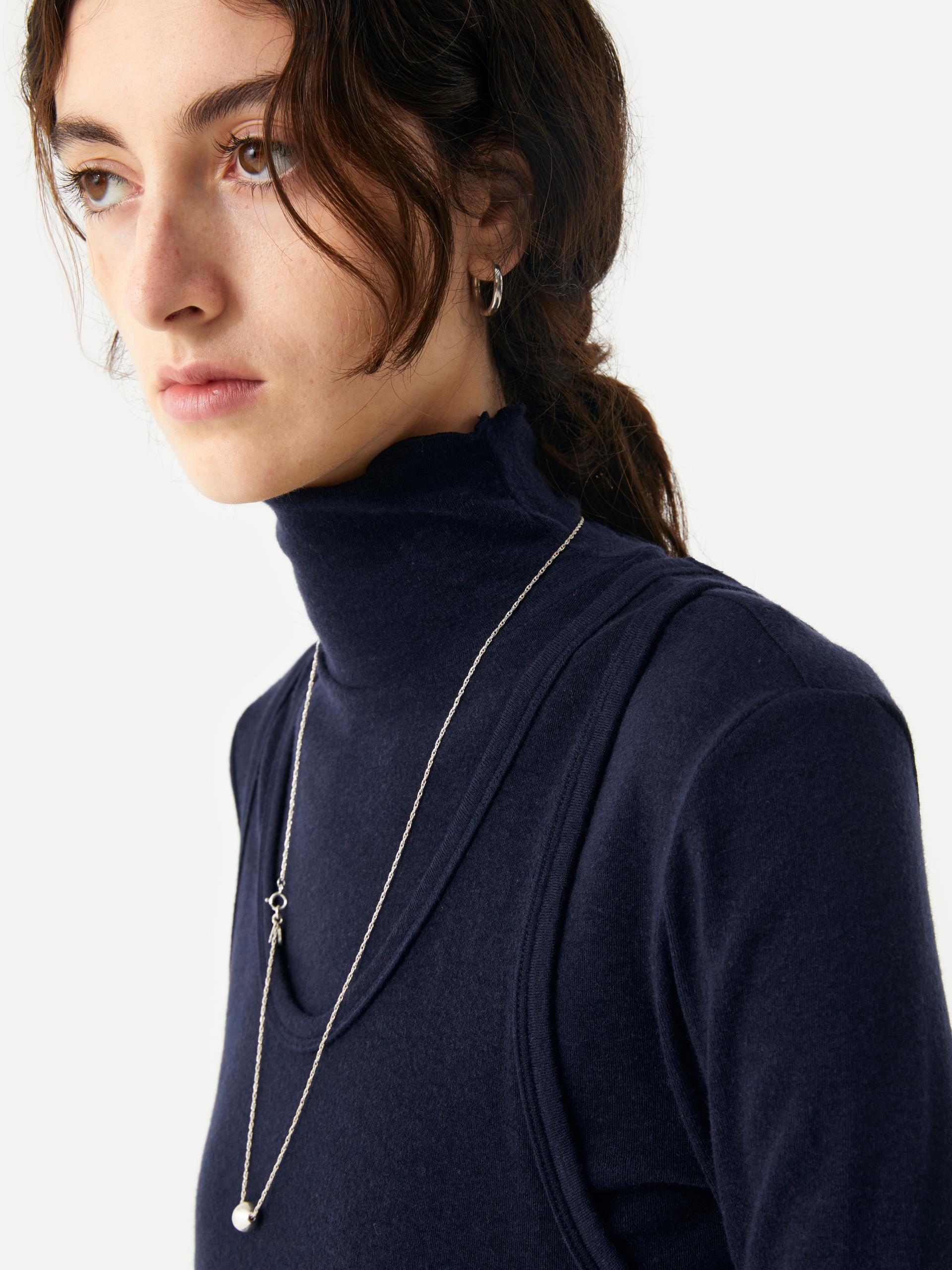 레귤러 핏 터틀넥 웨이브 스티치 슬리브리스 & 터틀넥 탑 레이어링 슬리브리스와 터틀넥 탑이 레이어드 된 투피스 탑 입니다. 부드러운 촉감과 유연한 텐션감의 소재를 사용하여 포근한 착용감을 느끼실 수 있는 레이어드 탑 입니다. 슬리브리스와 터틀넥 탑이 레이어드 된 디자인으로, 두 가지 아이템을 각각 단독으로 착용할 수 있는 활용도 높은 디자인 입니다. 레귤러 핏으로 착용되며, FW 시즌 분위기있는 룩을 연출하기 좋은 아이템 입니다. |