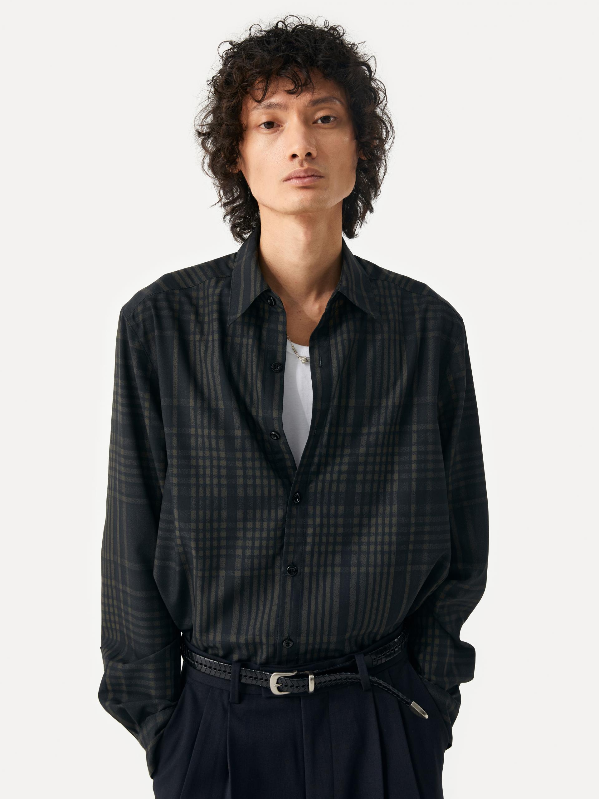 [10/1 순차 출고] 루즈 핏 시즌 체크 패턴 미니멀 실루엣 시즌 체크 패턴이 매력적인 루즈 핏 셔츠입니다. 적당한 탄력감과 은은한 드레이프감이 어우러진 소재로 차분한 드레시 무드를 완성합니다. 미니멀한 실루엣과 톤다운 된 카키빛 체크 패턴이 조화를 이루며, 룩에 세련된 포인트를 더해 줄 아이템 입니다. · 프린트 된 패턴으로, 개체마다 프린트 위치는 다를 수 있습니다. |